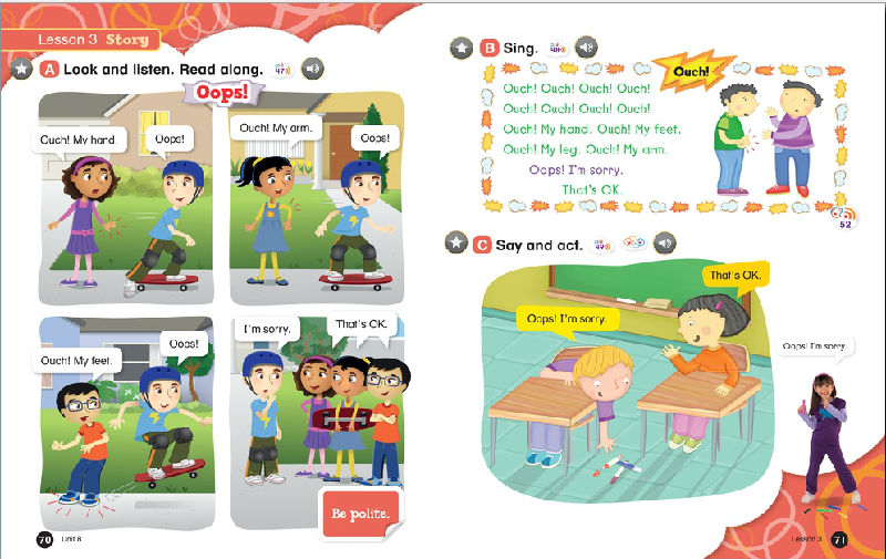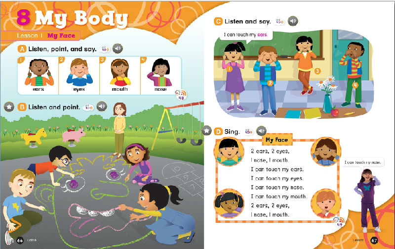 Everybody Up encourages children to use language in a natural and meaningful way by connecting English to their own lives. Colorful cross-curricular lessons link English to other school subjects. Fun stories teach life lessons such as being kind and polite. Great songs, and the special Everybody Up Friends, motivate children to practice English - even at home!