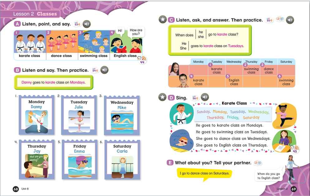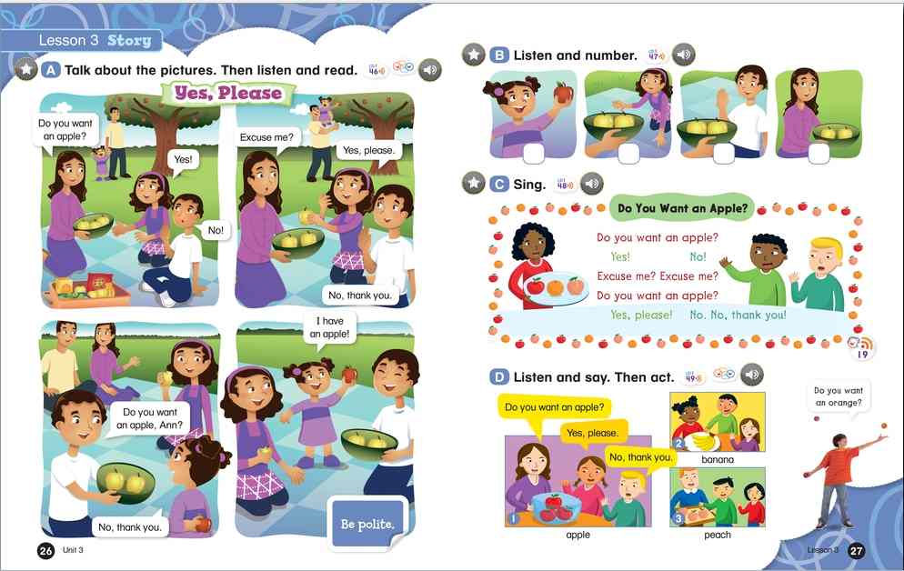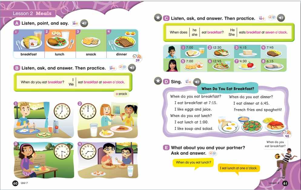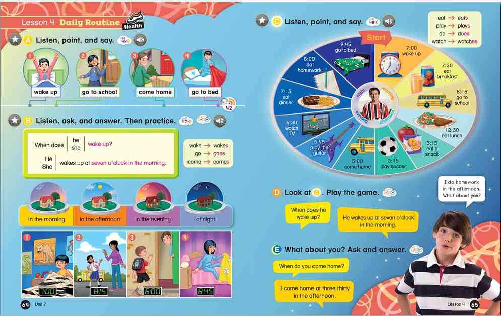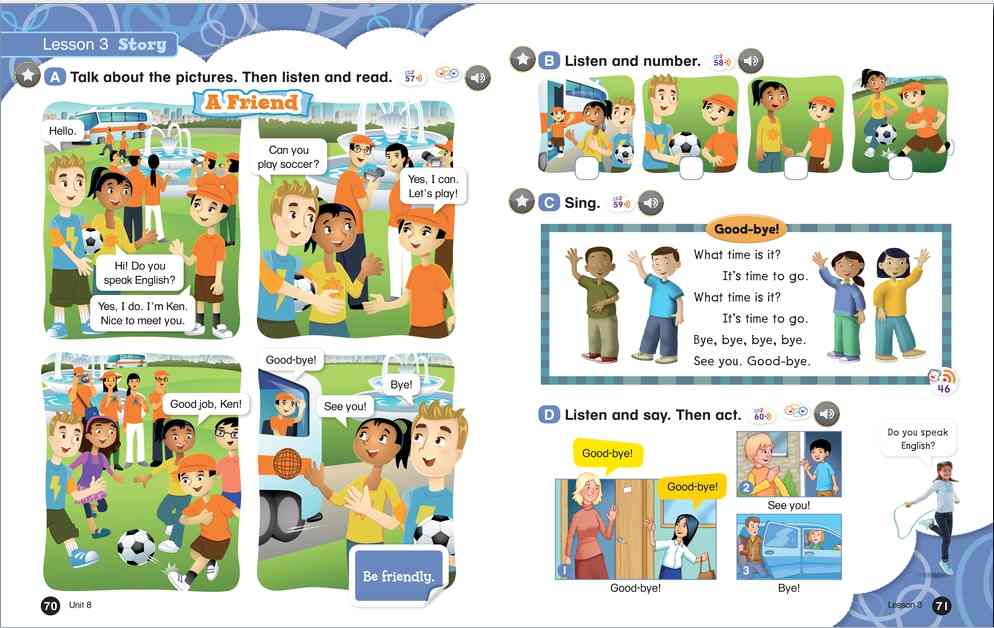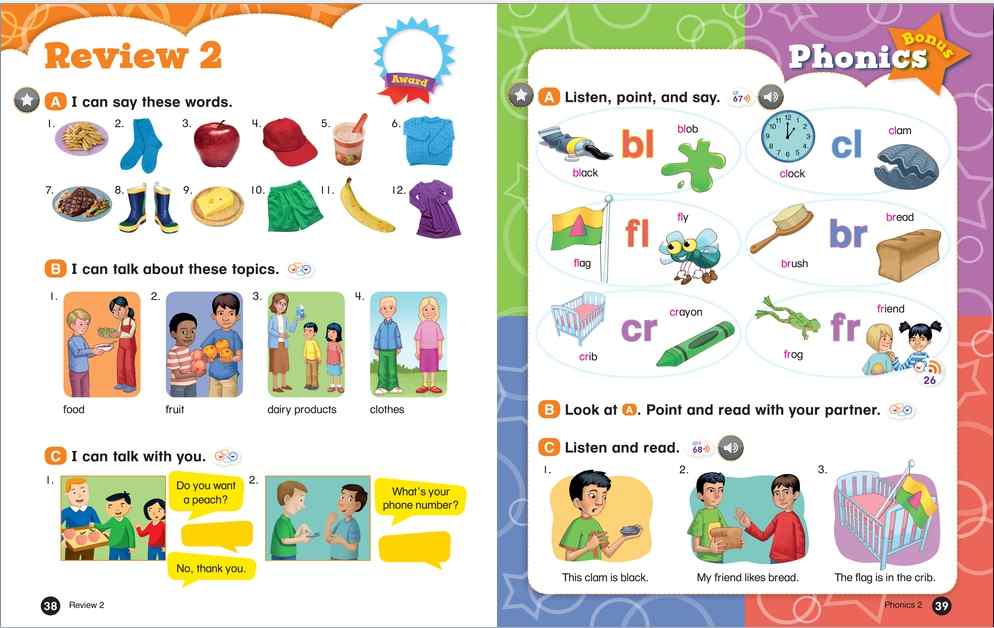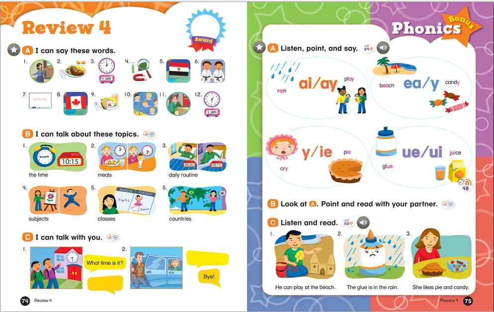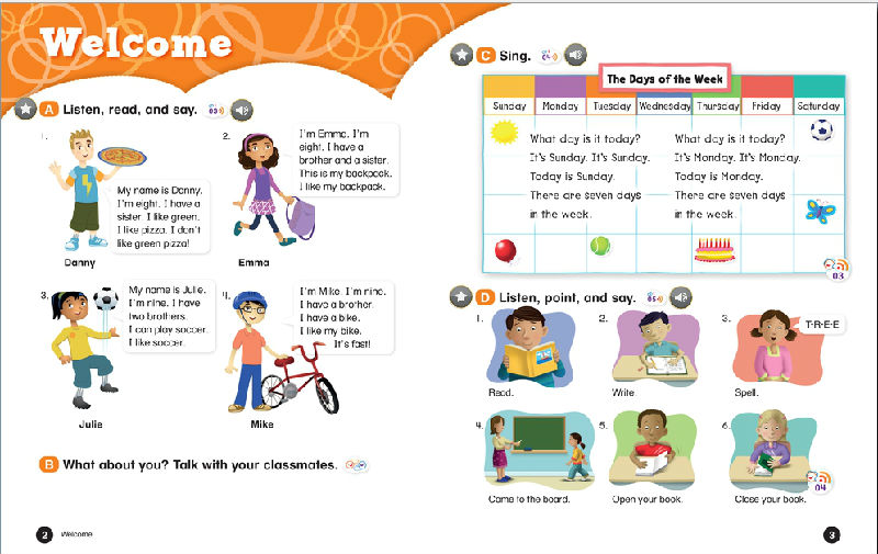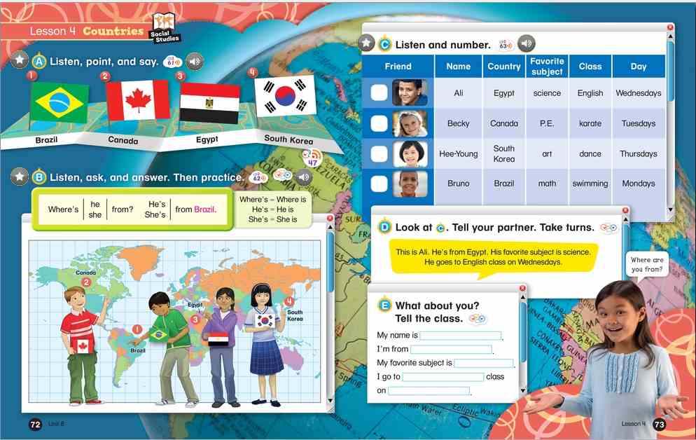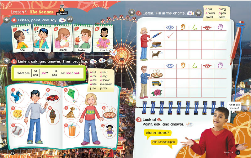 Everybody Up encourages children to use language in a natural and meaningful way by connecting English to their own lives. Colorful cross-curricular lessons link English to other school subjects. Fun stories teach life lessons such as being kind and polite. Great songs, and the special Everybody Up Friends, motivate children to practice English - even at home!