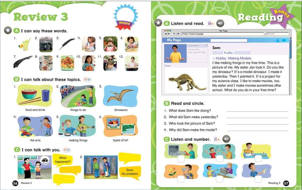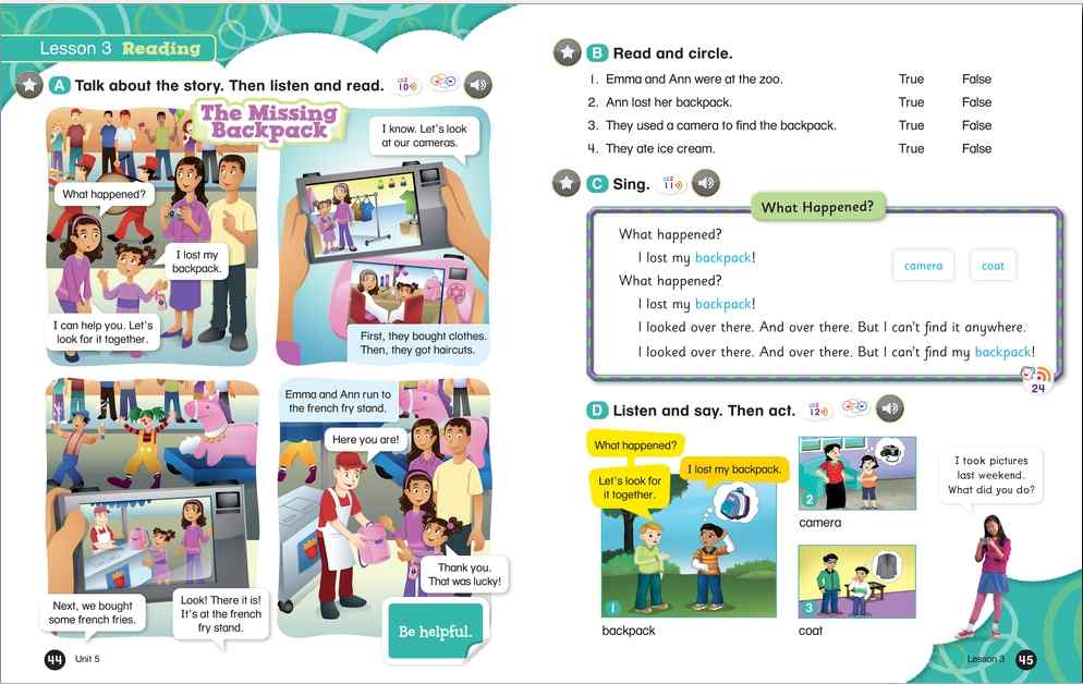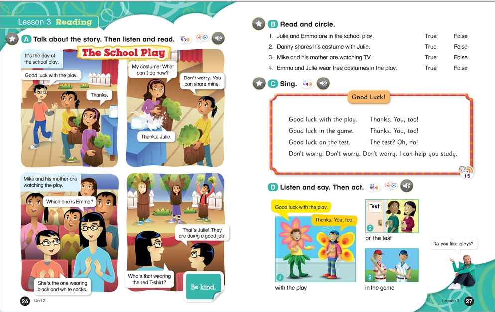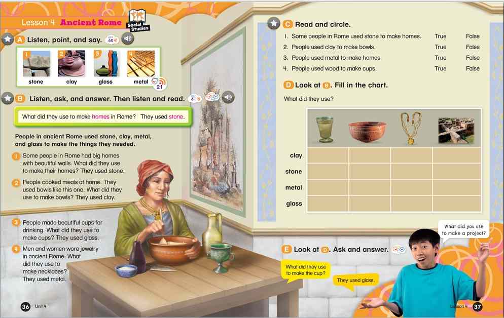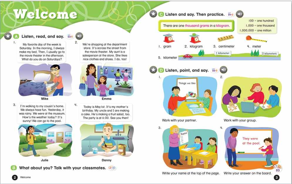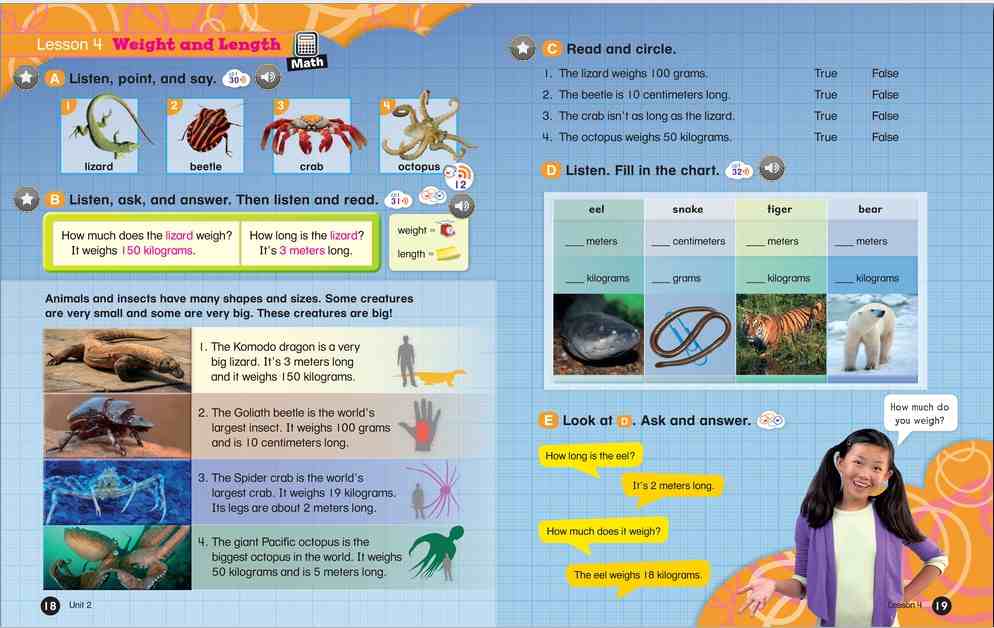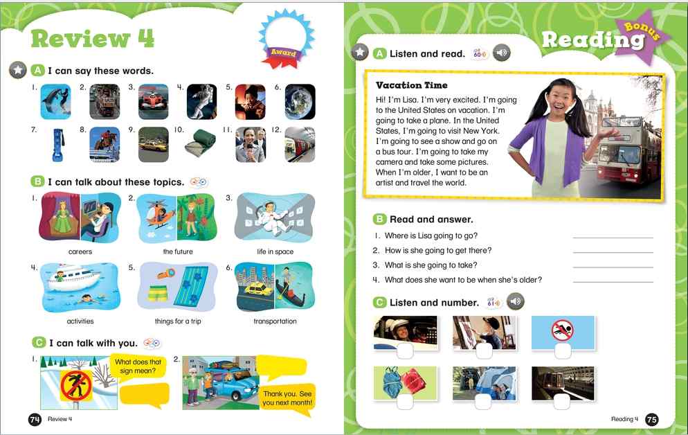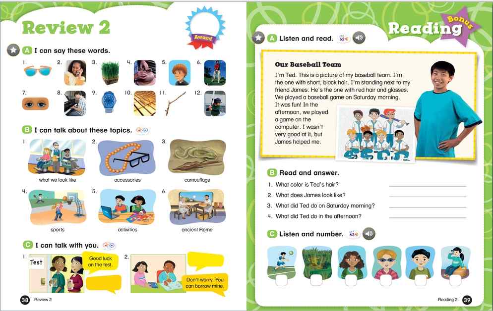 Everybody Up encourages children to use language in a natural and meaningful way by connecting English to their own lives. Colorful cross-curricular lessons link English to other school subjects. Fun stories teach life lessons such as being kind and polite. Great songs, and the special Everybody Up Friends, motivate children to practice English - even at home!