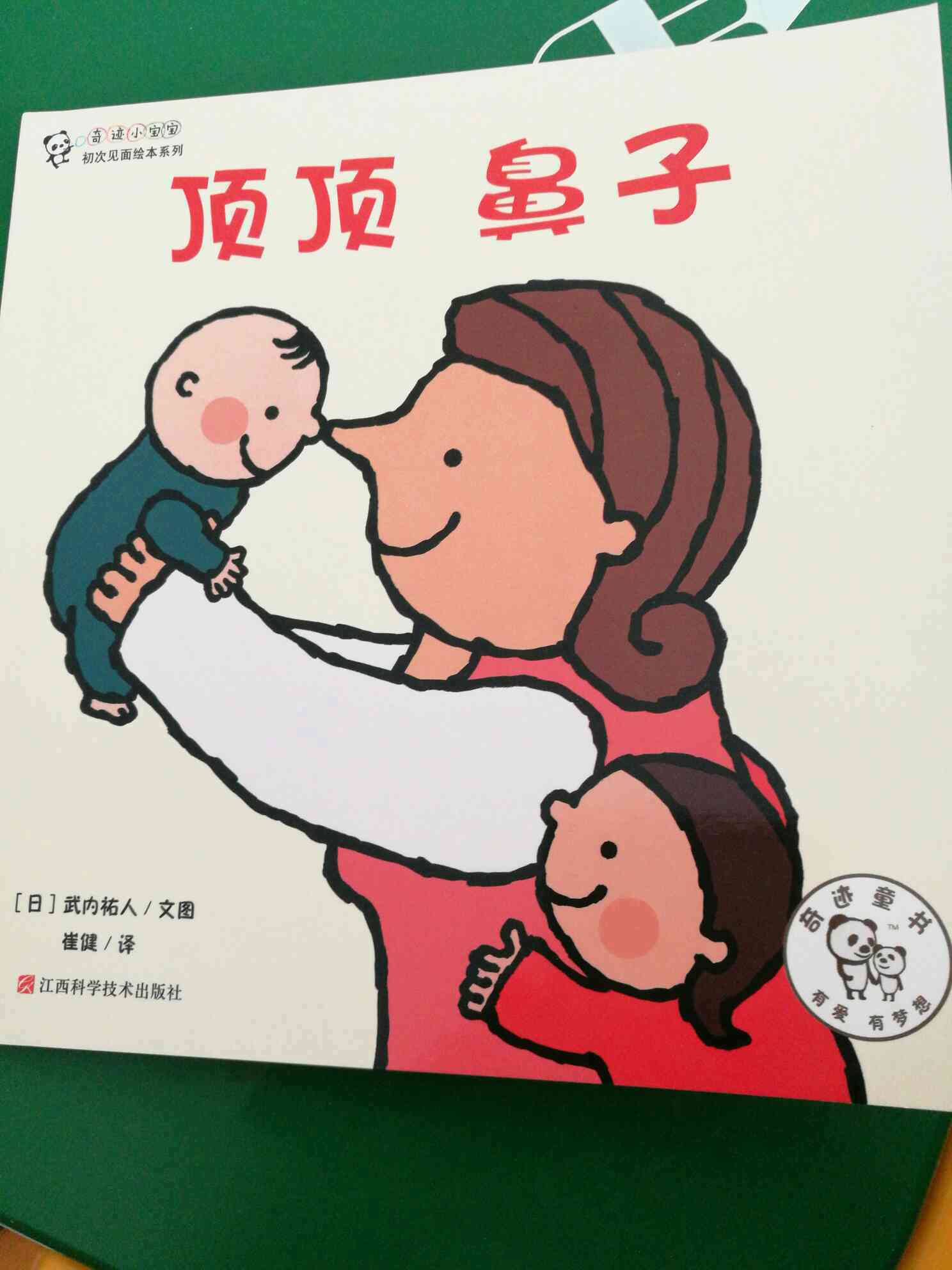 1、《碰碰脑门儿》——培养父子感情 “小动物们都在和自己的爸爸碰脑门儿,我也要和爸爸碰碰脑门儿!” 一本用来培养父子感情的最好的图画书。 2、《顶顶鼻子》——培养母子感情 “妈妈” “哎” “顶顶鼻子吧” 一本用来培养母子感情的最好的图画书。 3、《小螃蟹》——认识颜色与自然 从早晨到晚上,小螃蟹色彩斑斓的美好一天! 一本用来认识颜色与自然的最好的图画书。 4、《小露露推啊》——让孩子学会“推” “小露露,推啊”“嗯,好的” 一本让孩子跟着小象露露学会“推”的图画书。 5、《小露露拉绳子》——让孩子学会“拉” “小露露,拉啊,拉啊。一、二、三!” 一本让孩子跟着小象露露学会“拉”的图画书。 6、《什么火车来了?》——认识各种火车 “小铁上,开过来的,是什么呢?是什么呢?” 一本让孩子认识各种火车的最好的图画书。 7、《什么汽车来了?》——认识各种汽车 “隧道小子的里面,开过来的,是什么呢?是什么呢?” 一本让孩子认识各种汽车的最好的图画书。 8、《彩色纸哧哧》——认识形状 “紫色的纸,圆圆的,哧哧,小小的,哧哧,变成什么了?” 一本让孩子认识形状、颜色辨识物体的最好的图画书。 9、《蜡