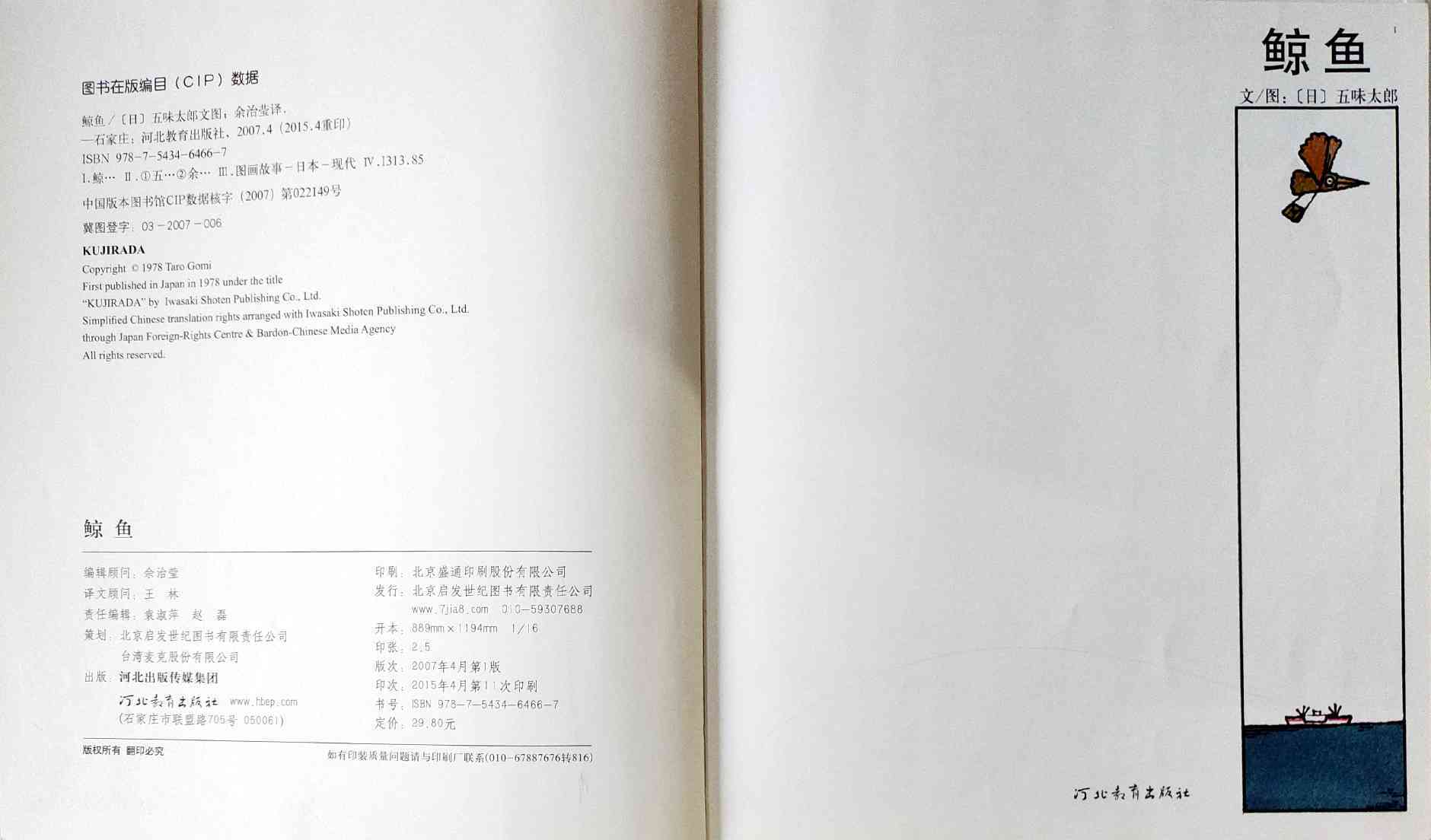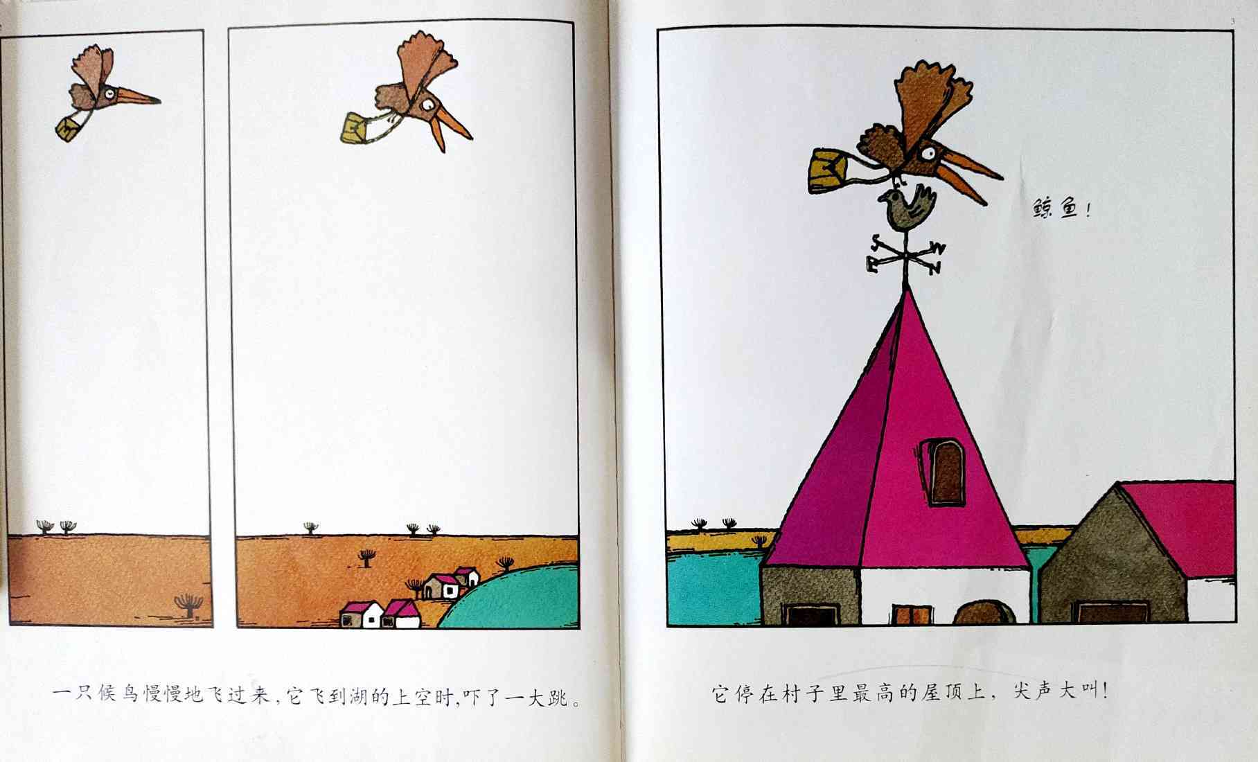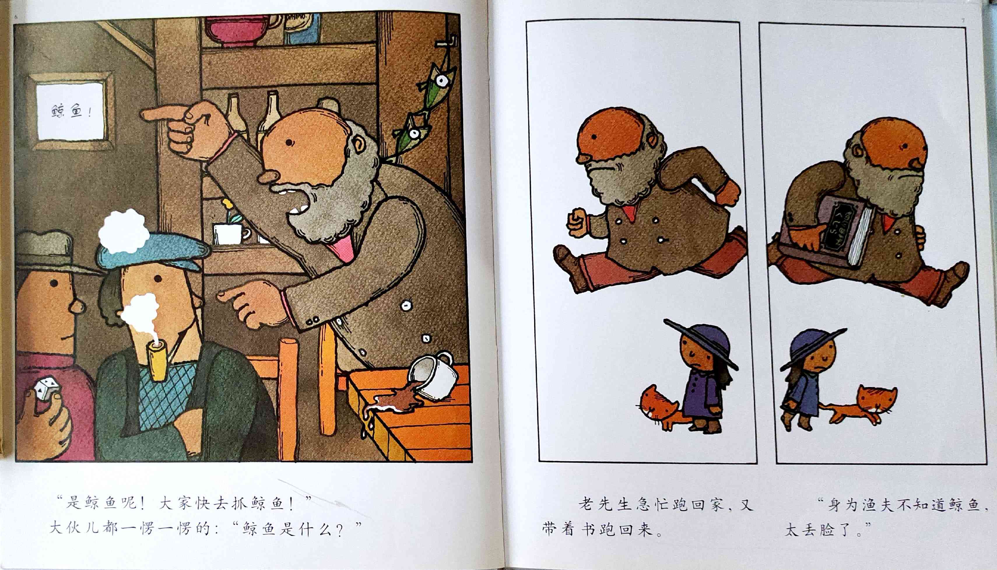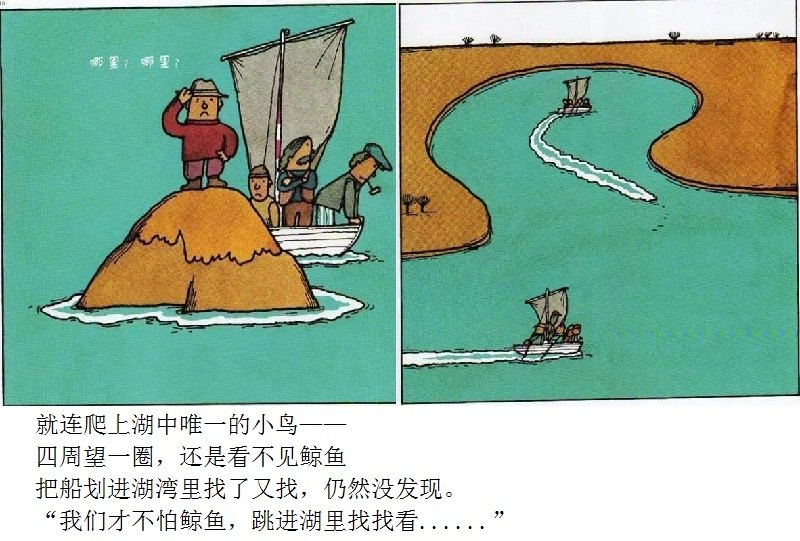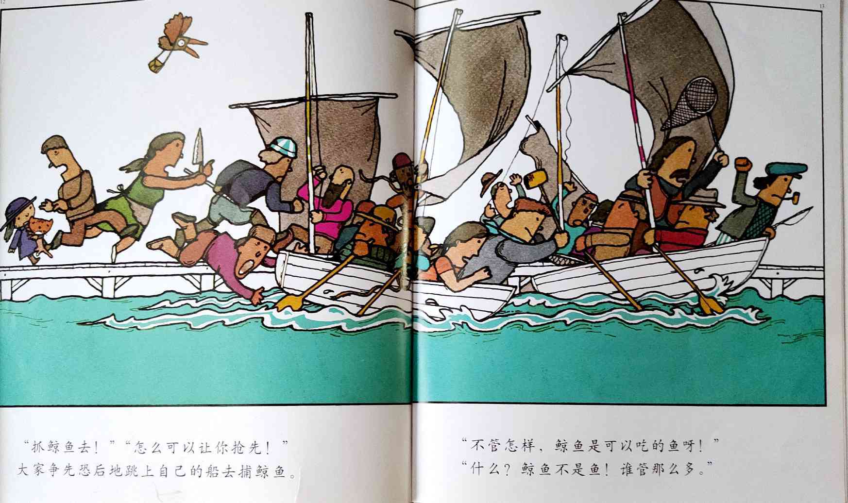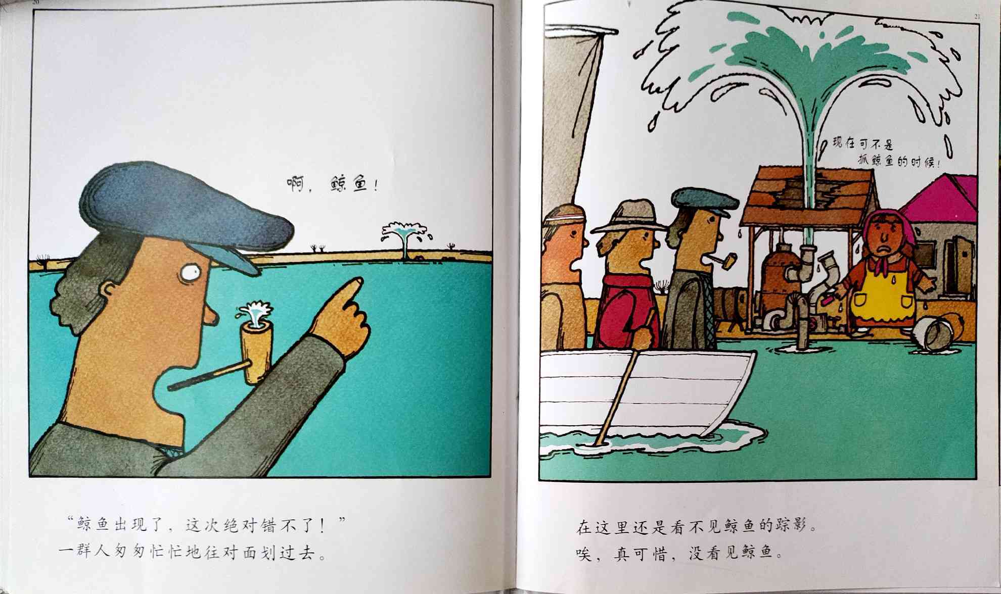 《鲸鱼》内容简介:读者不得不通过看图来结合文字叙述,才会感受并明白它的趣味和诉求,而这个特点也使得该书别具阅读趣味和价值。“啊!原来是这样!”几乎每个人看到结局,都有这种恍然大悟的惊叹:一只候鸟飞在天上,大喊着“鲸鱼”!可是,村子里的人们找来找去,都没有在湖里找到,他们开始抱怨候鸟欺骗了他们,可是,一个小孩子被候鸟带着飞上了天空,原来,村边的湖的形状跟鲸鱼一样,而一户人家坏了的水管喷上来的水正象是鲸鱼喷出来的水,原来候鸟也并没有骗人。其实有的时候,表面看到的东西不一定就是事实,而在你眼里是事实的事别人也不一定认同。什么才是真正的真相?一个看似简单的故事留给读者的是无穷的回味。日本作为动漫大国和绘本大国,其图画书总是充满视觉趣味。日本著名童书绘本作家五味太郎的重要作品《鲸鱼》中,以鲸鱼的形状、轮廓和颜色来发展故事的架构和旨趣,强调了图画的元素,也突显图画书的特质。