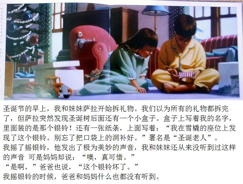 世界上到底有没有圣诞老人?我相信有。许多年前的一个平安夜,“极地特快”停在了我家的门口,把我带上了去往北极的旅途。在那儿,我见到了圣诞老人,还收到了他送出的第一份圣诞礼物——雪橇上的银铃…… 在本书中,作者用充满温情的语调叙述了一个关于“相信”的故事:相信美好,相信奇迹……相信会产生力量,让孩子的心灵饱满充实。全书采用笔触细腻的粉彩画,营造出朦胧、神秘的梦幻感。细细阅读,无论是大人还是孩子,都会沉醉于那一份纯真美好的童心。现在,就让我们一起踏上极地特快,去追寻那些也许已经被遗忘了的梦吧……