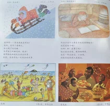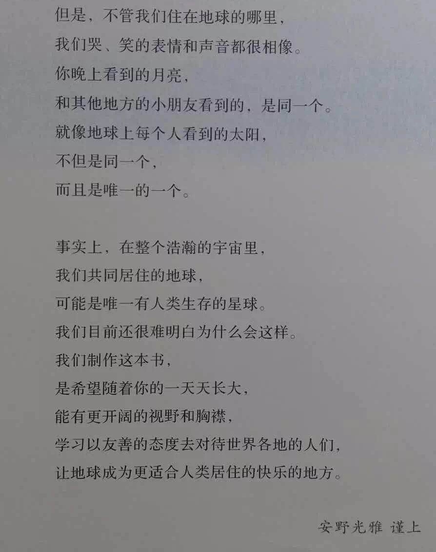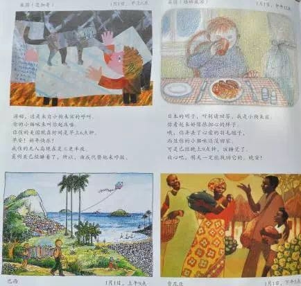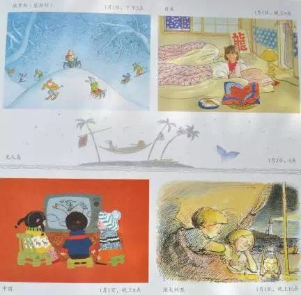 本書是敘述一個小男孩裘明亞遇到海難,漂流到南太平洋一個無人島上,他向八個國家的孩子求救的故事。因為這八個孩子分屬不同國家、不同時區,因此書中的每一跨頁都可以看到小裘明亞和八個孩子同時出現,只不過每個孩子處於不同季節、不同的時間,有著不同的膚色、不同的打扮、不同的娛樂方法、不同的…… 看完八個國家小朋友的一天,你的孩子會有什麼想法?相信他一定可以走出自我的世界,認識、了解、接納和尊重別人,並以另一種正面的態度去看待地球上其他的民族與文化。正如本書編者安野光雄寫給小讀者的信中所說的:「製作這本書,是希望隨著你們一天天長大,能學習更開闊的視野和胸襟,學習以友善的態度去對待世界各地的人們。」