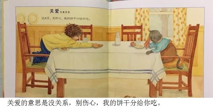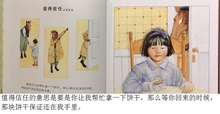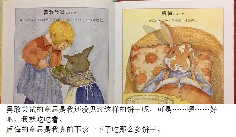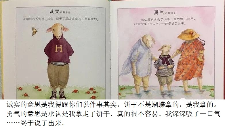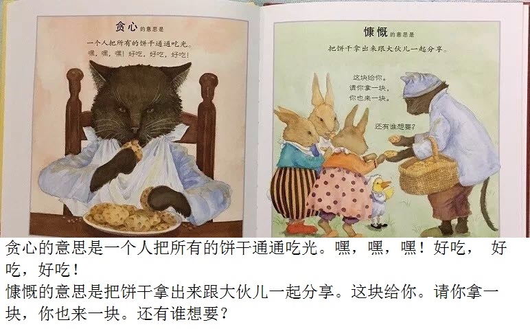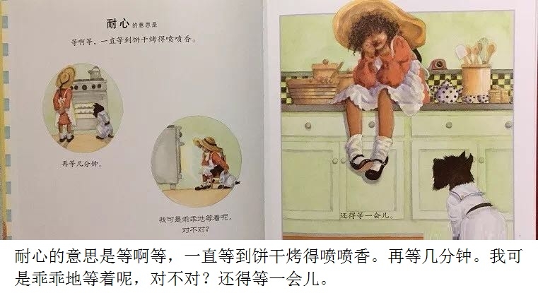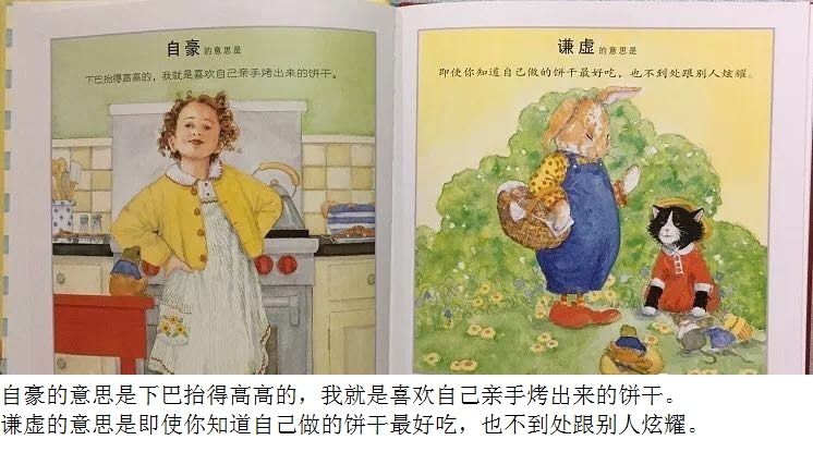 《小饼干的大道理》让我们从饼干里知道很多大道理。如耐心的意思的等啊等,一直等到饼干烤得喷喷香;自豪的意思是下巴抬得高高的,我就是喜欢自己亲手烤出来的饼干;谦虚的意思是即使你知道自己做的饼干最好吃,也不到处跟别人炫耀;尊敬的意思是饼干烤好了,第一块先给奶奶尝尝……