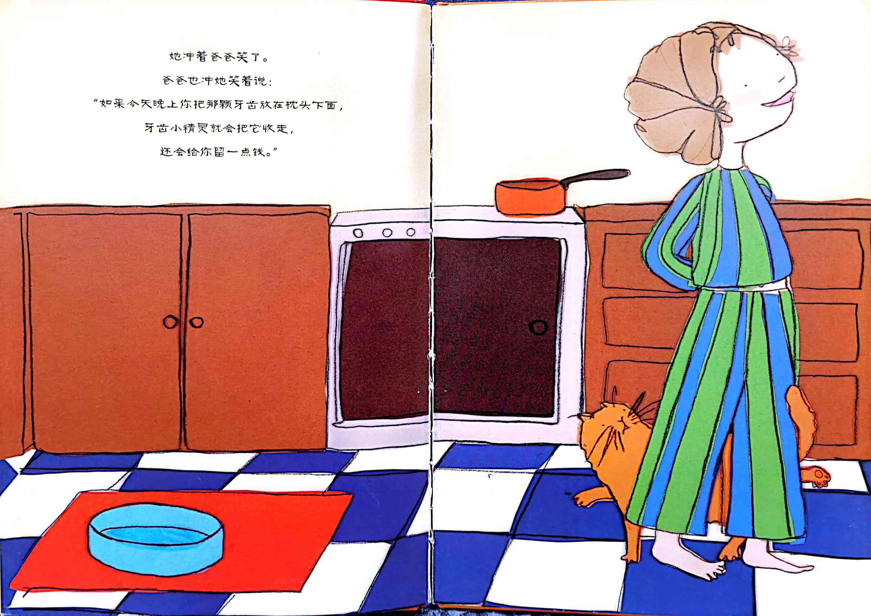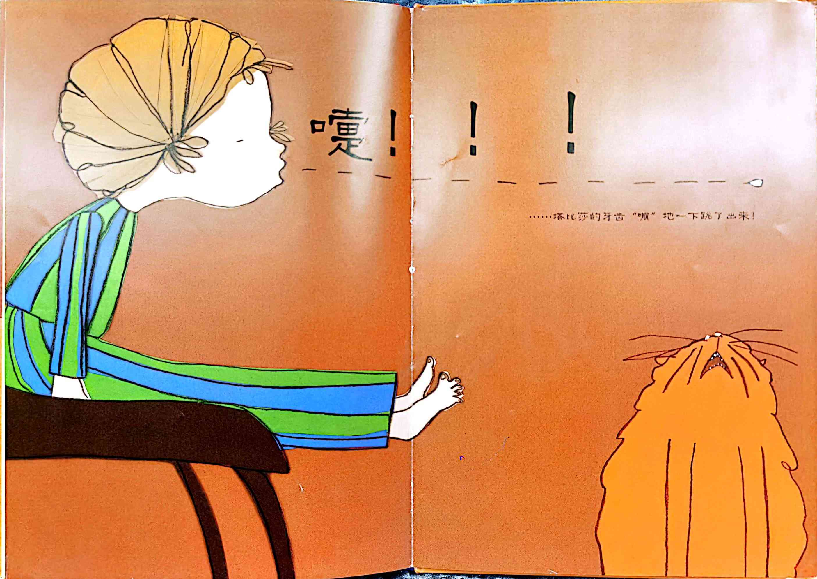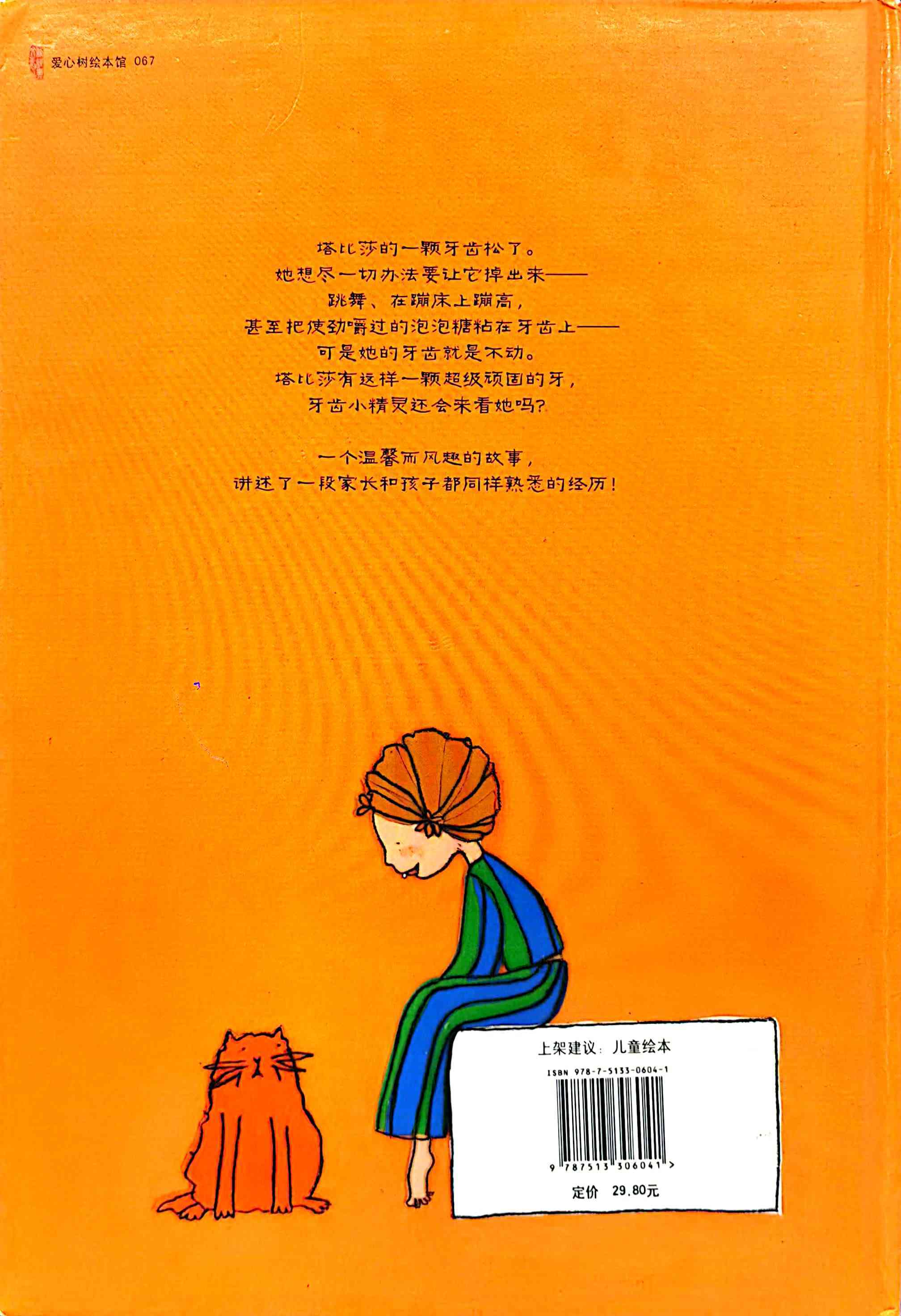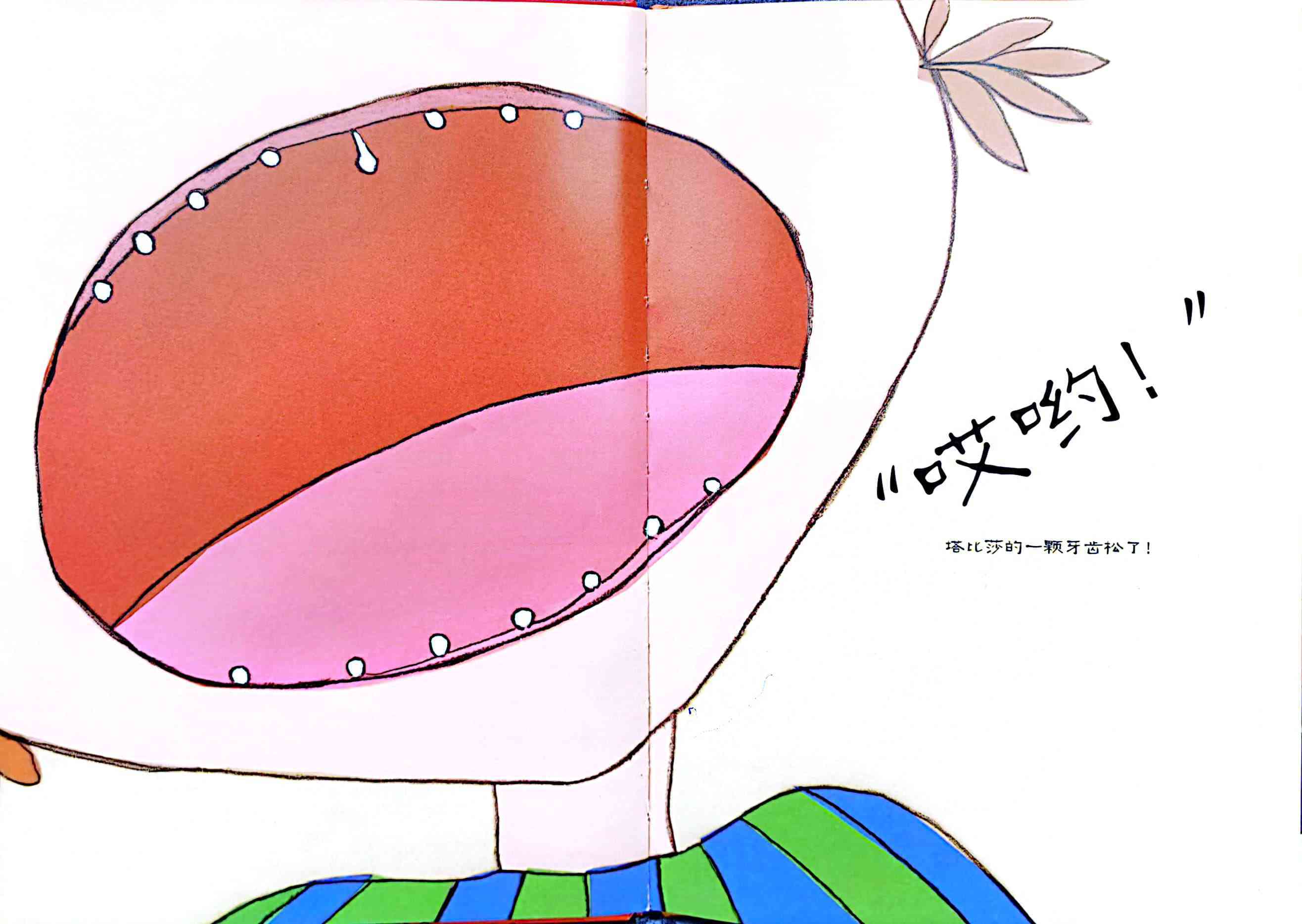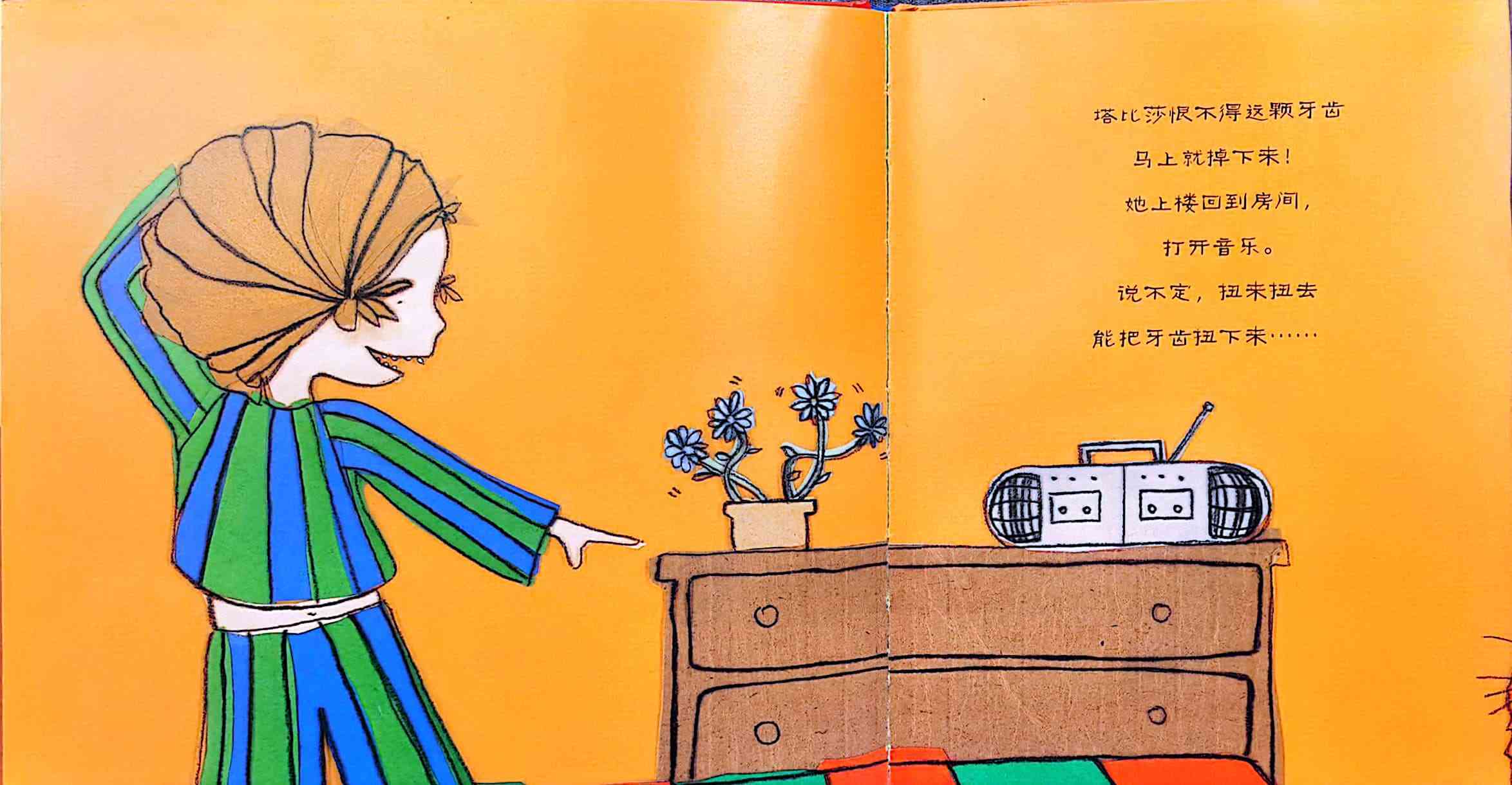 《一颗超级顽固的牙》内容简介:塔比莎的一颗牙齿松动了,爸爸说,如果把牙齿放在枕头下面,牙齿小精灵就会把它收走,还会留下些钱。为了让牙掉下来,塔比莎尝试了各种办法,跳舞、在蹦床上蹦,甚至用上了超黏的泡泡糖,可牙齿就是不掉下来。塔比莎非常沮丧,觉得牙齿小精灵肯定不会来了,可是,结果真是出人意料…… 换牙是每个孩子都会有的经历,牙齿小精灵、牙仙子也是很多孩子都听过的故事,在东西方文化中都曾出现。作者的漫画风格融合了孩子般的笔触,文字与画面配合巧妙,俏皮可爱地描绘了父母和孩子都熟悉的经验。