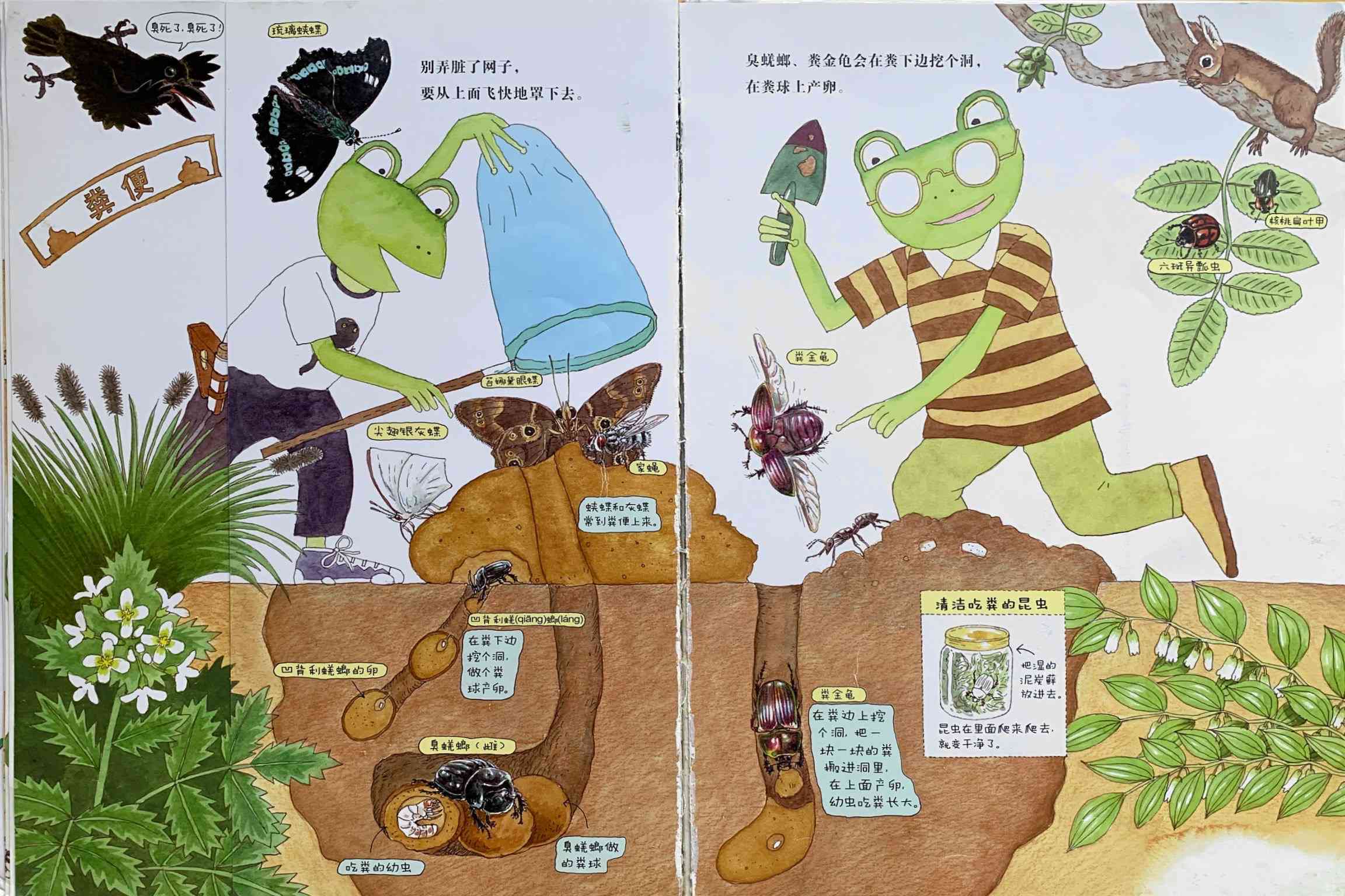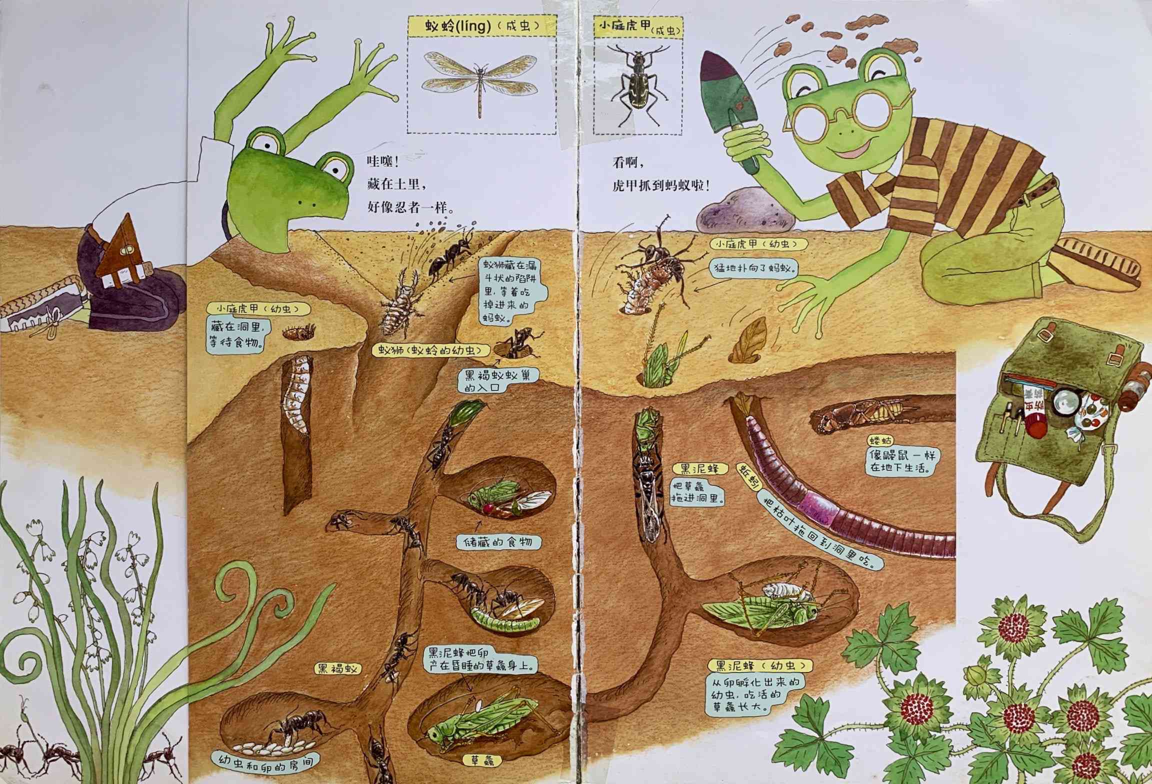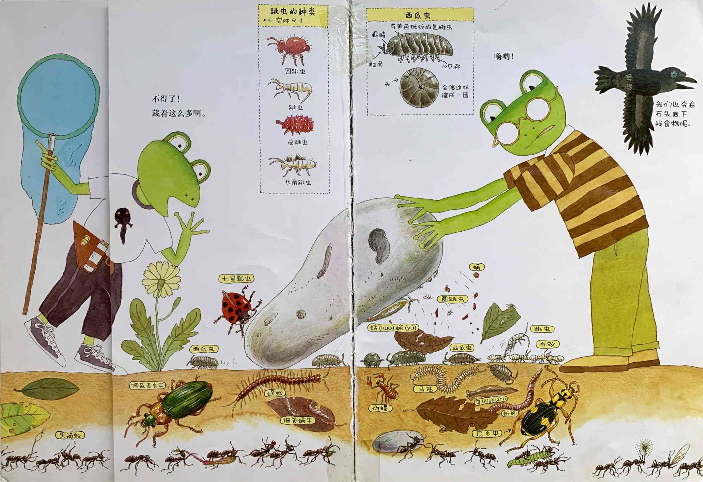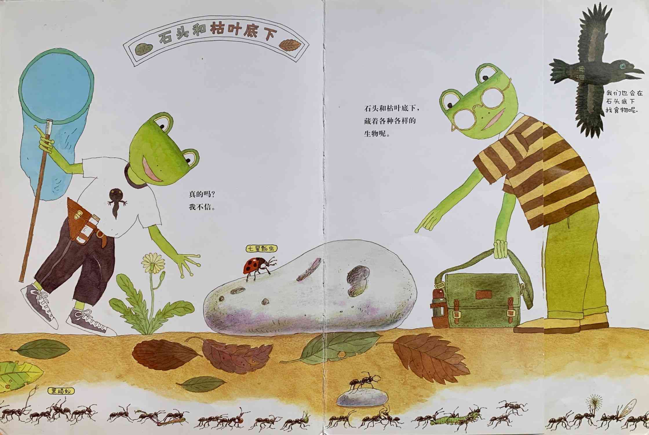 石头底下藏有哪些小虫子?掀起来看一看吧!看着不起眼的地面下,可能藏有一个你不知道的昆虫迷宫!漂亮的花朵,不仅为蜜蜂蝴蝶所喜爱,还是很多其他小虫子寻找食物的目的地!便便很臭吧?不过对于很多小家伙来说,却是不可多得的美餐呢!看起来平静的草丛,是许多小虫子生活的家、玩耍的乐园!跟着雨蛙爸爸,去看看奇妙的昆虫世界吧!