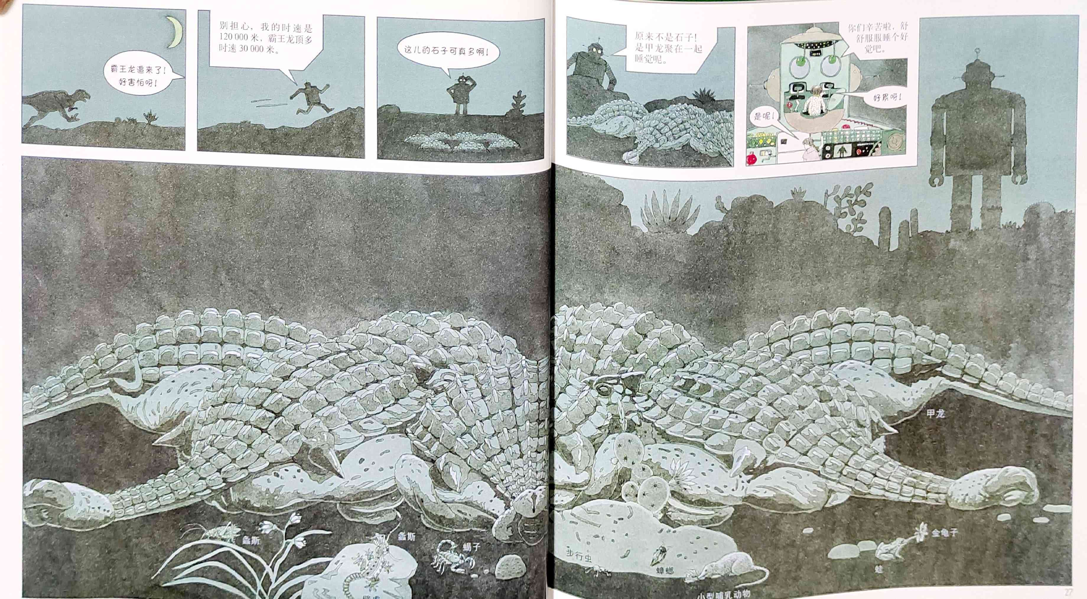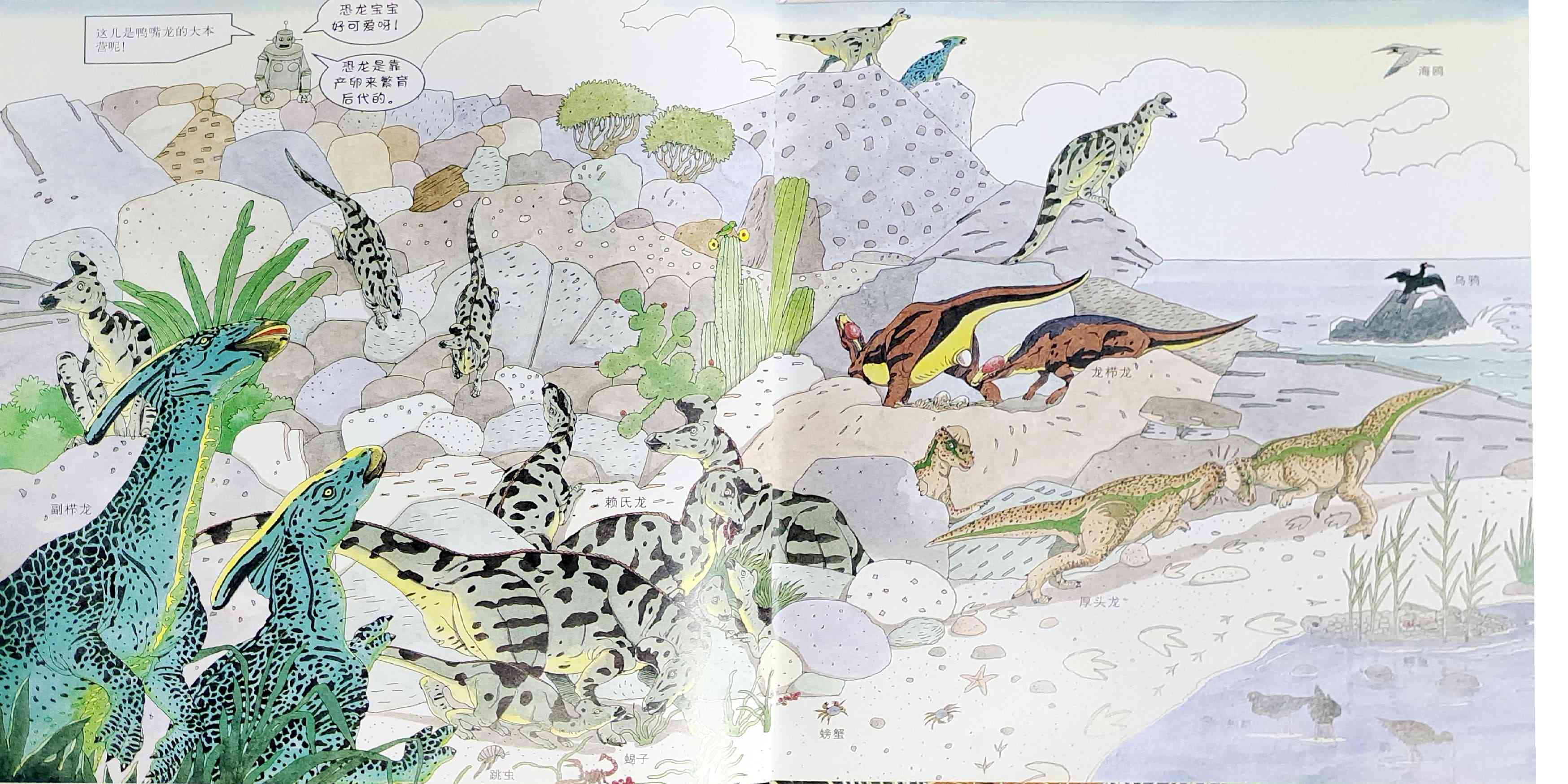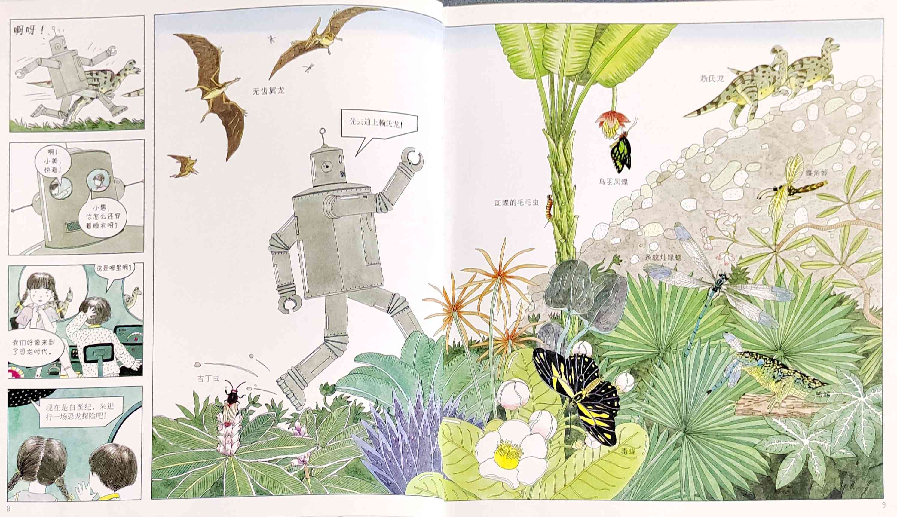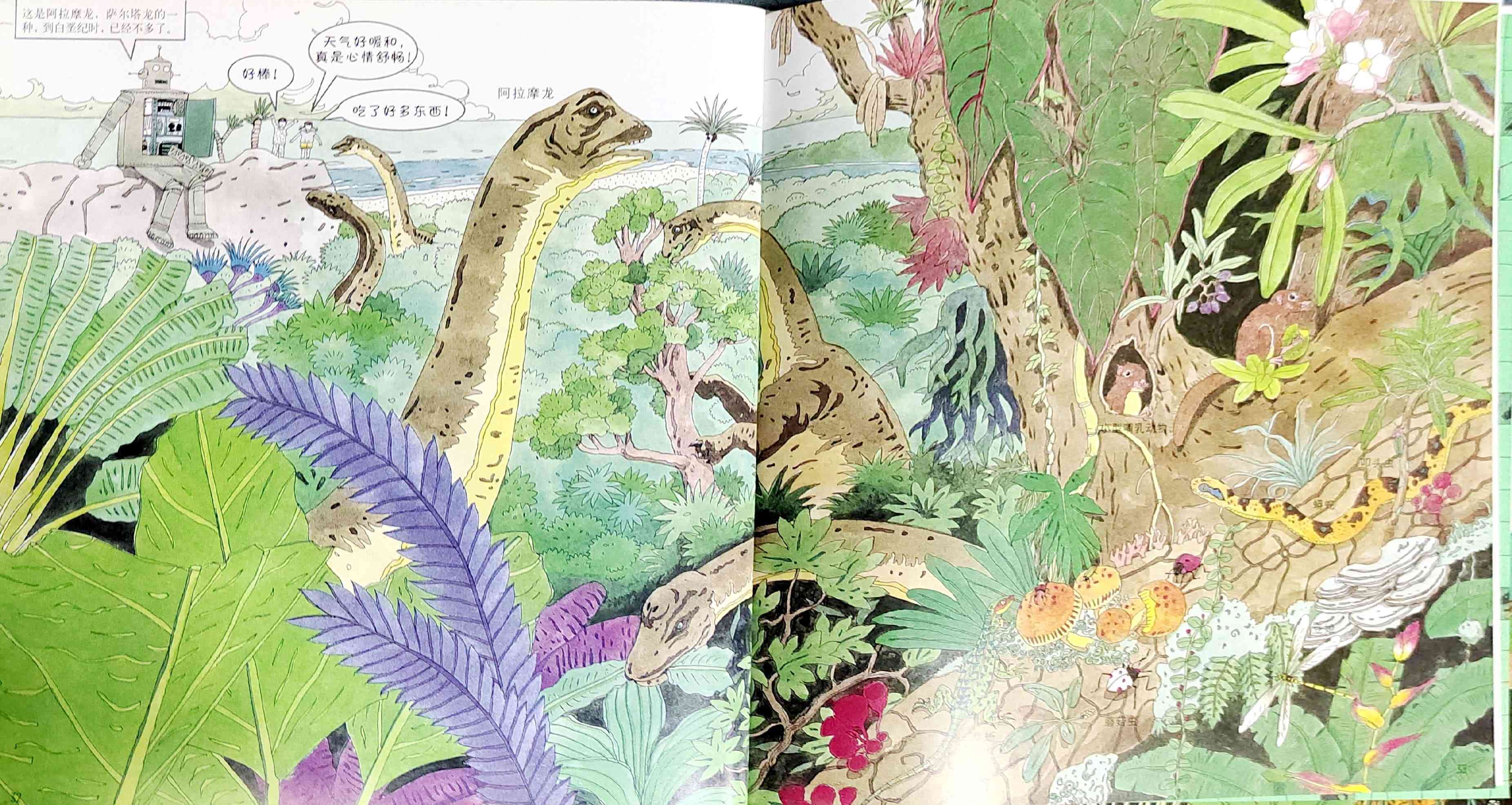 本书是我社已出版的启发精选世界优秀畅销绘本系列之一,适合3岁以上儿童阅读。 两个孩子一起制作了一个大型智能机器人,一起穿越到白垩纪探访恐龙世界,他们领教了食肉恐龙的厉害,见识了食草恐龙的智慧,还见证了恐龙的灭绝!当然也经历了小小的危险……松冈达英以分格漫画铺陈故事,引导孩子认识各种各样的恐龙、以及白垩纪的生态环境,观察、发现生物之间的关系,让孩子真实感受到自然生灵的可贵。