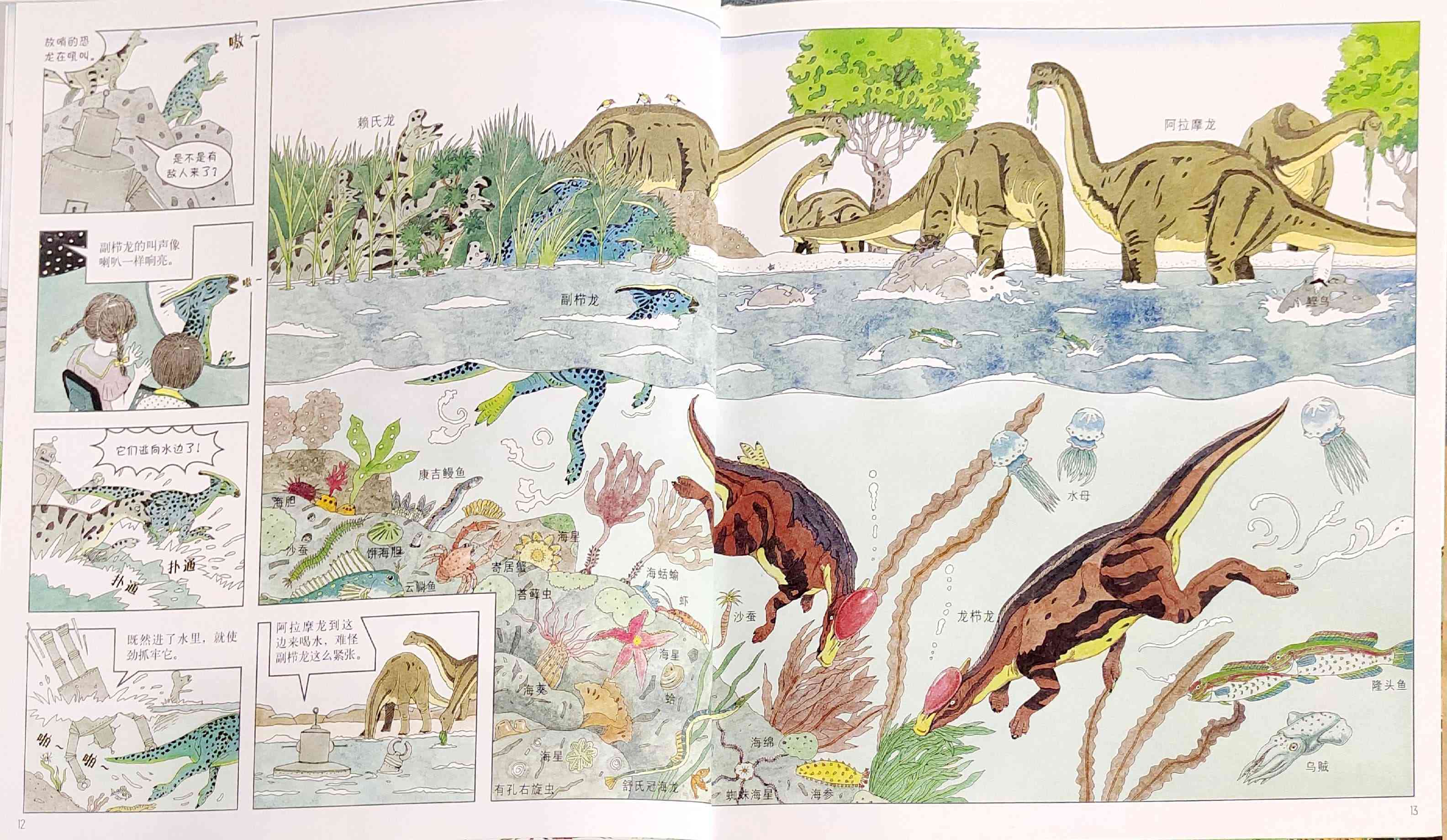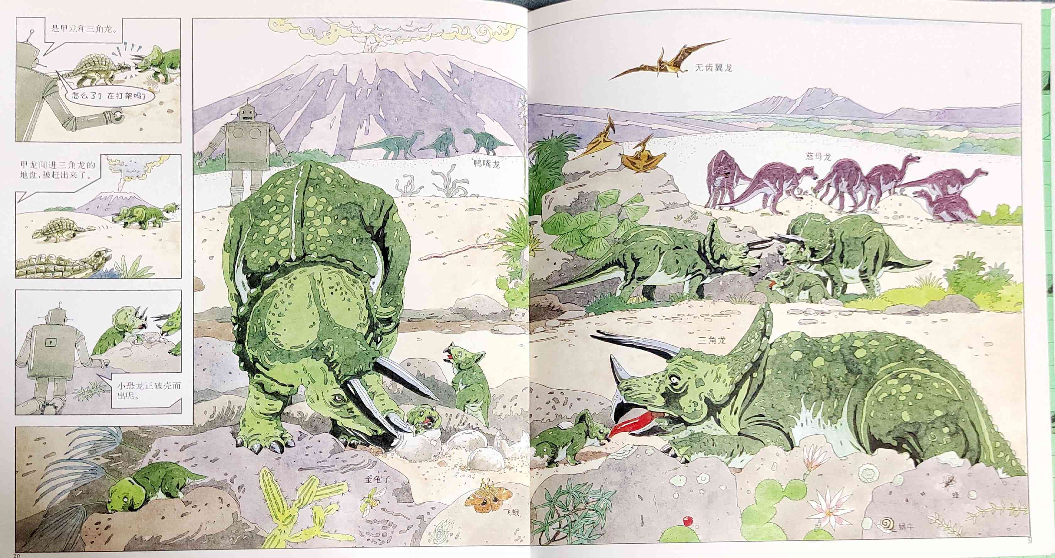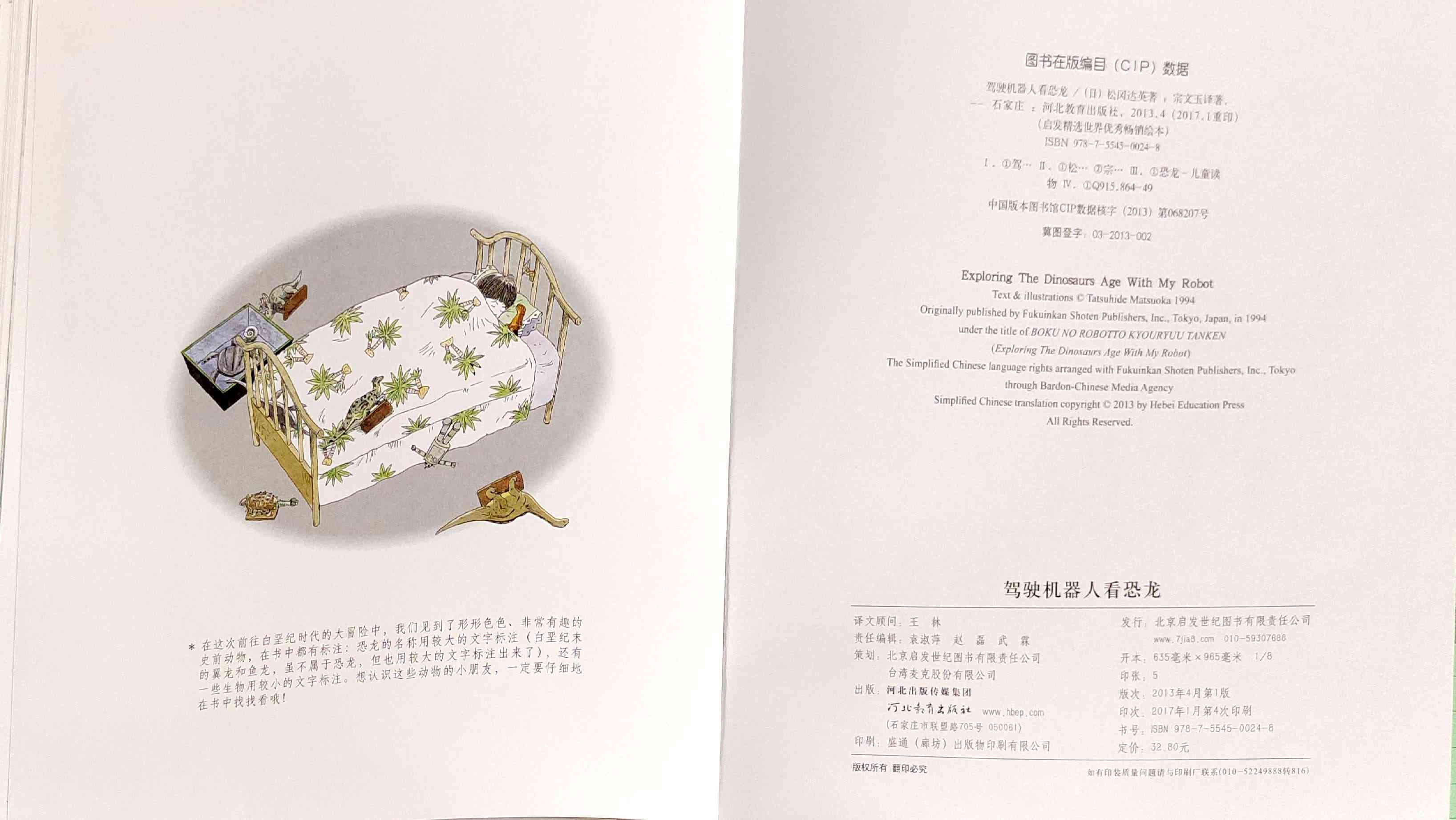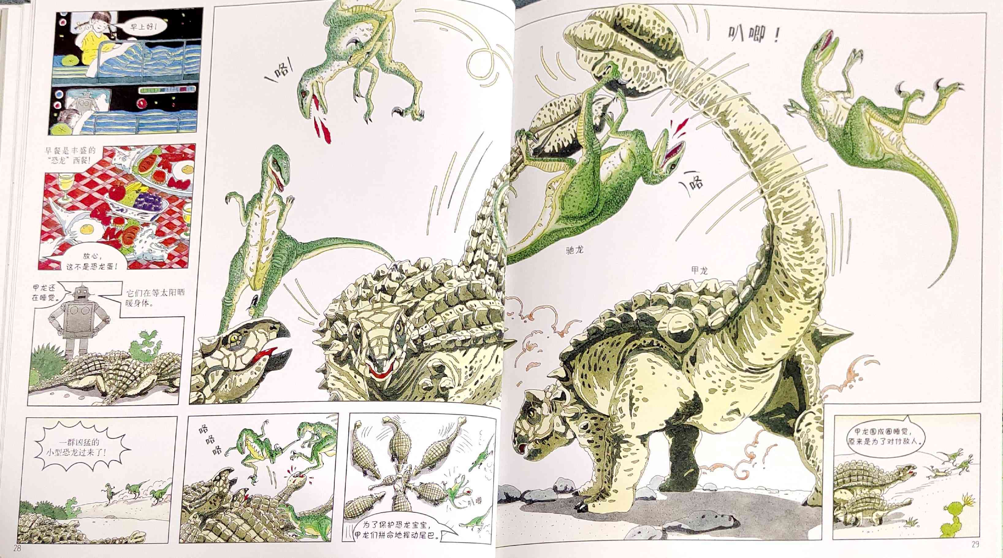 本书是我社已出版的启发精选世界优秀畅销绘本系列之一,适合3岁以上儿童阅读。 两个孩子一起制作了一个大型智能机器人,一起穿越到白垩纪探访恐龙世界,他们领教了食肉恐龙的厉害,见识了食草恐龙的智慧,还见证了恐龙的灭绝!当然也经历了小小的危险……松冈达英以分格漫画铺陈故事,引导孩子认识各种各样的恐龙、以及白垩纪的生态环境,观察、发现生物之间的关系,让孩子真实感受到自然生灵的可贵。