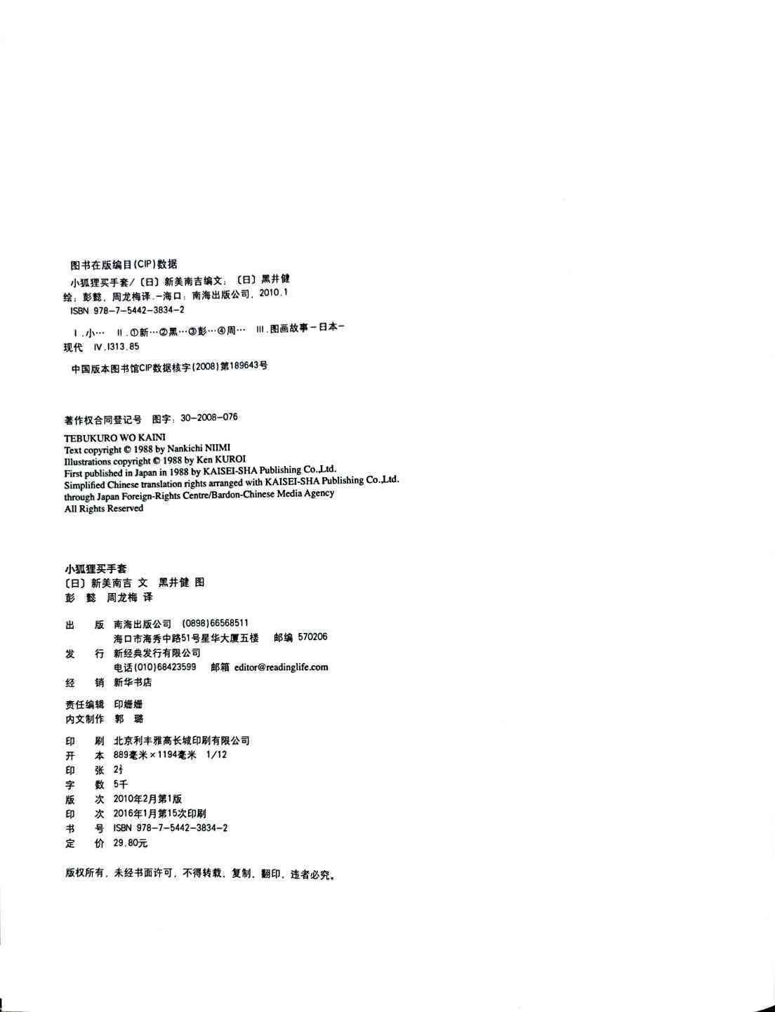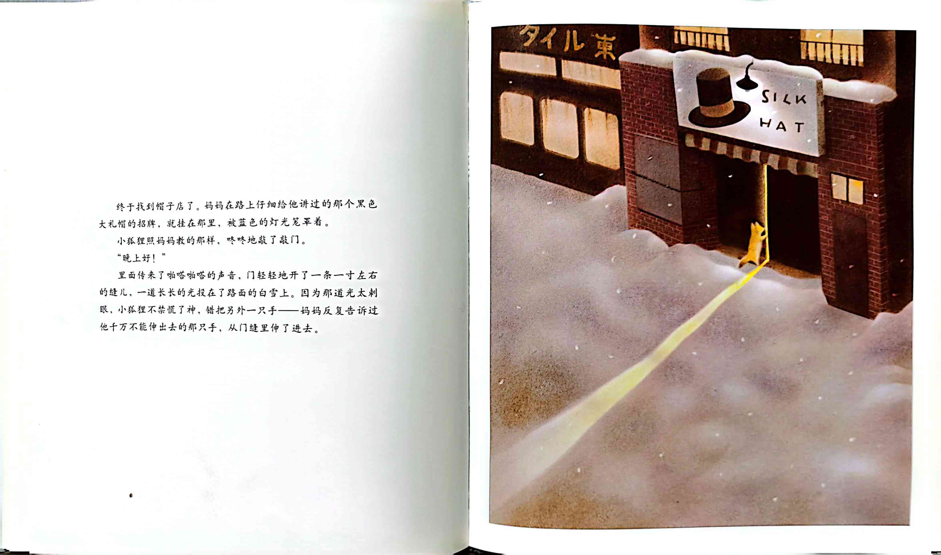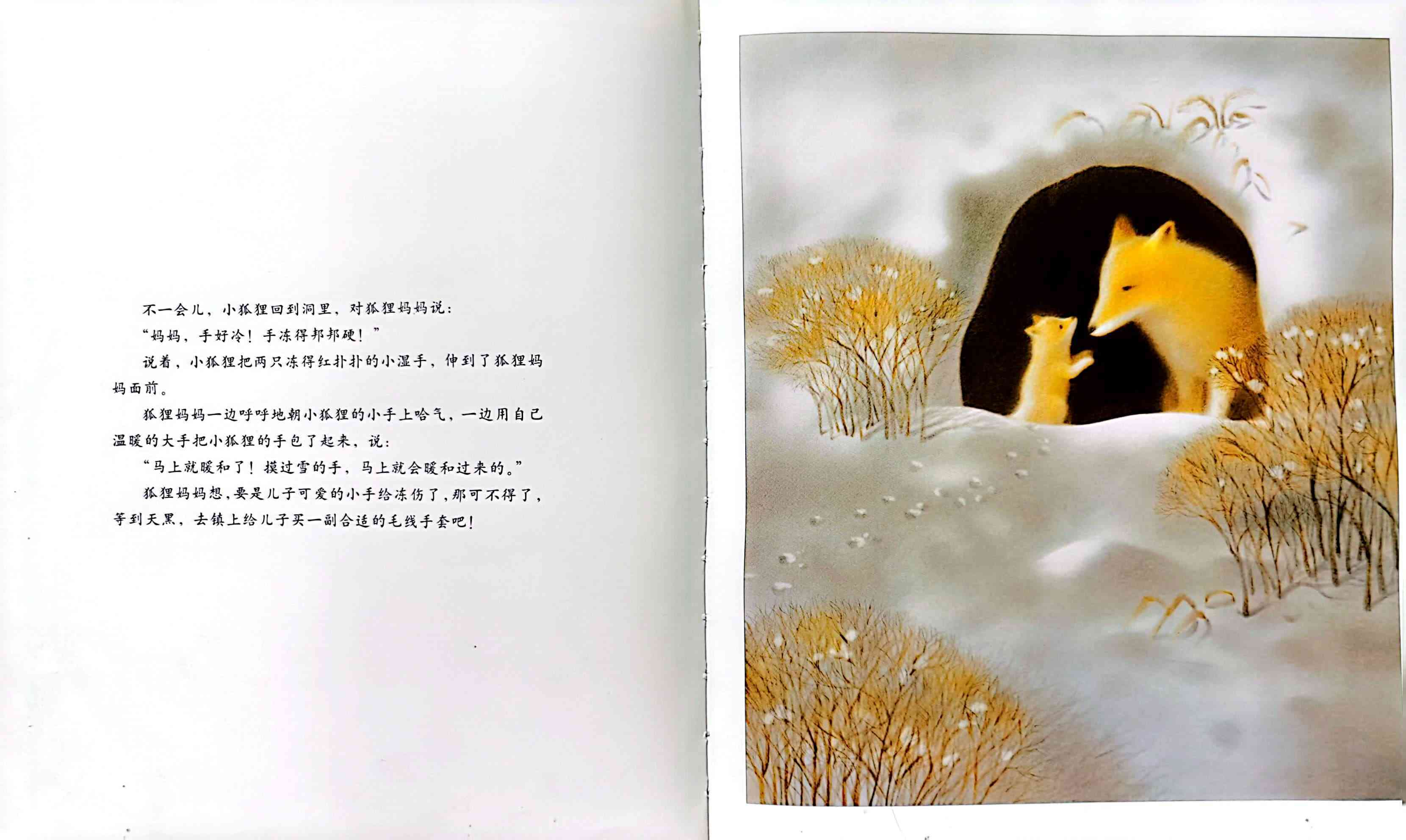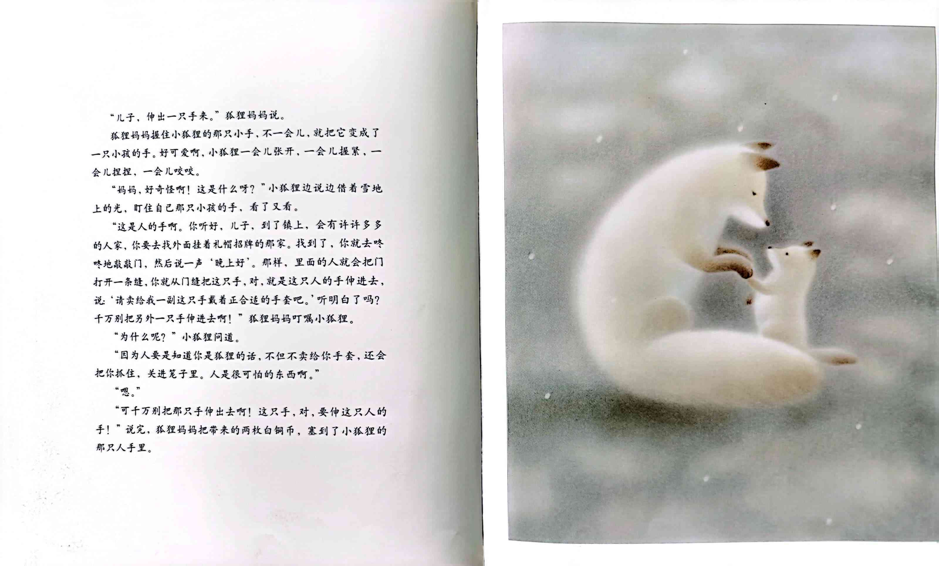 寒冷的冬天来了,狐狸妈妈为了不让小狐狸的手被冻伤,决定去镇上帮他买一副手套。可是快到镇上时,狐狸妈妈却想起了差点被人抓走的可怕经历,不敢再往前走了,只好让小狐狸自己去镇上。狐狸妈妈把小狐狸的一只手变成人手的样子,并反复叮嘱他一定要伸这只手出去。可是小狐狸来到商店门口时,却因为紧张伸错了手……本书是日本著名童话作家新美南吉最打动人心的故事,在日本家喻户晓,并被选入小学语文课本。这篇童话曾先后由多位不同的插画家配图,出版成绘本,但唯有黑井健绘图的这一版本,牢牢把握住了狐狸母子间的温情、小狐狸的天真可爱和雪国梦幻般的美丽场景。