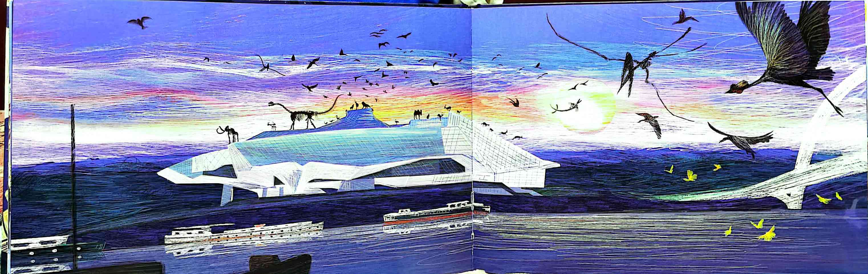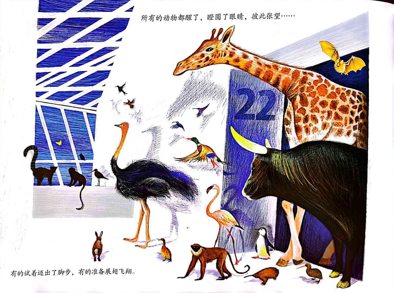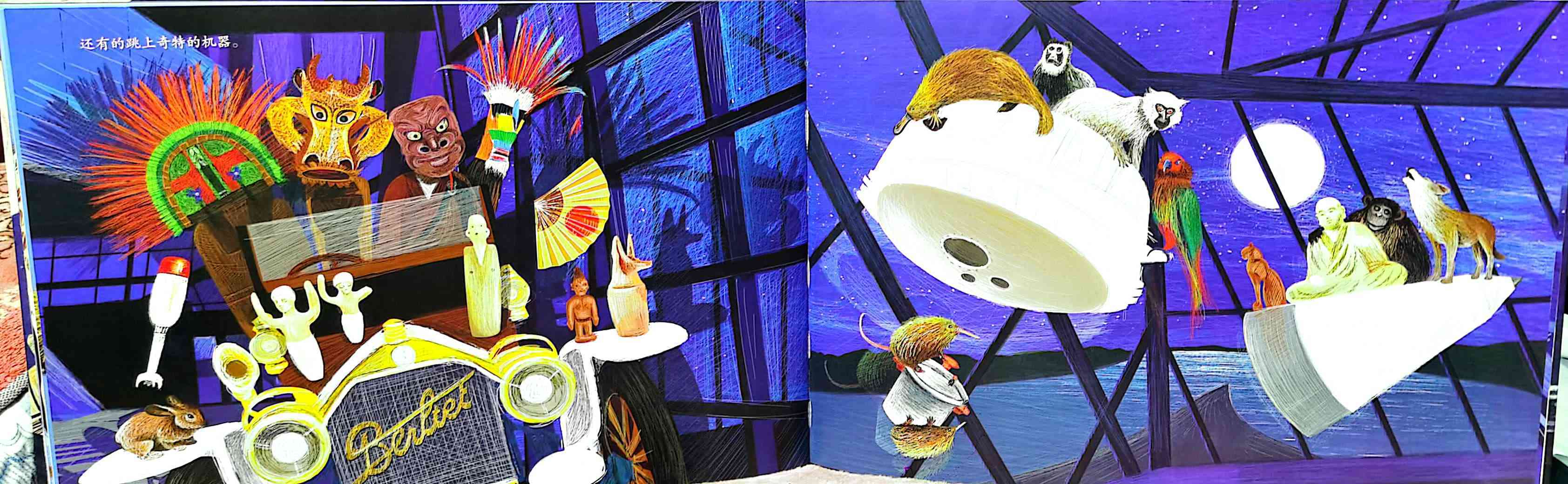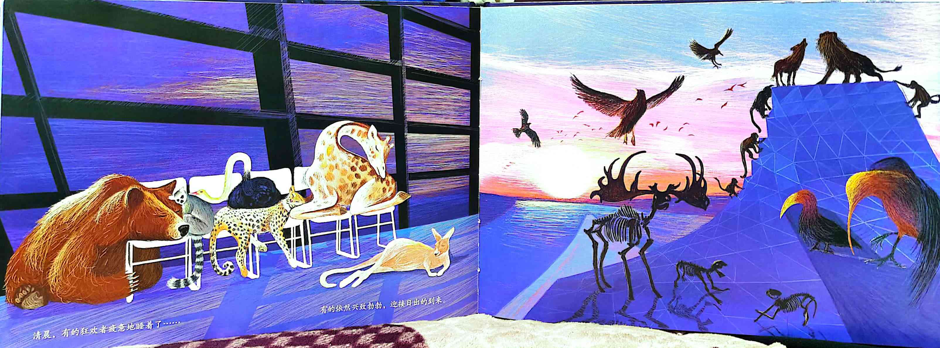 《博物馆之夜》内容简介:一座造型奇特的博物馆坐落在罗纳河旁边。夜晚降临了,动植物化石静悄悄的,甲壳类昆虫们和蝴蝶们也静悄悄的。突然一只蝴蝶飞了出来,几只蝴蝶飞了出来,蝴蝶在动物的骨骼上停留。接着,大小哺乳动物和卵生动物们都活了过来。于是,博物馆珍藏的宝贝们开始了一场“大出走”。当第二天清晨来临,人们来到博物馆参观会发现什么呢?