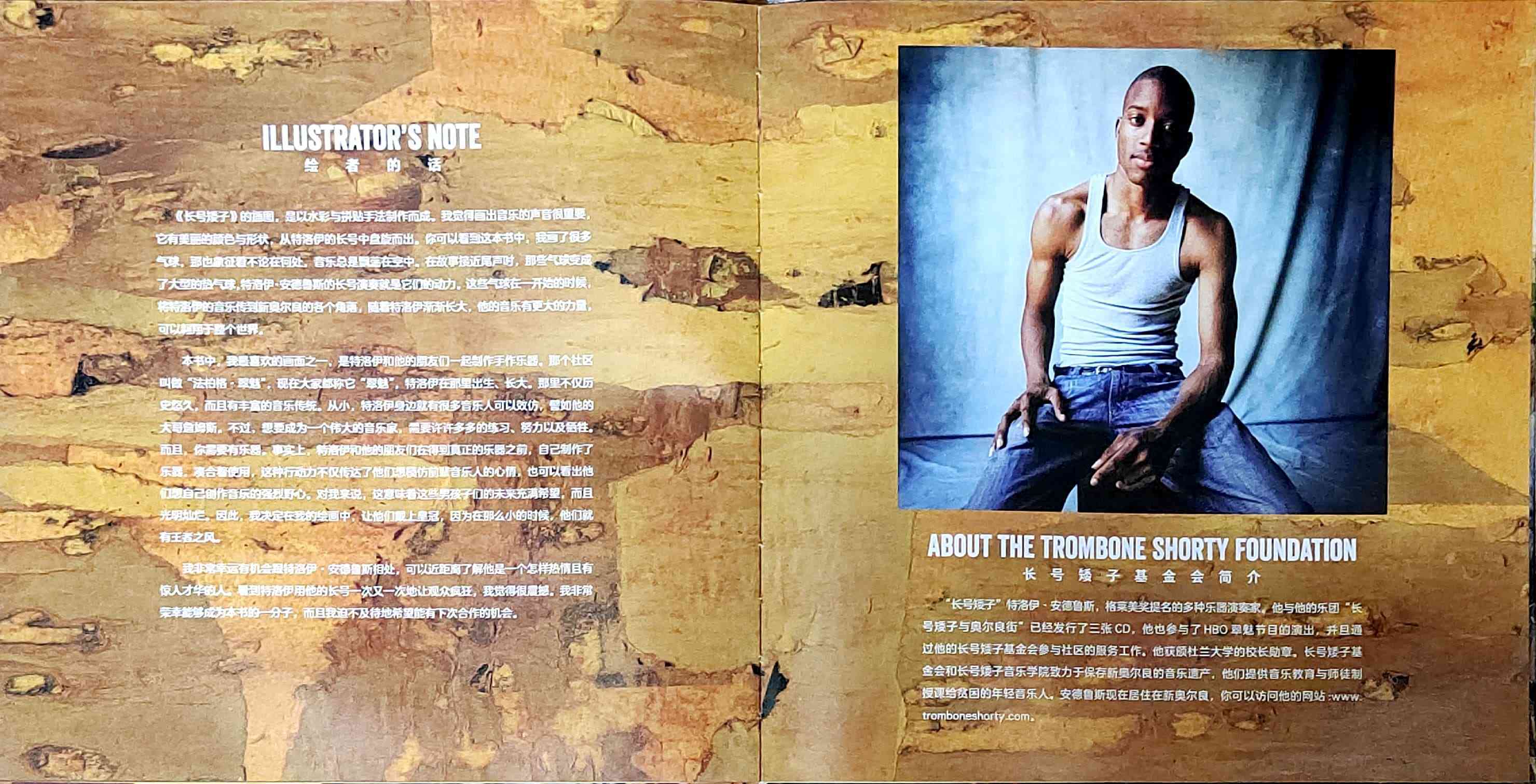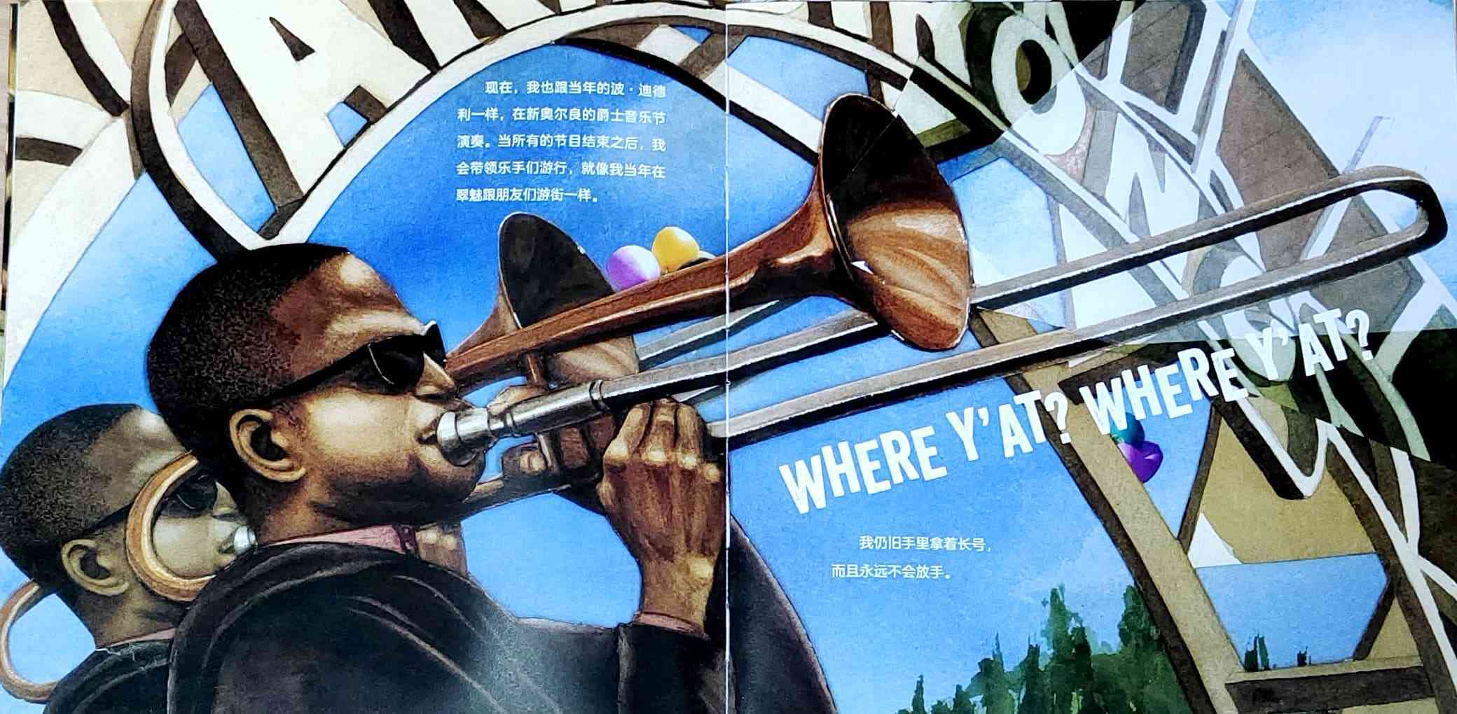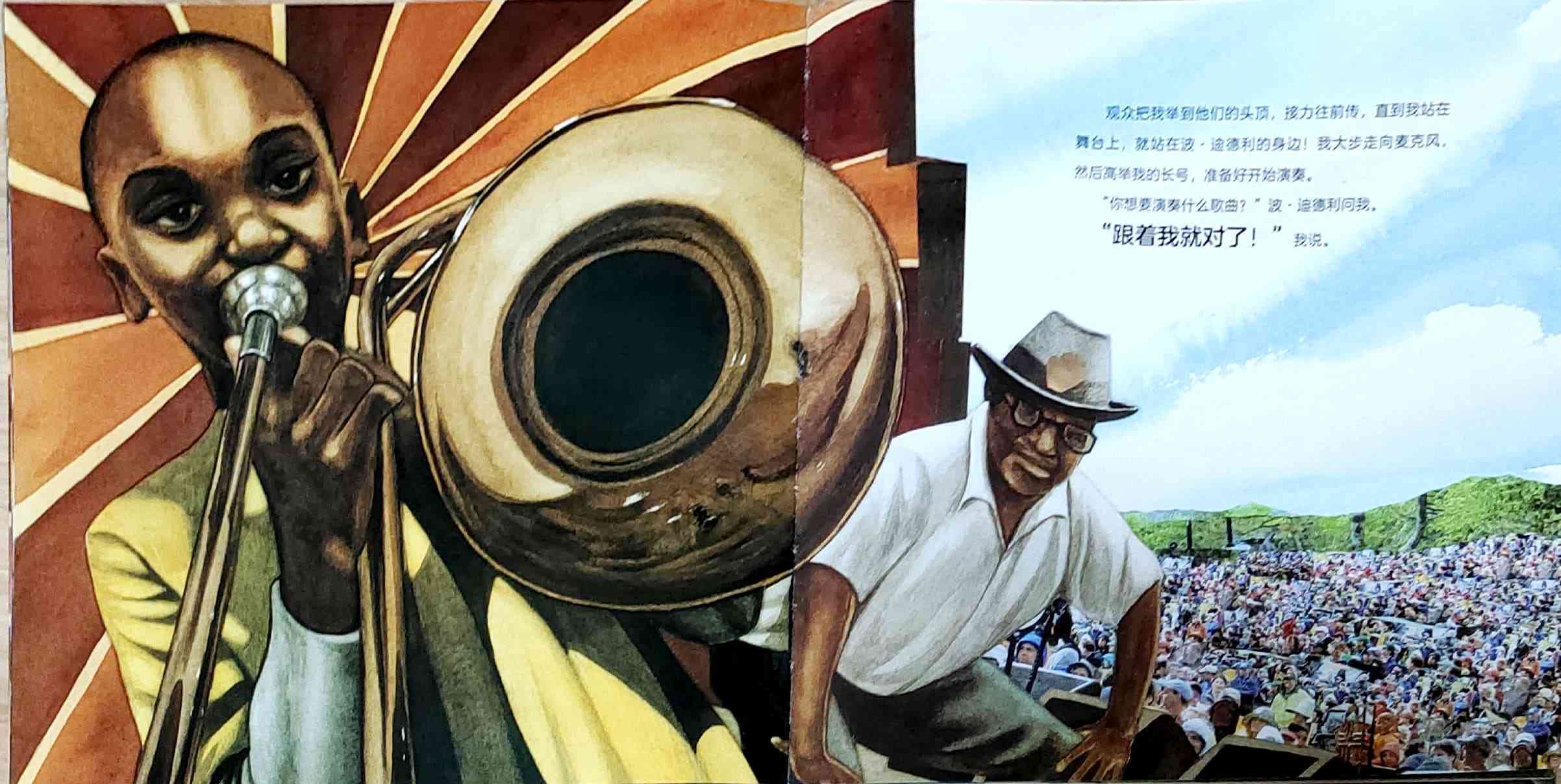 一个叫外号叫“长号矮子”的男孩讲述了他的外号来历的故事,以及他是如何成长为一名爵士乐音乐人的传奇经历。 “长号矮子”原名特洛伊·安德鲁斯,他出生于美国新奥尔良,爵士乐的发源地。他的童年生活深受音乐的影响,每年的音乐狂欢节是小镇*重要的节日之一。热爱音乐的特洛伊偶然捡到一把别人不要的长号,他每天带着这把比自己还要高的长号刻苦努力地练习,并因此得到了“长号矮子”的外号,以及和殿堂级爵士乐音乐人波·迪德利合奏的机会。 在这本自传绘本中,特洛伊回忆了他童年生活中他深爱的家乡新奥尔良的关于爵士乐的故事。通过科利尔的绘画和拼贴插画,故事的真实性,和发自作者内心的声音被巧妙地融为一体。