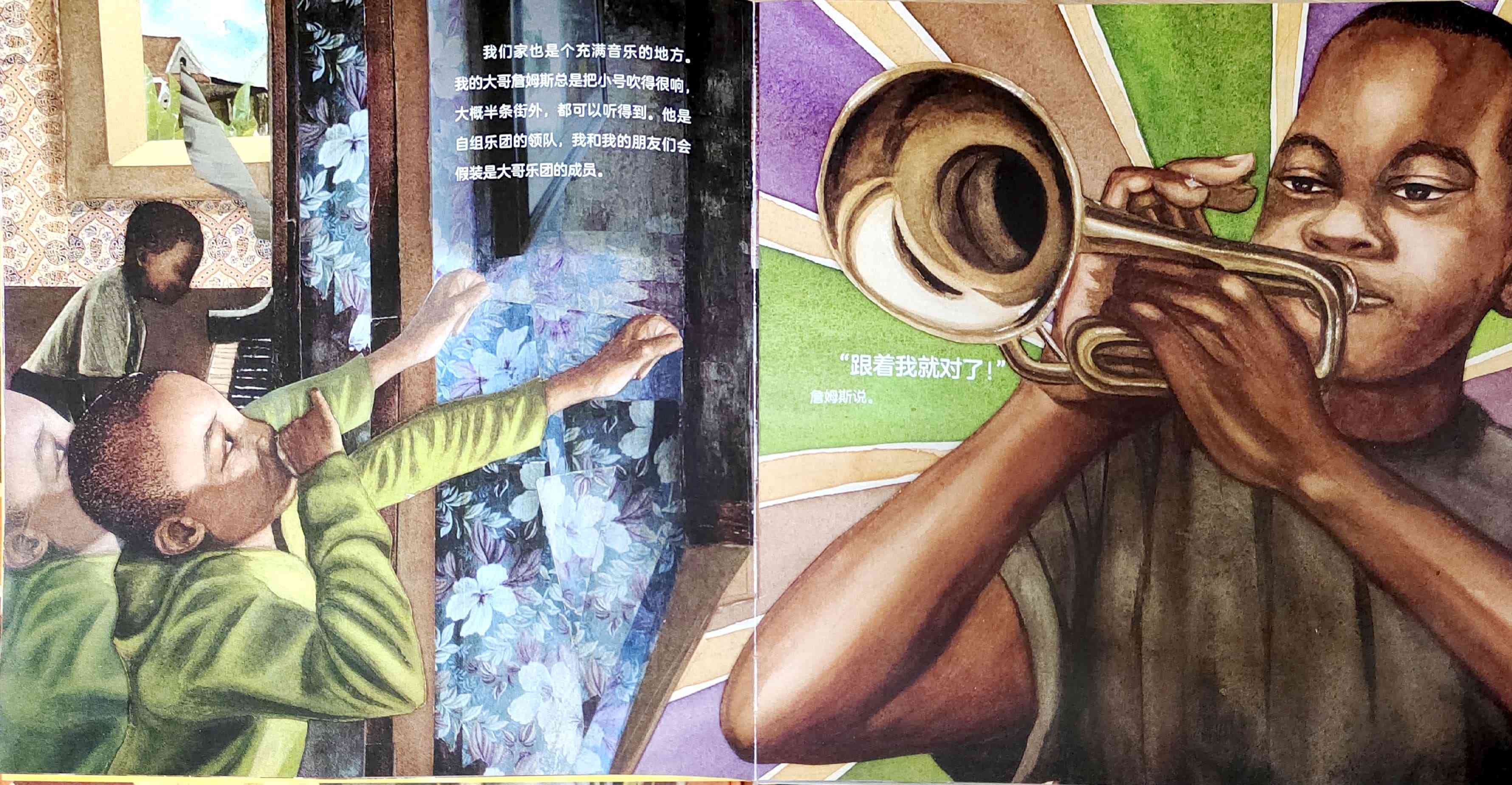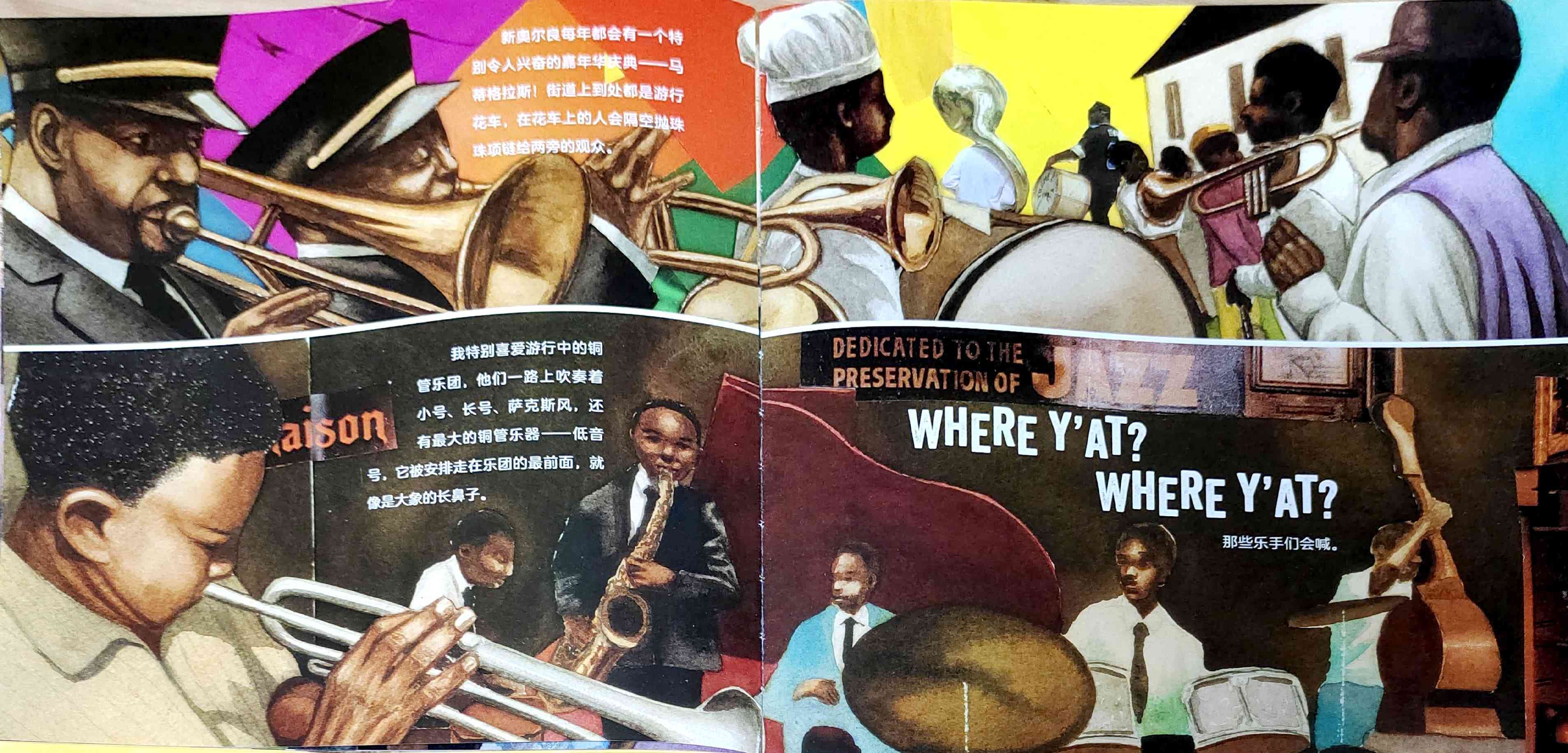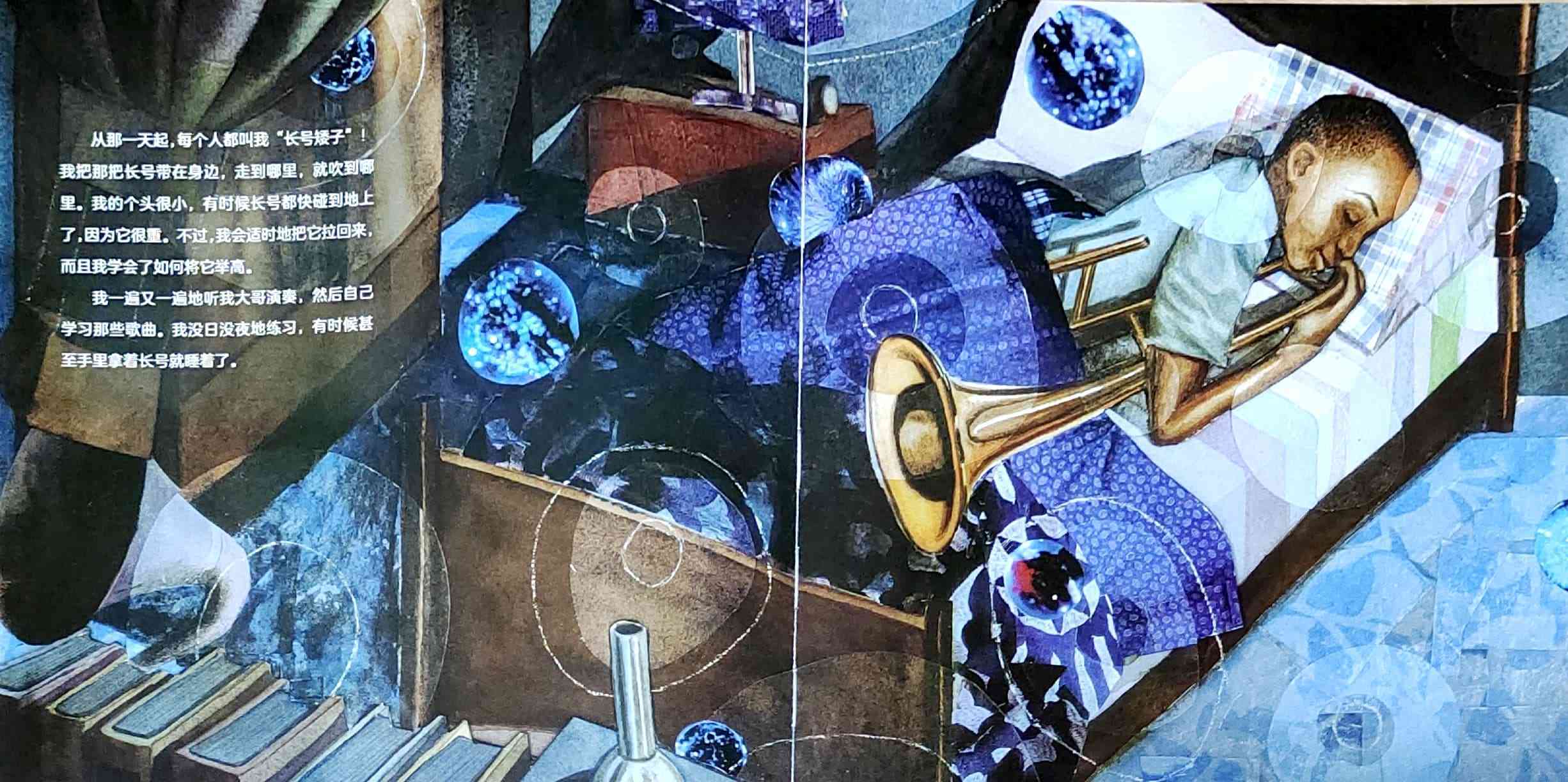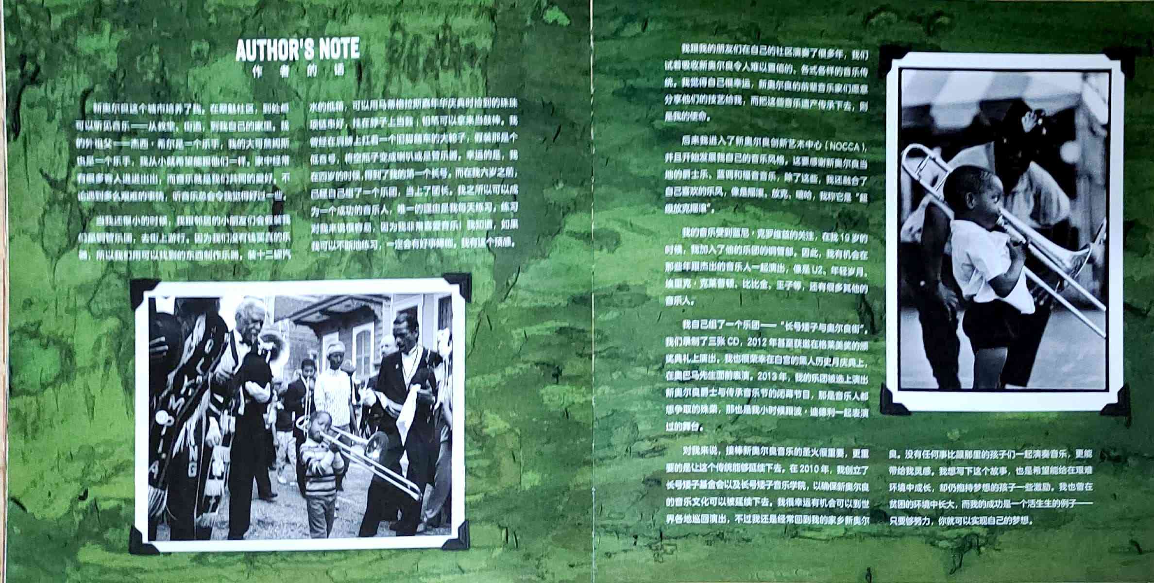 一个叫外号叫“长号矮子”的男孩讲述了他的外号来历的故事,以及他是如何成长为一名爵士乐音乐人的传奇经历。 “长号矮子”原名特洛伊·安德鲁斯,他出生于美国新奥尔良,爵士乐的发源地。他的童年生活深受音乐的影响,每年的音乐狂欢节是小镇*重要的节日之一。热爱音乐的特洛伊偶然捡到一把别人不要的长号,他每天带着这把比自己还要高的长号刻苦努力地练习,并因此得到了“长号矮子”的外号,以及和殿堂级爵士乐音乐人波·迪德利合奏的机会。 在这本自传绘本中,特洛伊回忆了他童年生活中他深爱的家乡新奥尔良的关于爵士乐的故事。通过科利尔的绘画和拼贴插画,故事的真实性,和发自作者内心的声音被巧妙地融为一体。