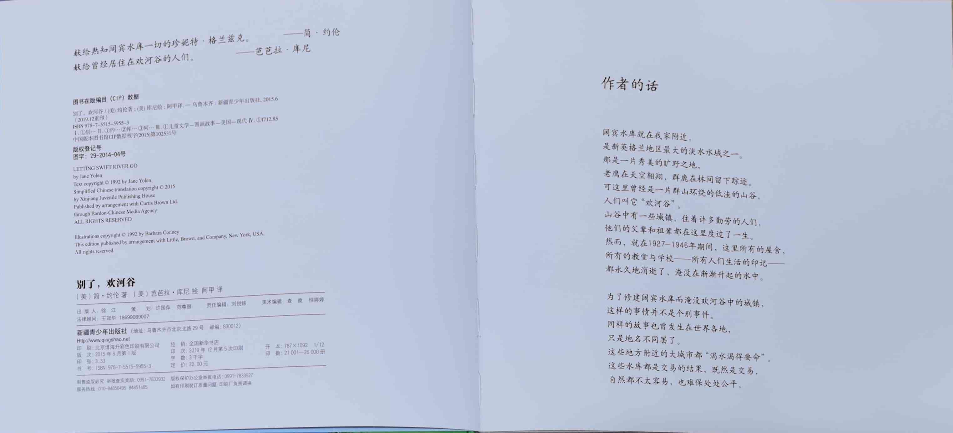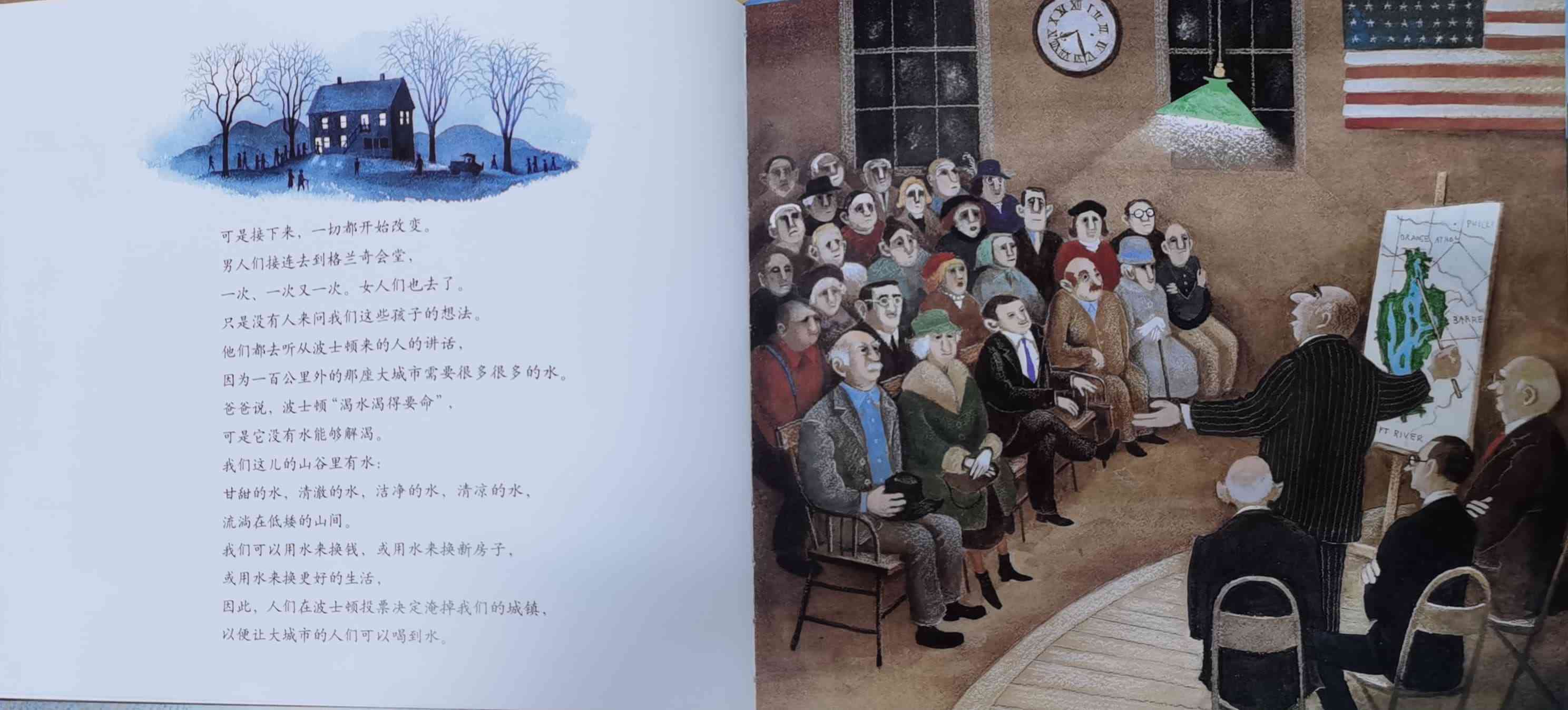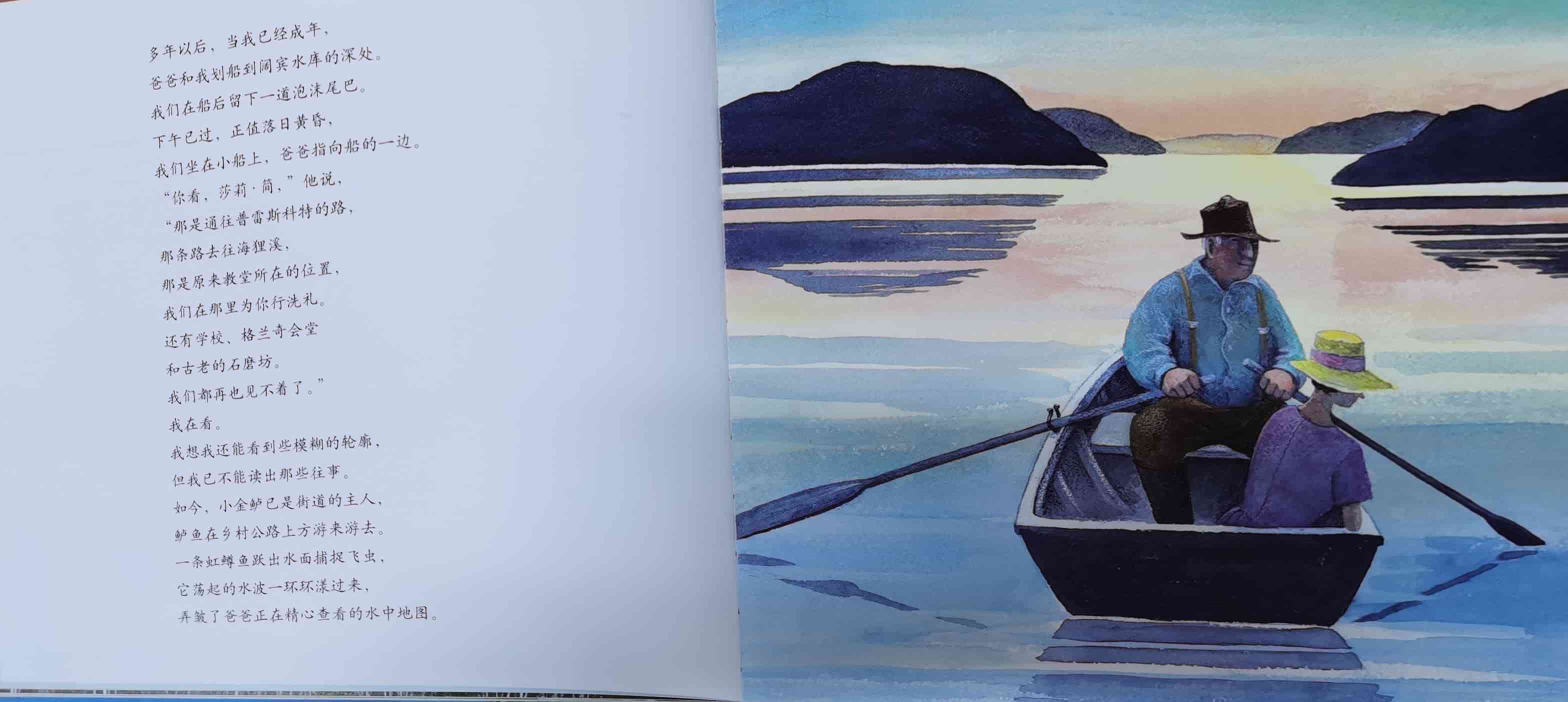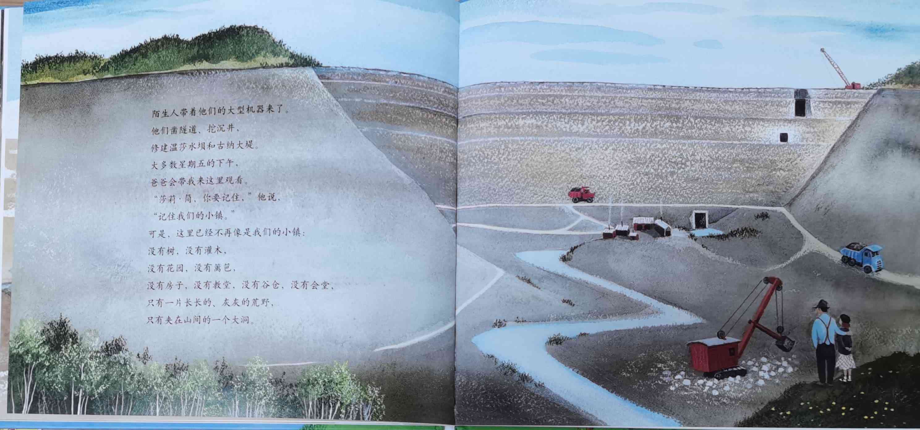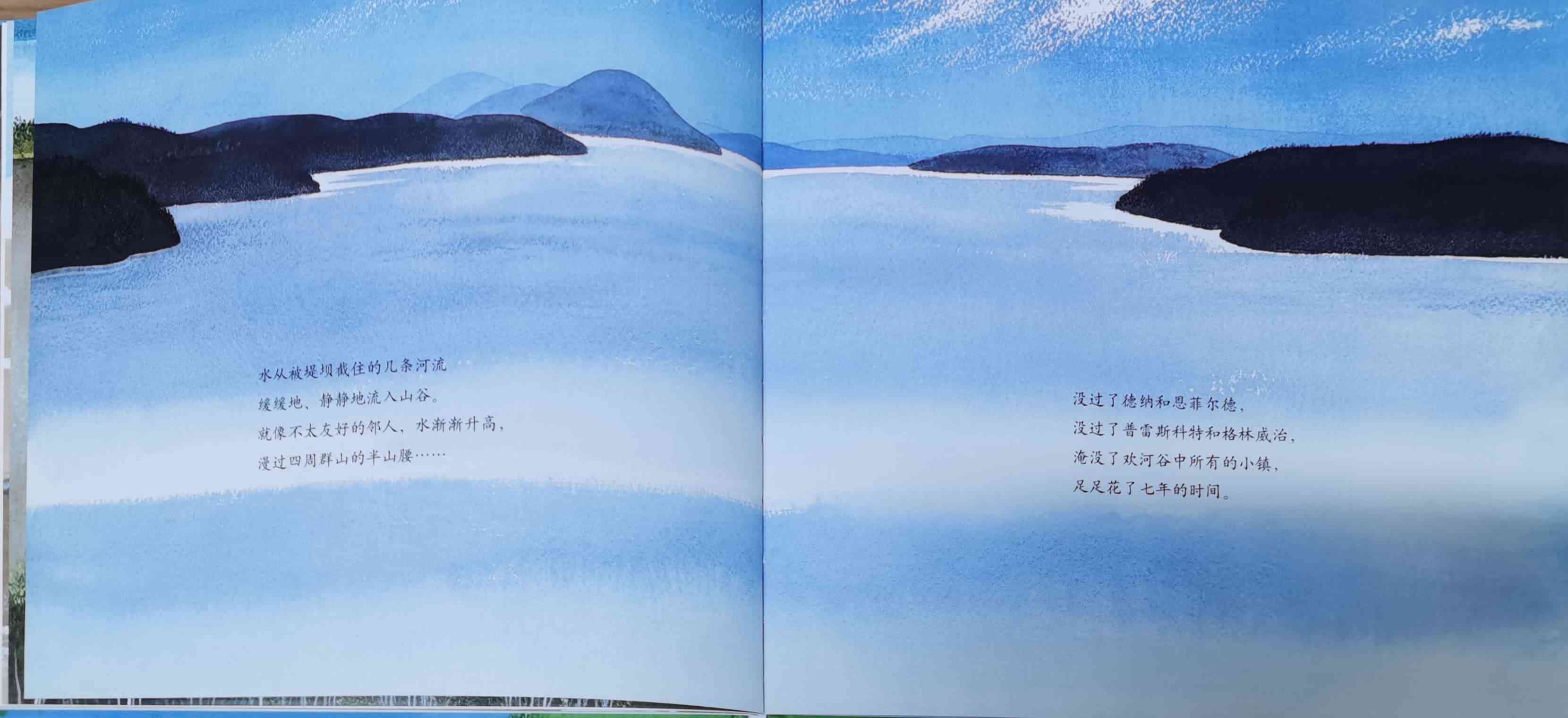 图画书讲述作家在1927到1946年间的亲身经历:作家小时候居住在欢河流域一个平静的村庄里,群山环绕的欢河谷,记录着人与自然和谐相处的点滴记忆。然而,为了兴建阔宾水库,解决附近大城市的缺水问题,作家不得不和家人远离家园、搬到远方,任由推土机摧毁欢河谷小镇美丽的房舍和青葱的树林……
