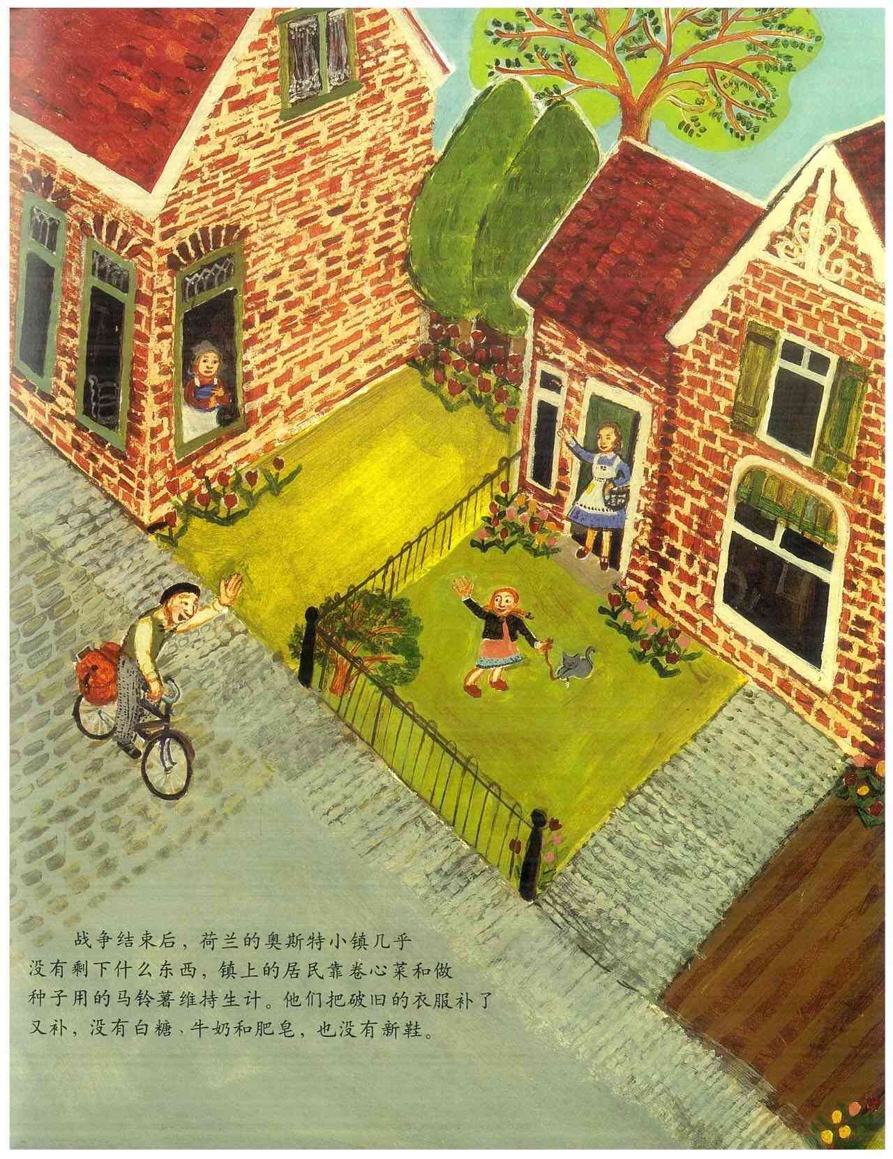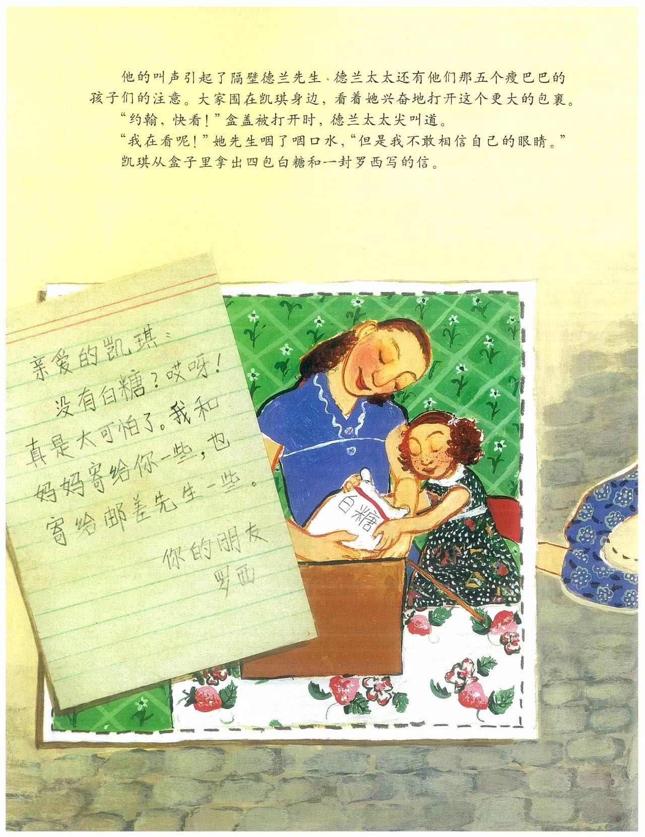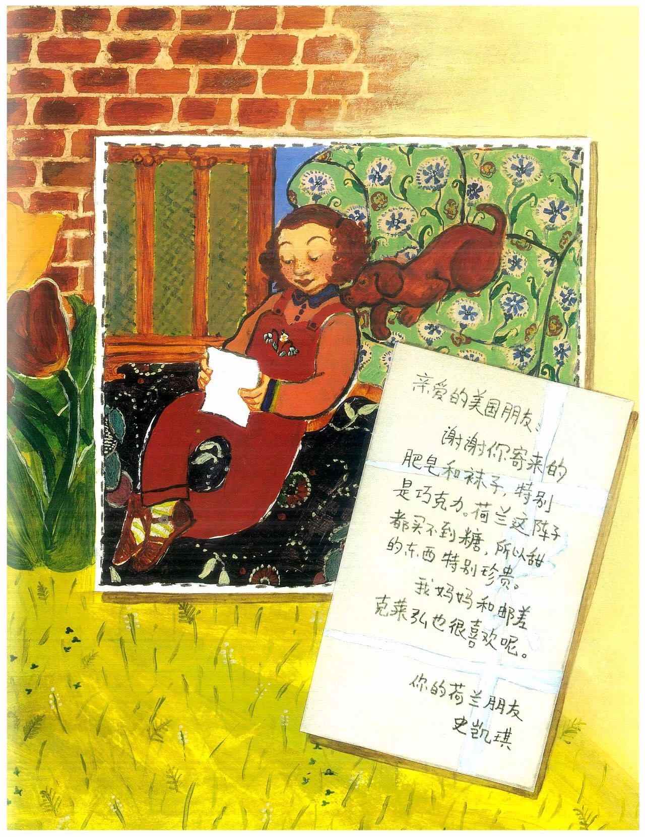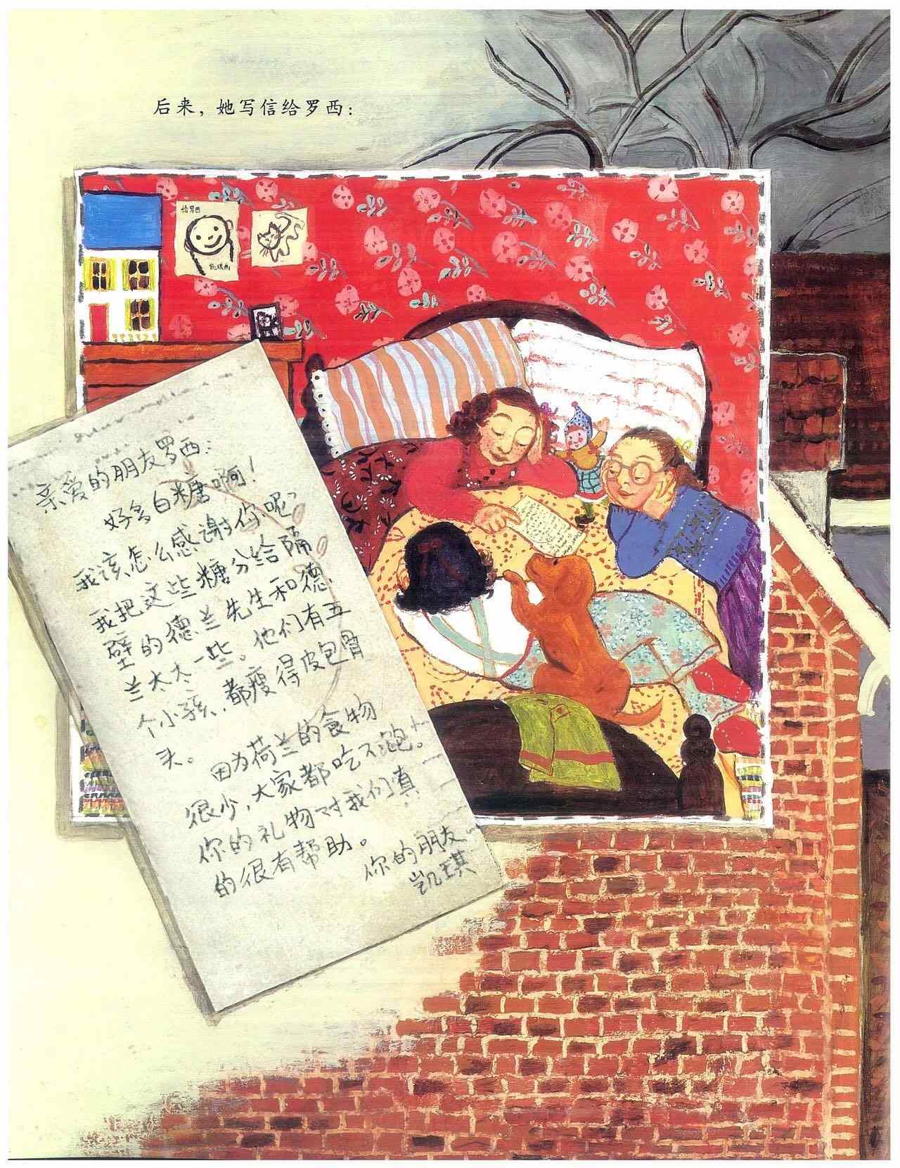 《凯琪的包裹》是根据一个真实事件写成的。1945年5月,我母亲往欧洲寄了一个小包裹,里面装了一支牙膏、一双袜子、一块肥皂和一封短信。我母亲用难以辨认的潦草字迹送上祝福,也写下了自己的地址。我想,那些郁金香应该都还盛开着吧。