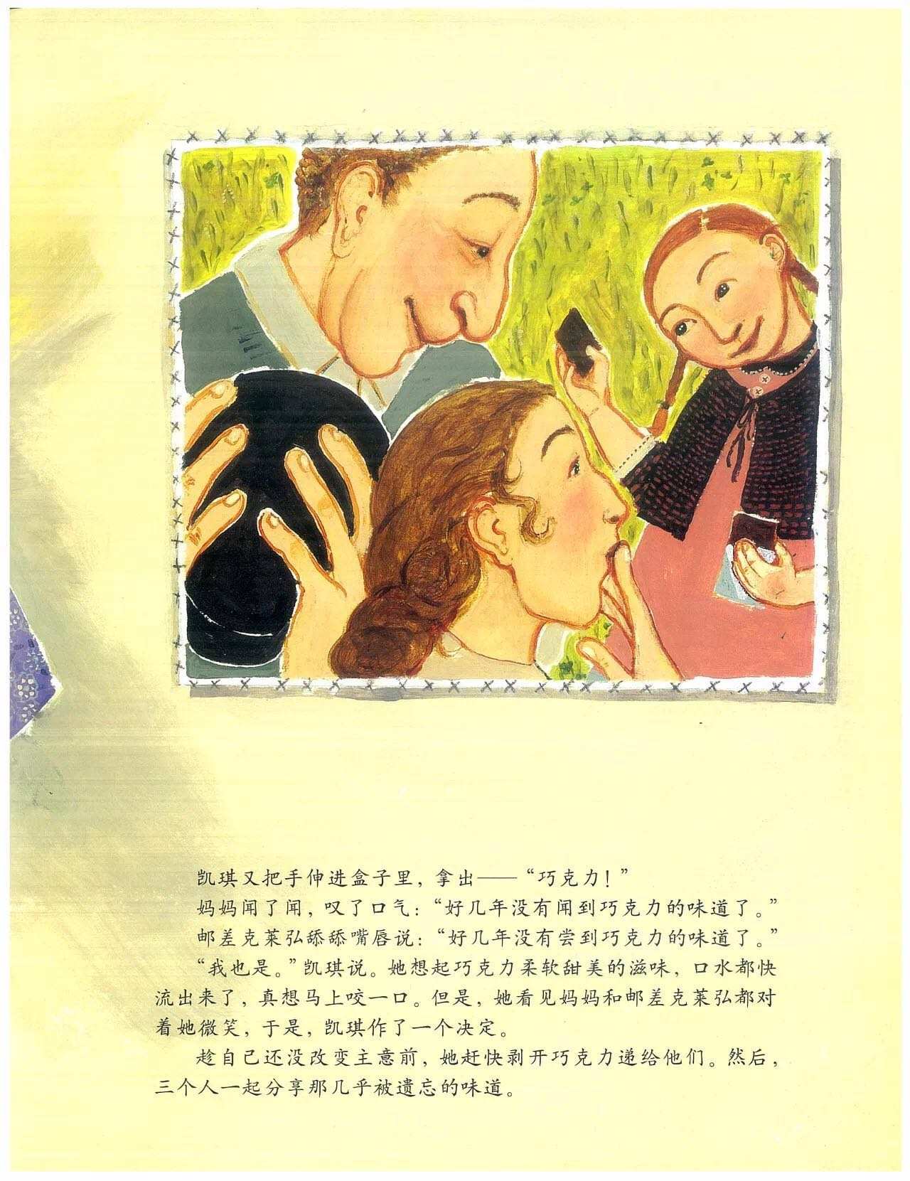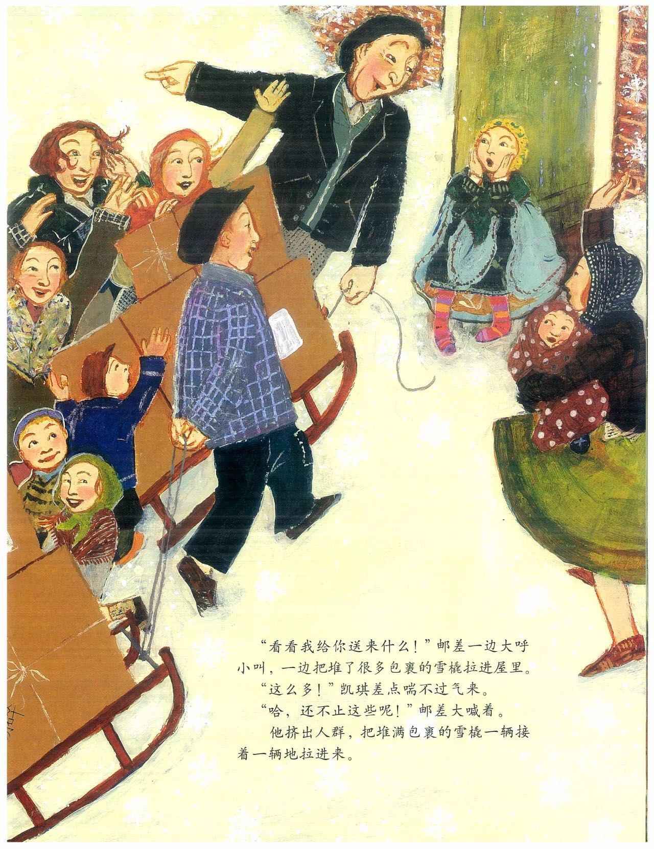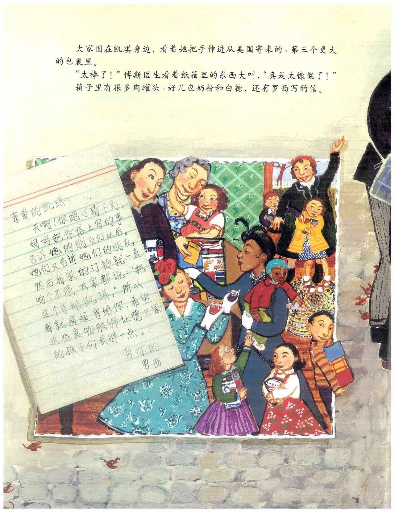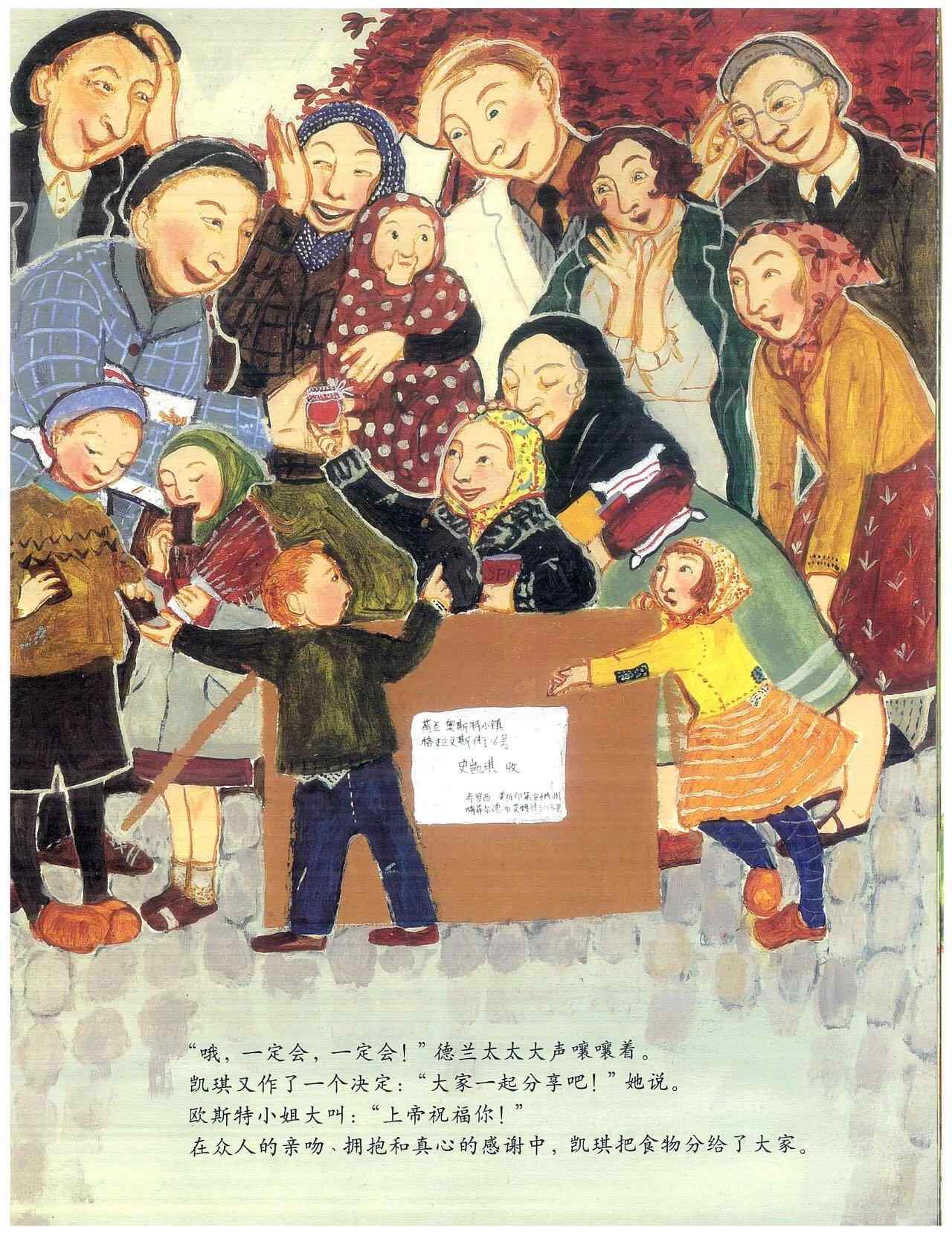 《凯琪的包裹》是根据一个真实事件写成的。1945年5月,我母亲往欧洲寄了一个小包裹,里面装了一支牙膏、一双袜子、一块肥皂和一封短信。我母亲用难以辨认的潦草字迹送上祝福,也写下了自己的地址。我想,那些郁金香应该都还盛开着吧。