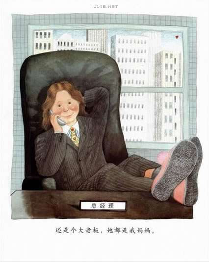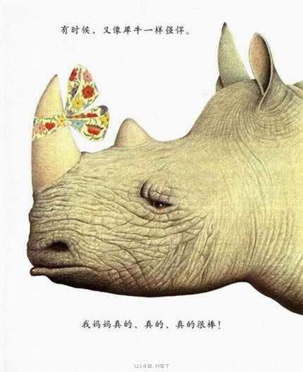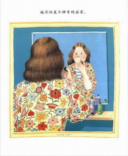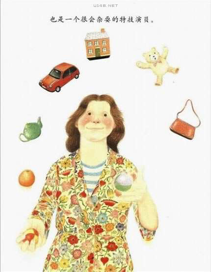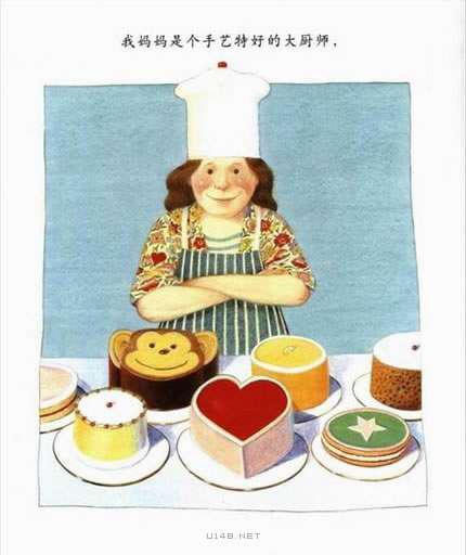 《我妈妈》这本书和2000年出版的《我爸爸》是安东尼·布朗给爸爸和妈妈的献礼。这本书里的妈妈和以往布朗书里的妈妈形象很不一样,她不像《动物园》里的妈妈默不作声。不像《朱家故事》里的妈妈愁容满面……而是体形富态、充满爱心、笑口常开。