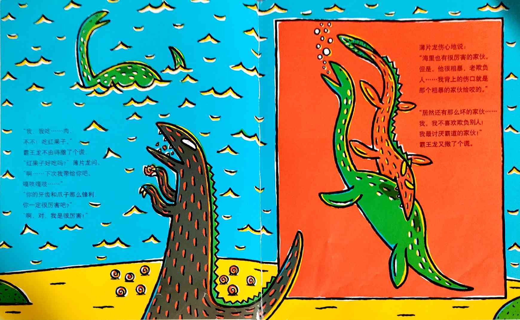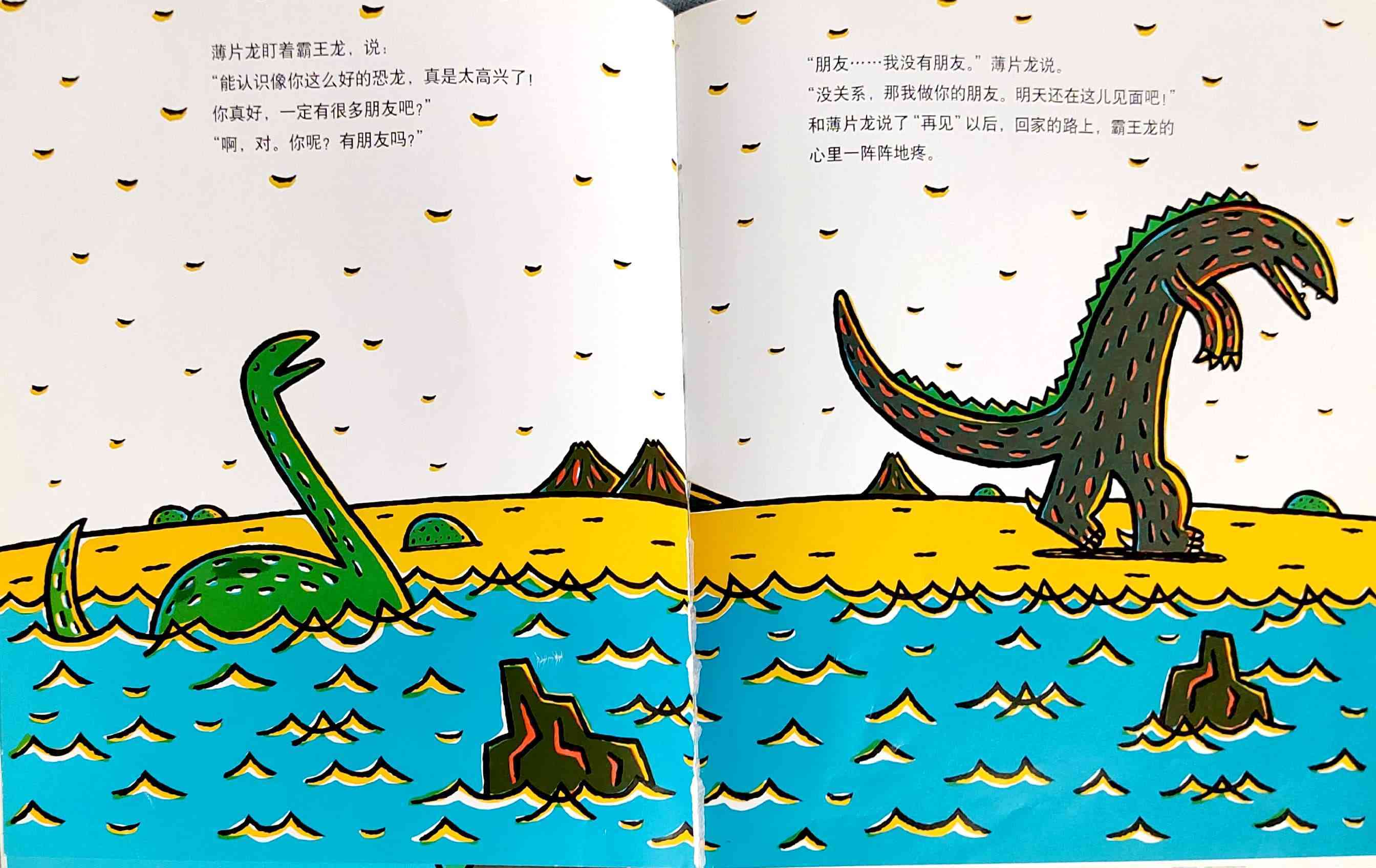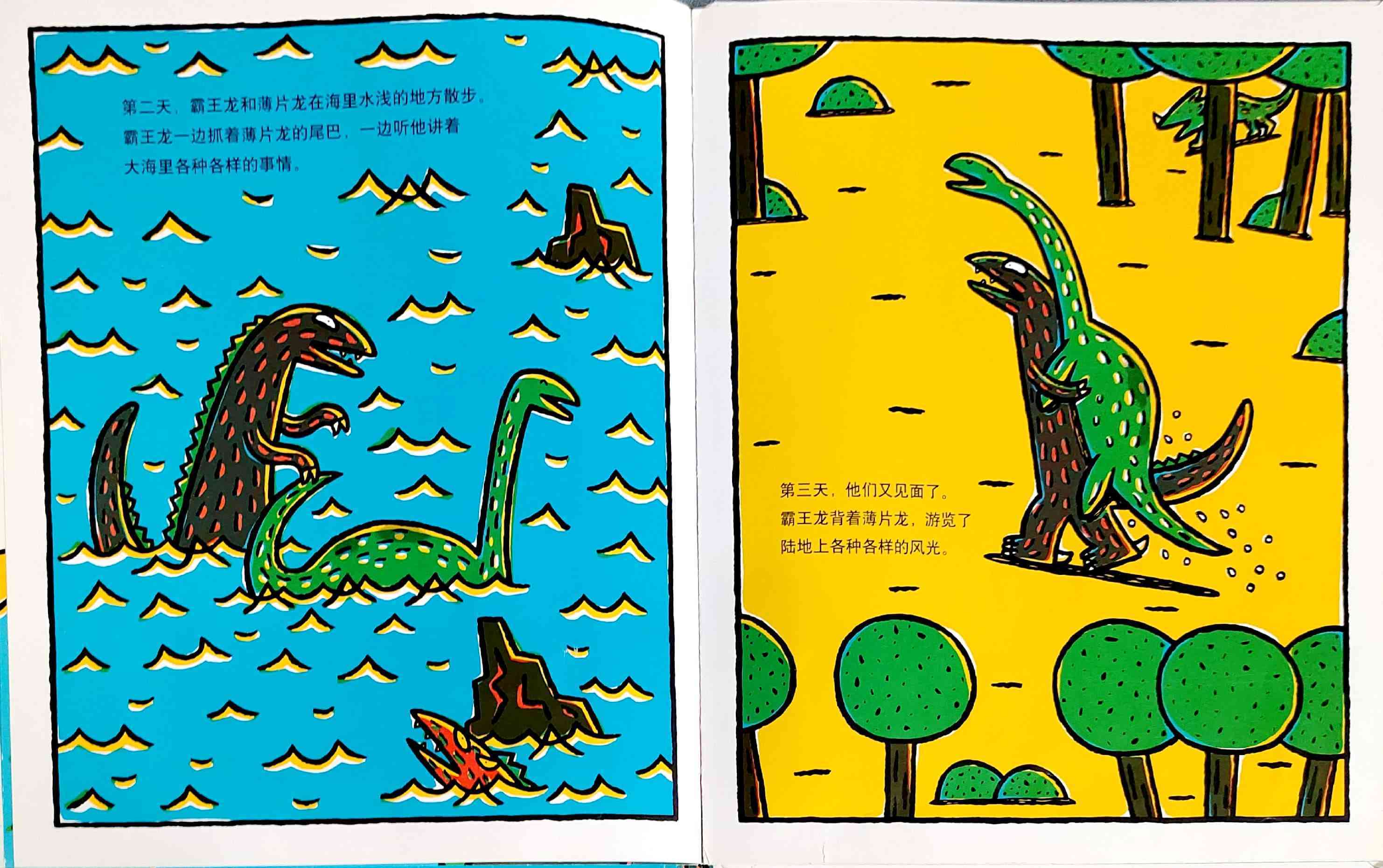 《你真好》内容简介:善良的薄片龙救了霸王龙的命,原本粗暴的爱欺负弱小的霸王龙,有生以来第一次感受到别人的善意。而且,薄片龙深信霸王龙也是个善良的家伙。在霸王龙心里,一颗爱的种子萌芽了。他喜欢上了薄片龙,所以违心地撒了不少谎,然而他心里很苦恼。当他怕失去惟一的朋友时,霸王龙想让朋友看到自己的真面目,主动吐露了自己的秘密。正如薄片龙说的那样,霸王龙再也不是个坏蛋了。他因为喜欢薄片龙,已经变成了一只温和体贴的恐龙了! 这是宫西达也的〈恐龙的温馨故事绘本〉系列的第三本,《你真好》延续了《你看起来好像很好吃》和《我是霸王龙》雄浑质朴的画风、曲折动人的情节和细腻丰富的情感。前两本更侧重于表现所谓的“强者与弱者”之间的情感融合,亲情色彩显得比较浓厚。而《你真好》当中,霸王龙和薄片龙之间的感情是平等的,友情还是爱情,不同的读者会有不同的理解;另外,故事的结尾具有开放性,读者同样可以任凭丰富的想象做出多种解读