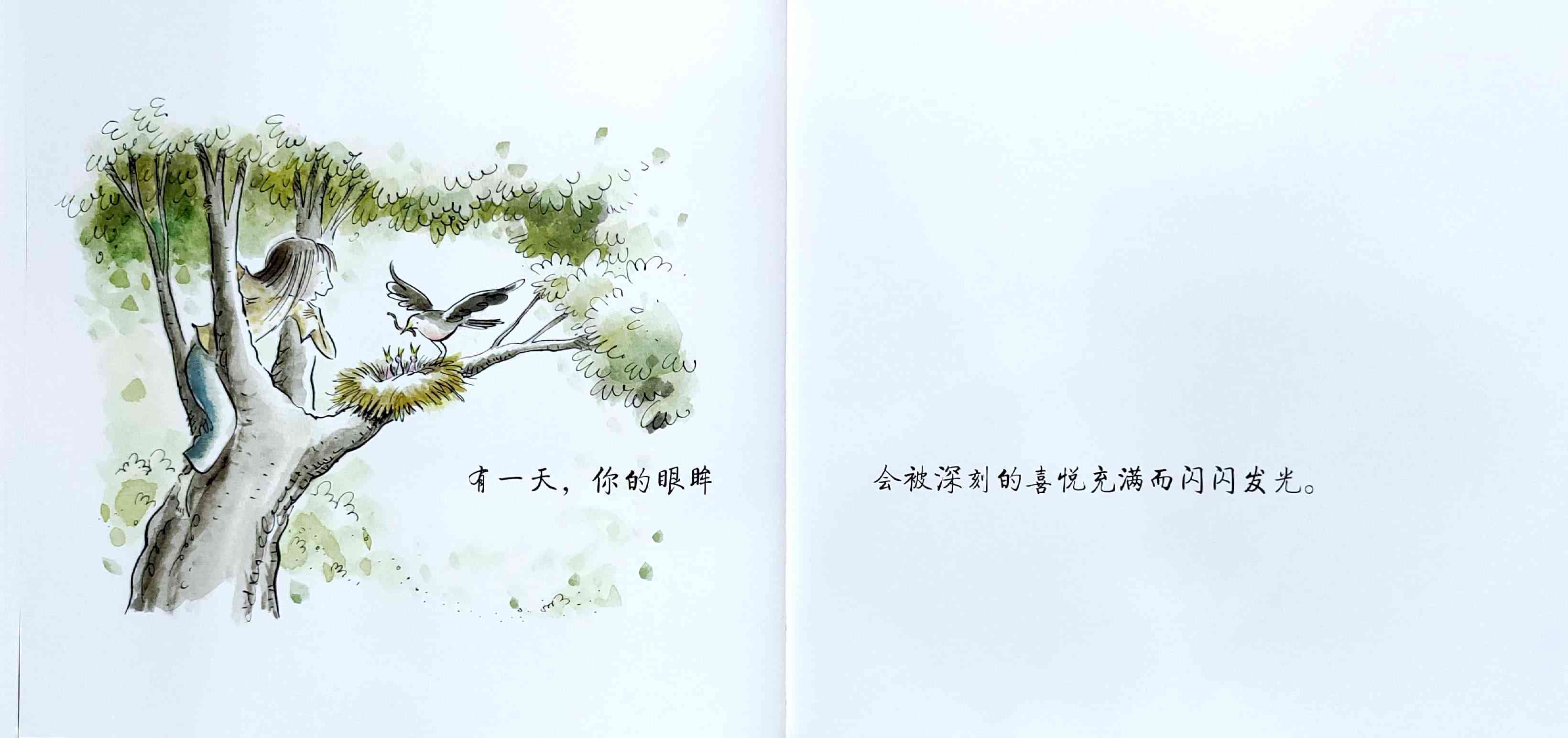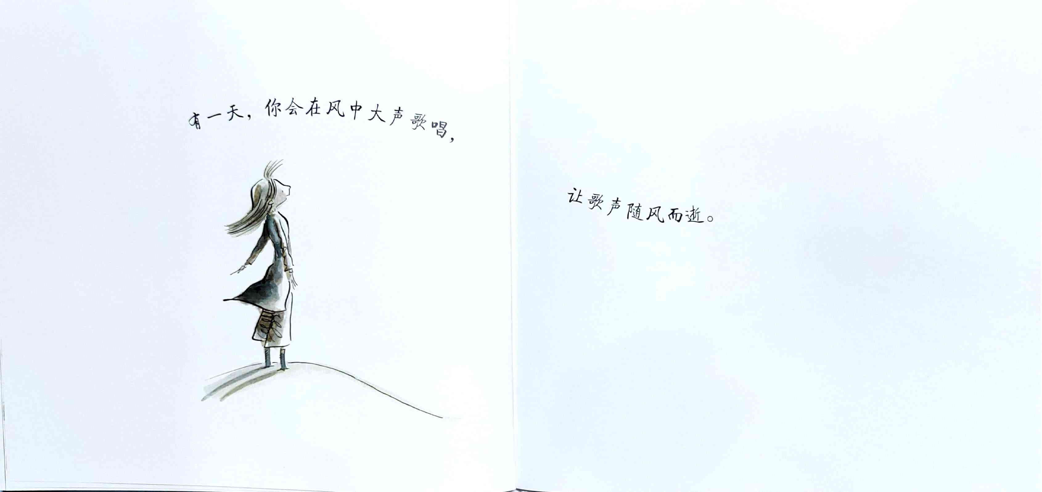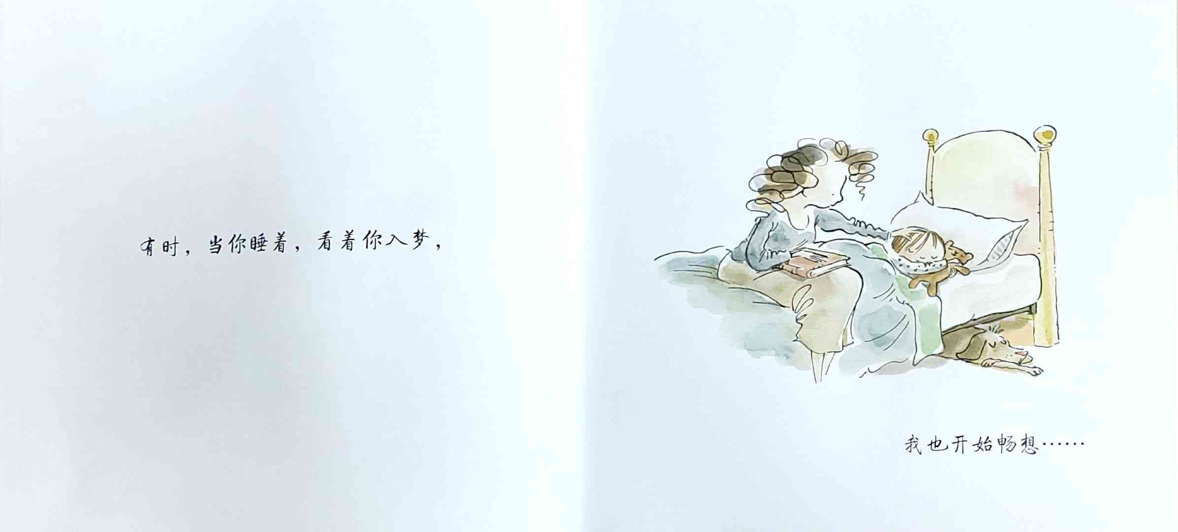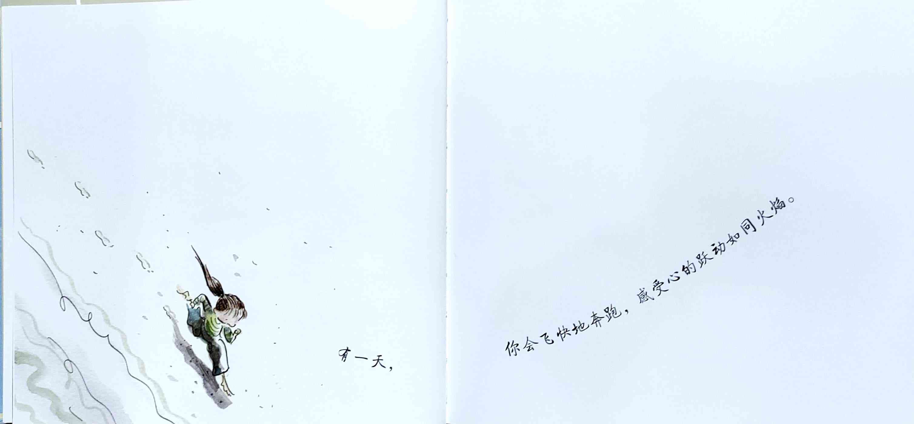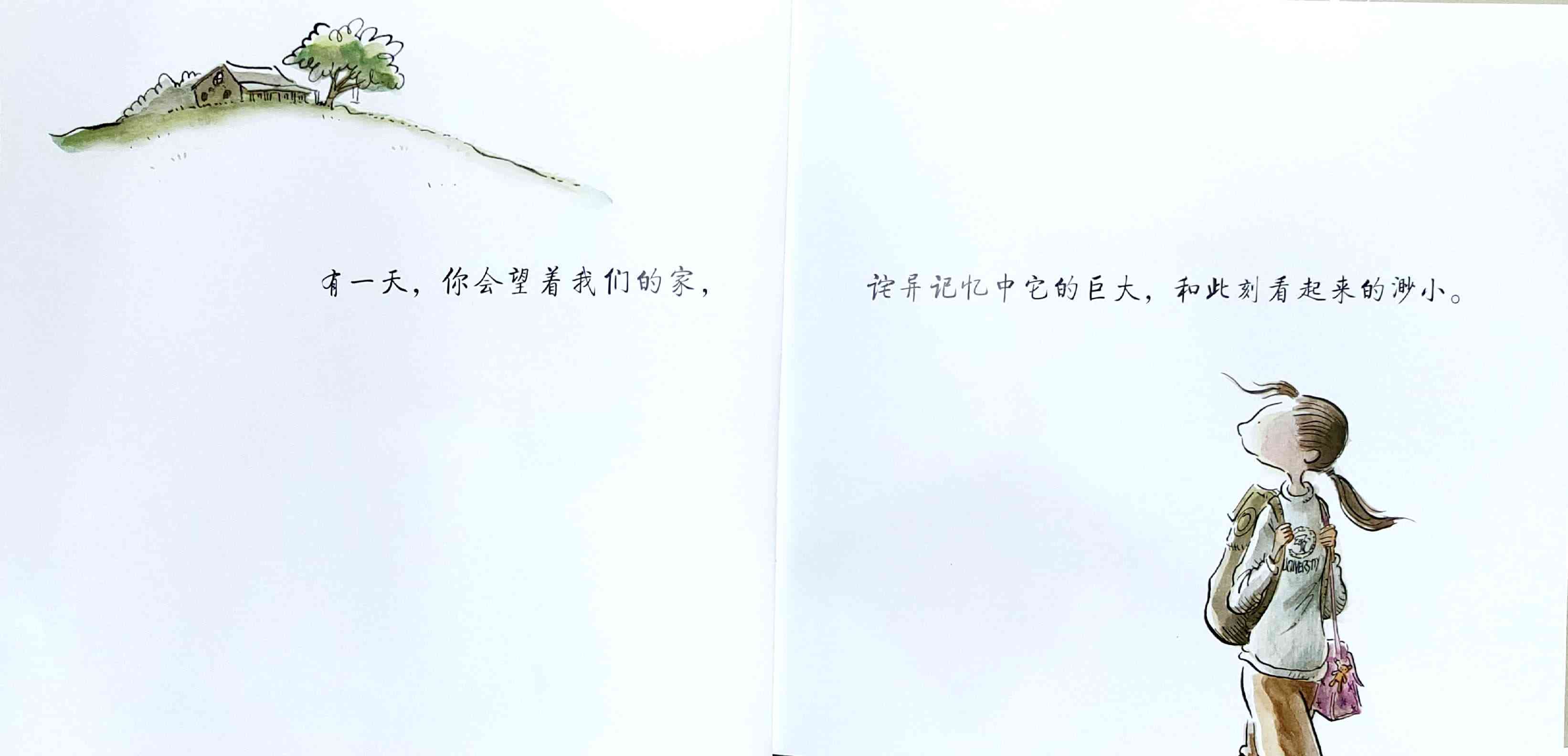 简单质朴的语言,传达出如天空和海洋般辽阔的母爱。 一天深夜,艾莉森·麦基站在卧室门口看着熟睡的女儿,感到心不知被什么温柔地触碰了一下。她悄悄走进厨房,在餐桌旁写下了《有一天》的初稿:“那一天,我数算你的手指,轻轻把它们亲遍;那一天,初雪飘落,我把你高高举起……” 诗一般的文字,仿佛一位母亲的喃喃自语:有一天,孩子会独自去体验成长中的种种酸甜;有一天,她会离开家,渐行渐远,拥有自己的孩子,直到满头白发的那一天到来时,她会想起母亲的爱……