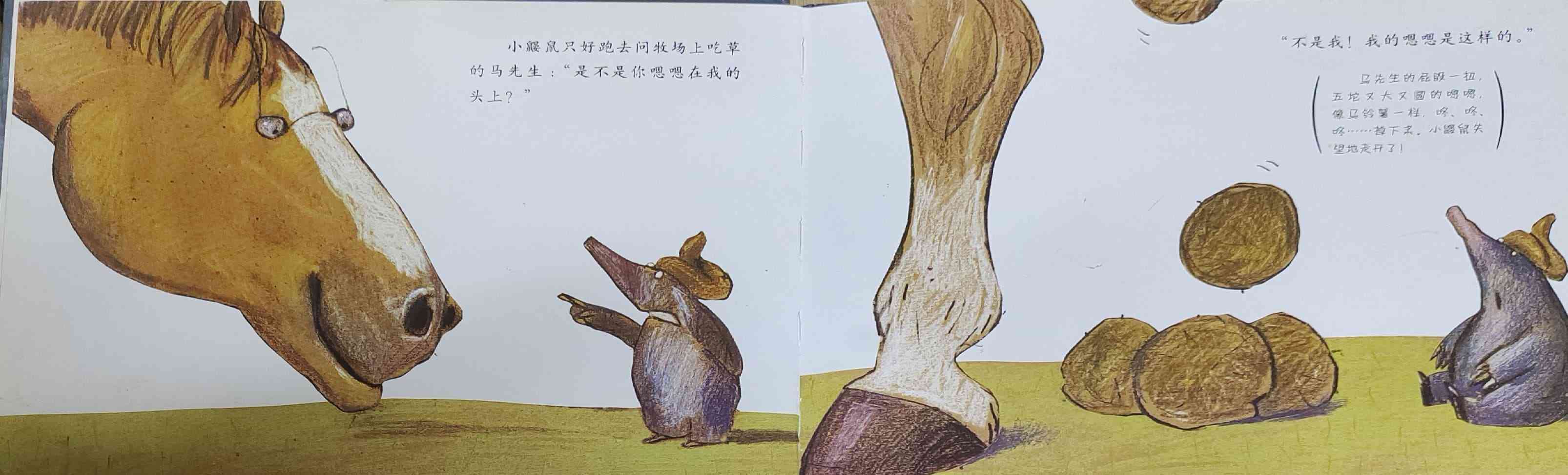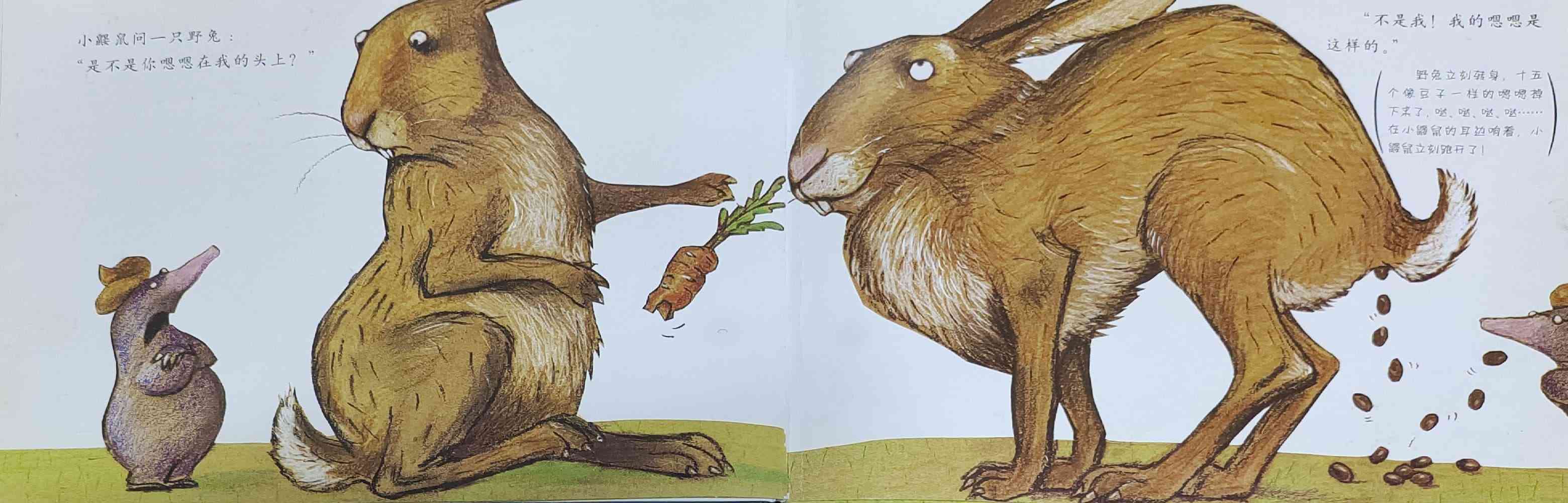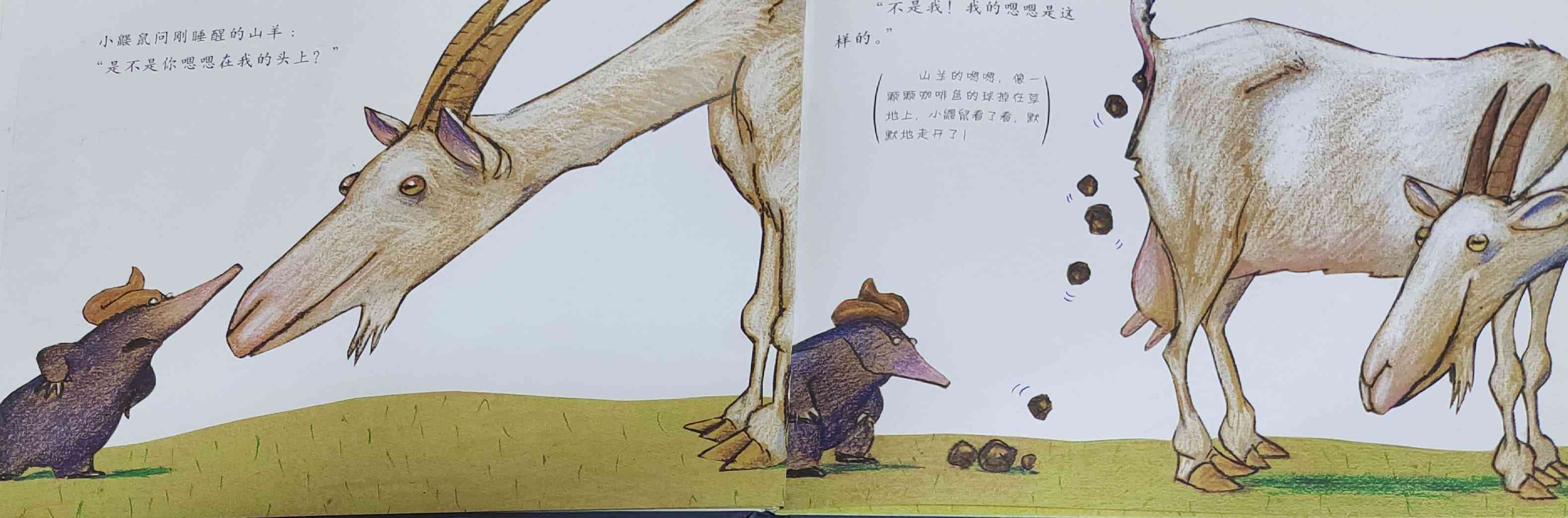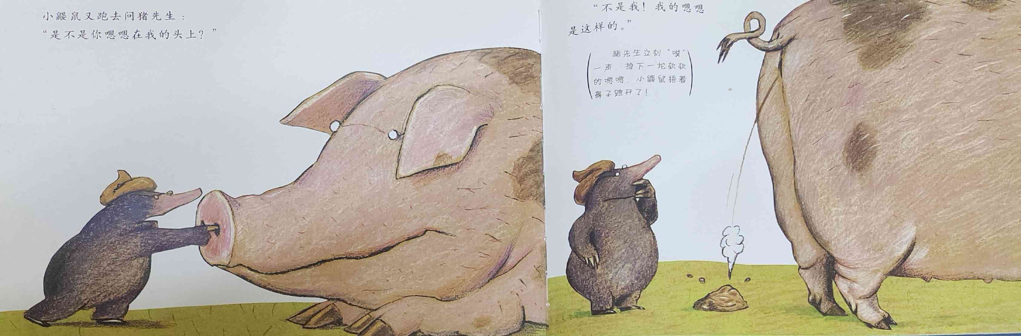 “嗯嗯”到底有什么学问呢?故事透过一只倒霉的小鼹鼠,寻找到底是哪个坏蛋“嗯嗯”在他头上的过程,轻松愉快地让我们了解:原来每一种动物的排泄物形状都不同,什么样的动物就“大”什么样的“便”,我们也从《是谁嗯嗯在我的头上》中得到更深一层的认识。 而最后小鼹鼠到底能不能找到那个“嗯嗯”在他头上的坏蛋呢?专吃大便的苍蝇可是破案的关键喔!这是一本兼具趣味性和知识性的好书,在书末还附上一篇“动物的吃喝拉撒”的文章,说明了动物的食物、消化与排泄的关系,让小朋友在哈哈大笑之余,也得到生物学相关的常识。