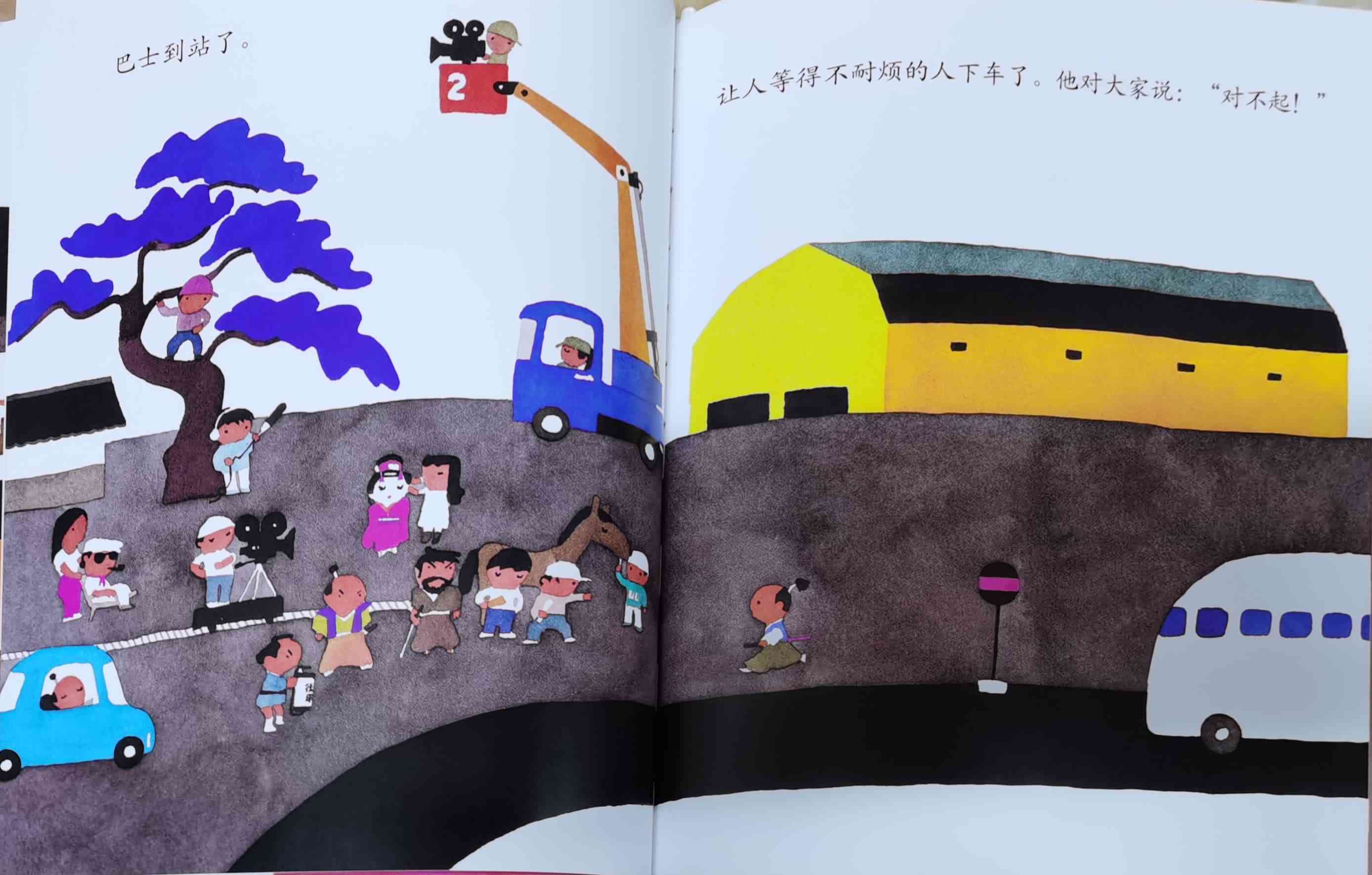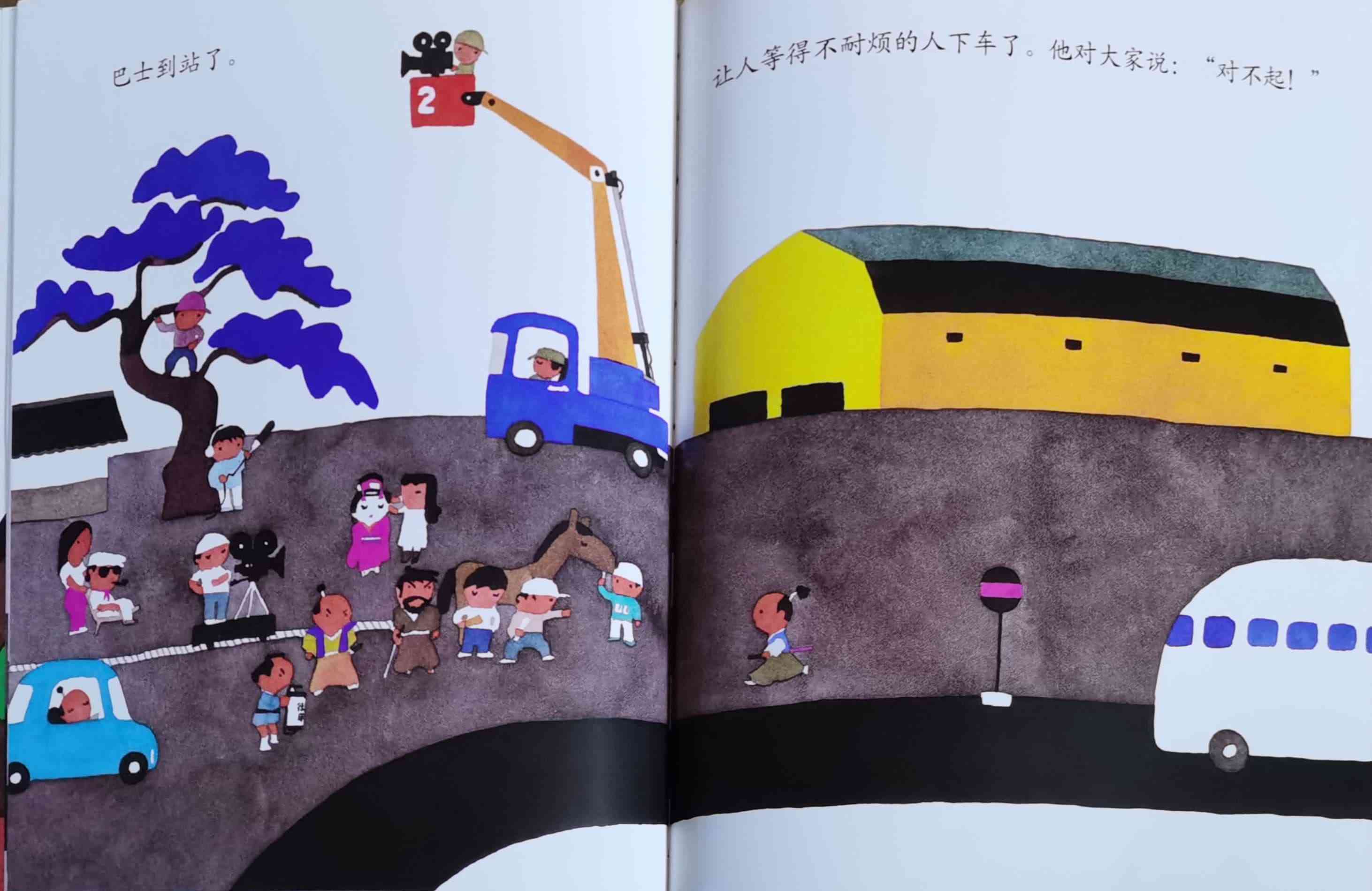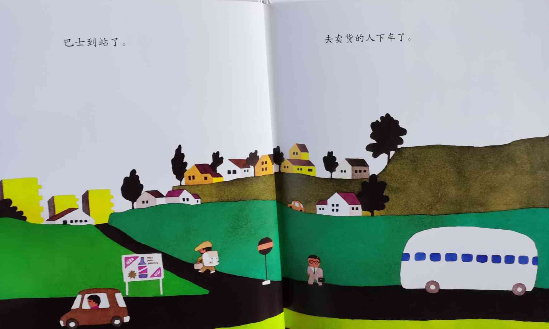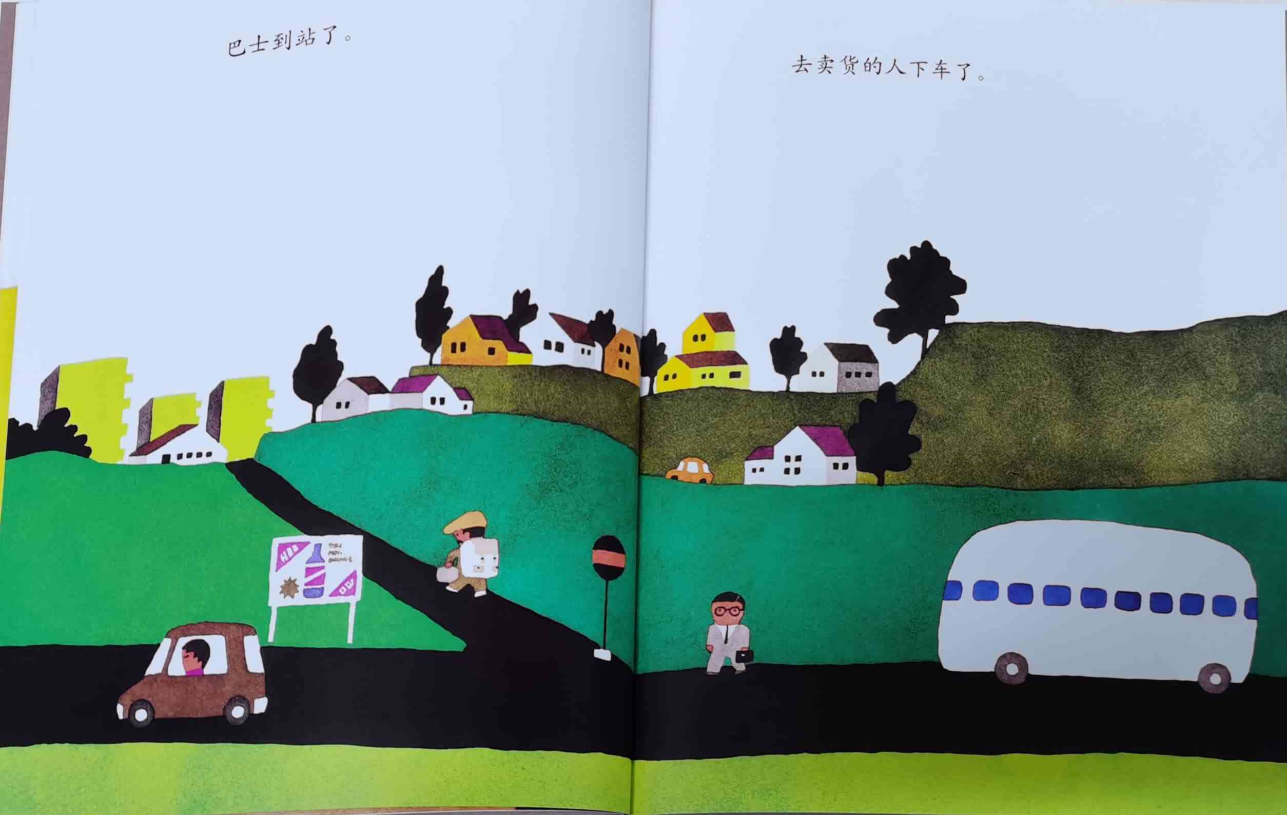 《巴士到站了》以“巴士到站了(バスガきた),某某该下车了(……おりた)”构成回复旋律。人们乘坐巴士到达属于自己的目的地,每个人都在自己的那一站下车去做自己的事情。我们能否猜出每一站是什么地方?而巴士的下一站又会停在哪里呢?一位色彩魔术师——五味太郎,用非常鲜艳美丽的色彩,规划了巴士的路线:从海边、山边、小区、新市镇、大都会、游乐场、运动场、医院、市场、垃圾场、制片场……到停车场。透过色彩,不仅将不同停靠站所代表的生活气氛表露无遗,也透露了巴士服务的各种人的职业,以及服务时间。最重要的,缤纷的色彩也让巴士每天的行程变得非常愉快。小朋友,你来看一下,巴士都到了什么地方呢?下来的人们又都是什么职业的呢?想不想跟着爸爸妈妈一起去乘巴士,然后把《巴士到站了》的故事说给他们听呢? 海报: