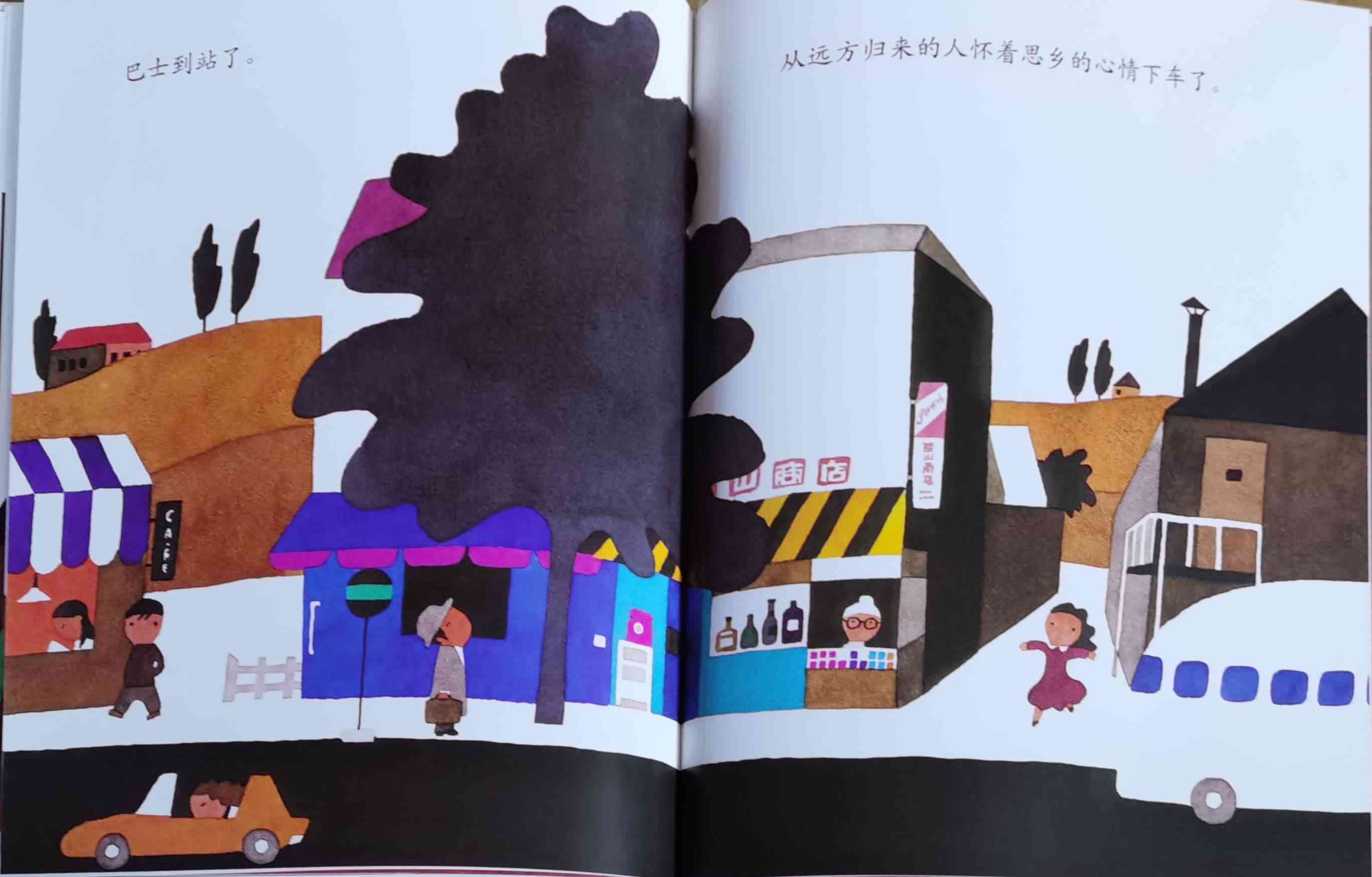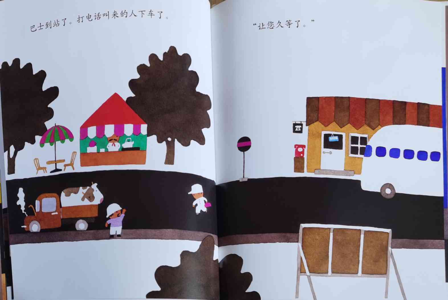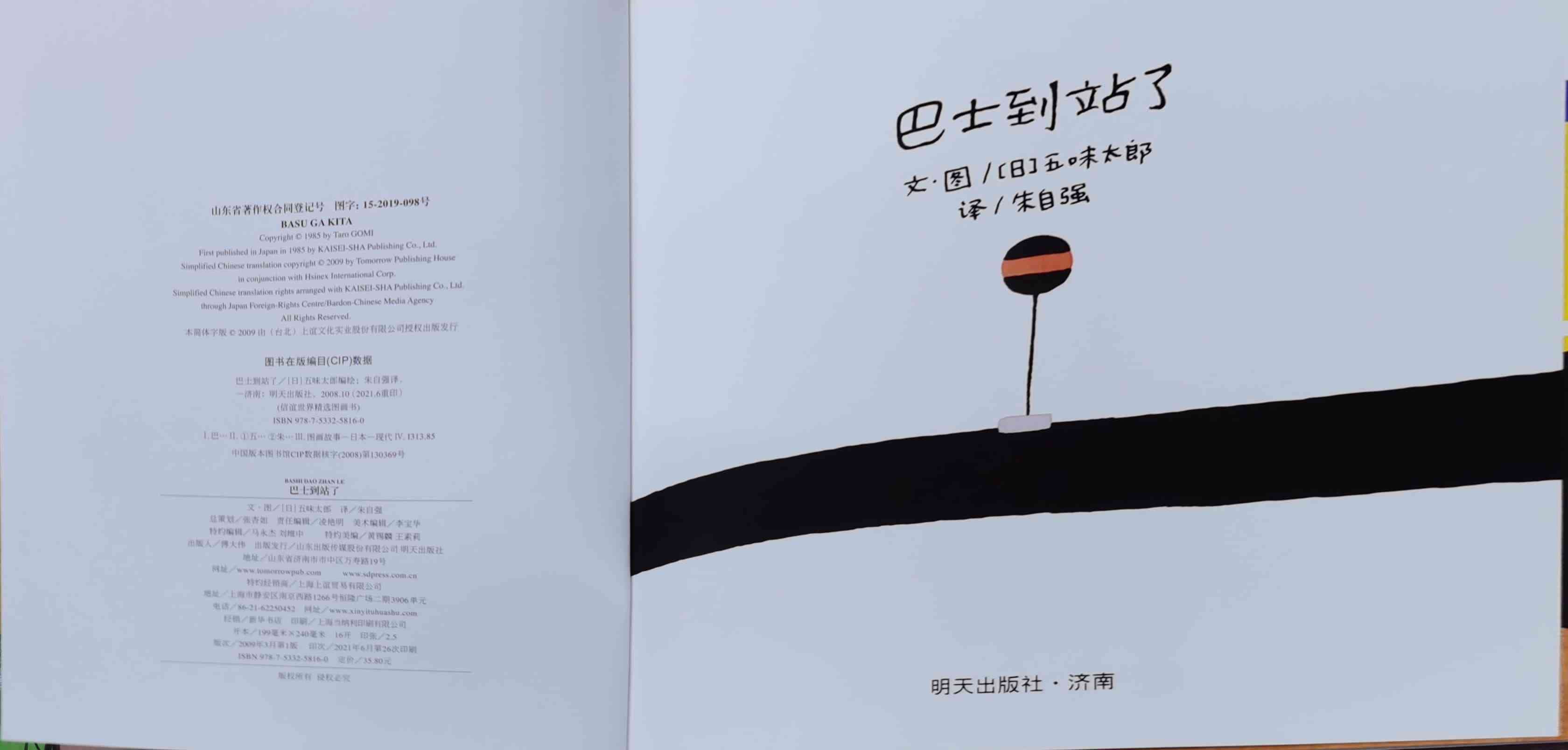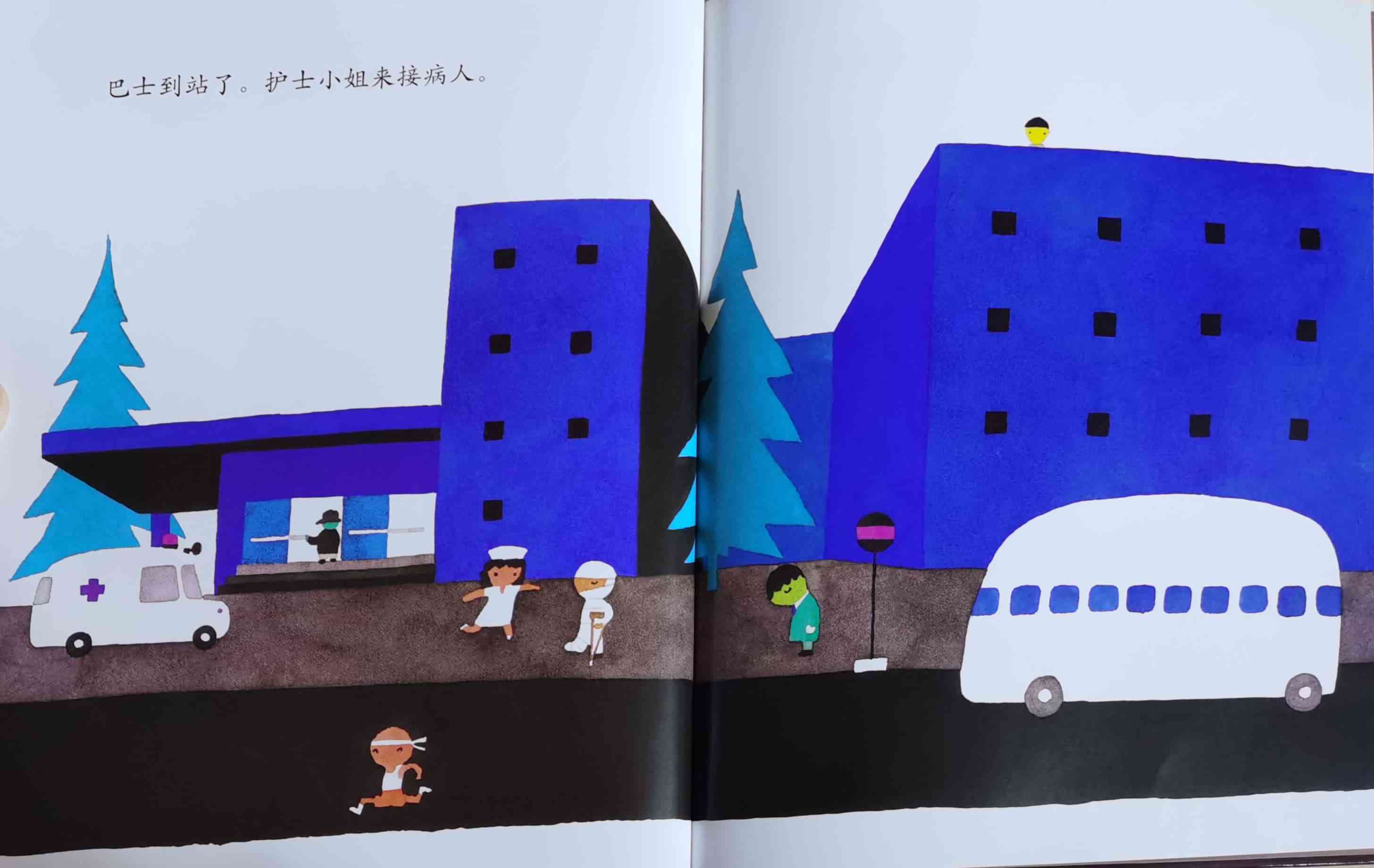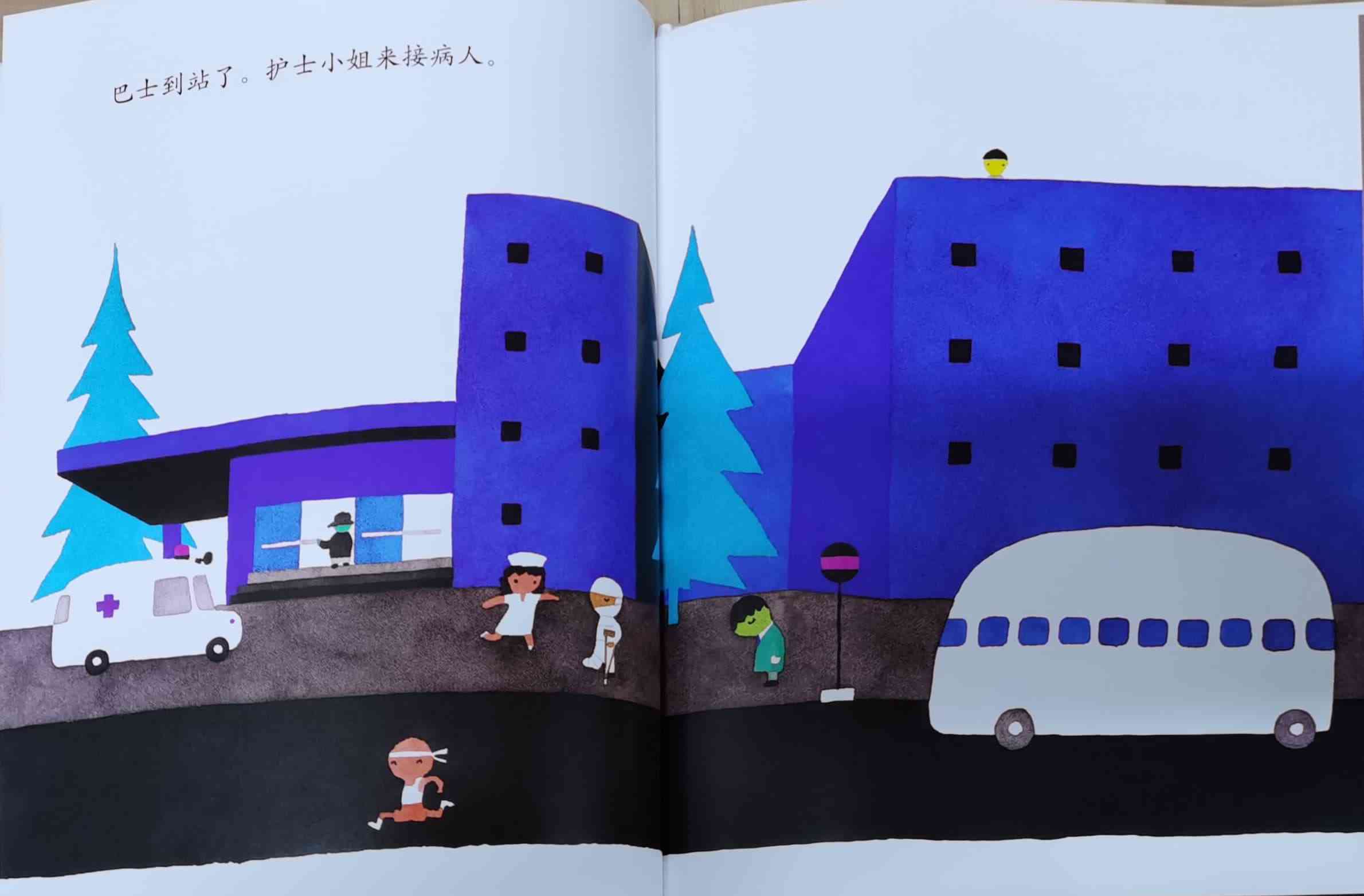 《巴士到站了》以“巴士到站了(バスガきた),某某该下车了(……おりた)”构成回复旋律。人们乘坐巴士到达属于自己的目的地,每个人都在自己的那一站下车去做自己的事情。我们能否猜出每一站是什么地方?而巴士的下一站又会停在哪里呢?一位色彩魔术师——五味太郎,用非常鲜艳美丽的色彩,规划了巴士的路线:从海边、山边、小区、新市镇、大都会、游乐场、运动场、医院、市场、垃圾场、制片场……到停车场。透过色彩,不仅将不同停靠站所代表的生活气氛表露无遗,也透露了巴士服务的各种人的职业,以及服务时间。最重要的,缤纷的色彩也让巴士每天的行程变得非常愉快。小朋友,你来看一下,巴士都到了什么地方呢?下来的人们又都是什么职业的呢?想不想跟着爸爸妈妈一起去乘巴士,然后把《巴士到站了》的故事说给他们听呢? 海报: