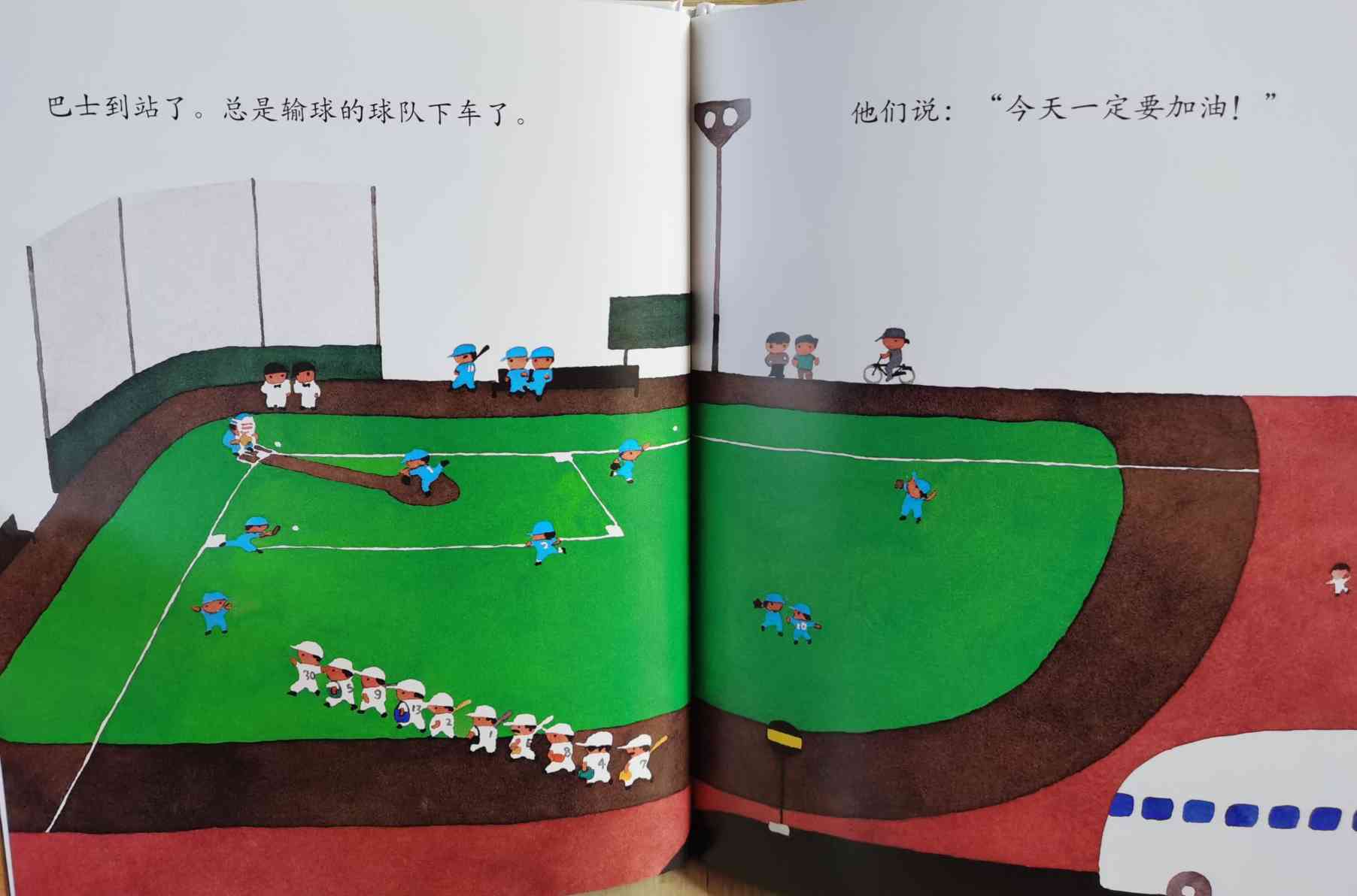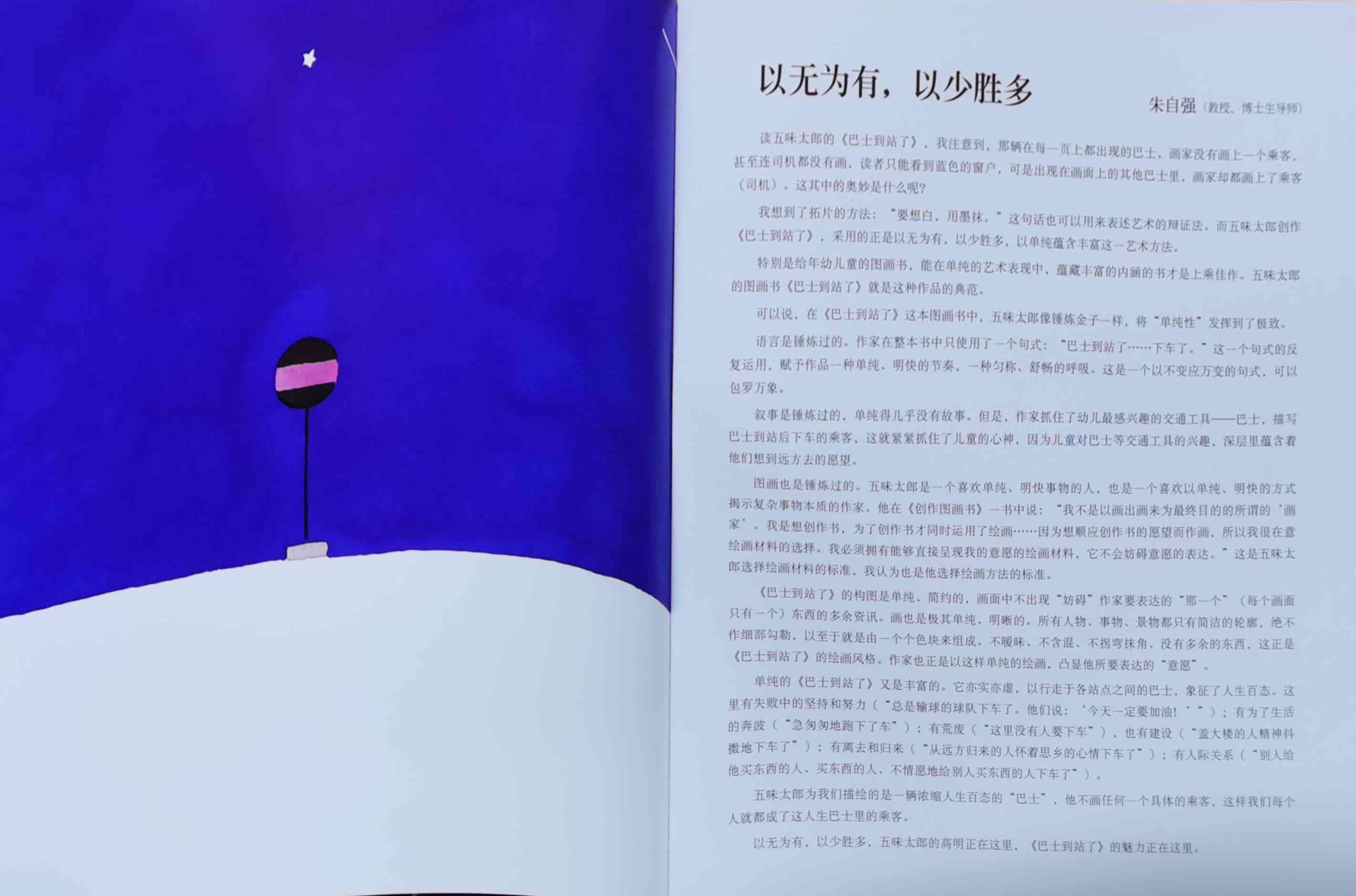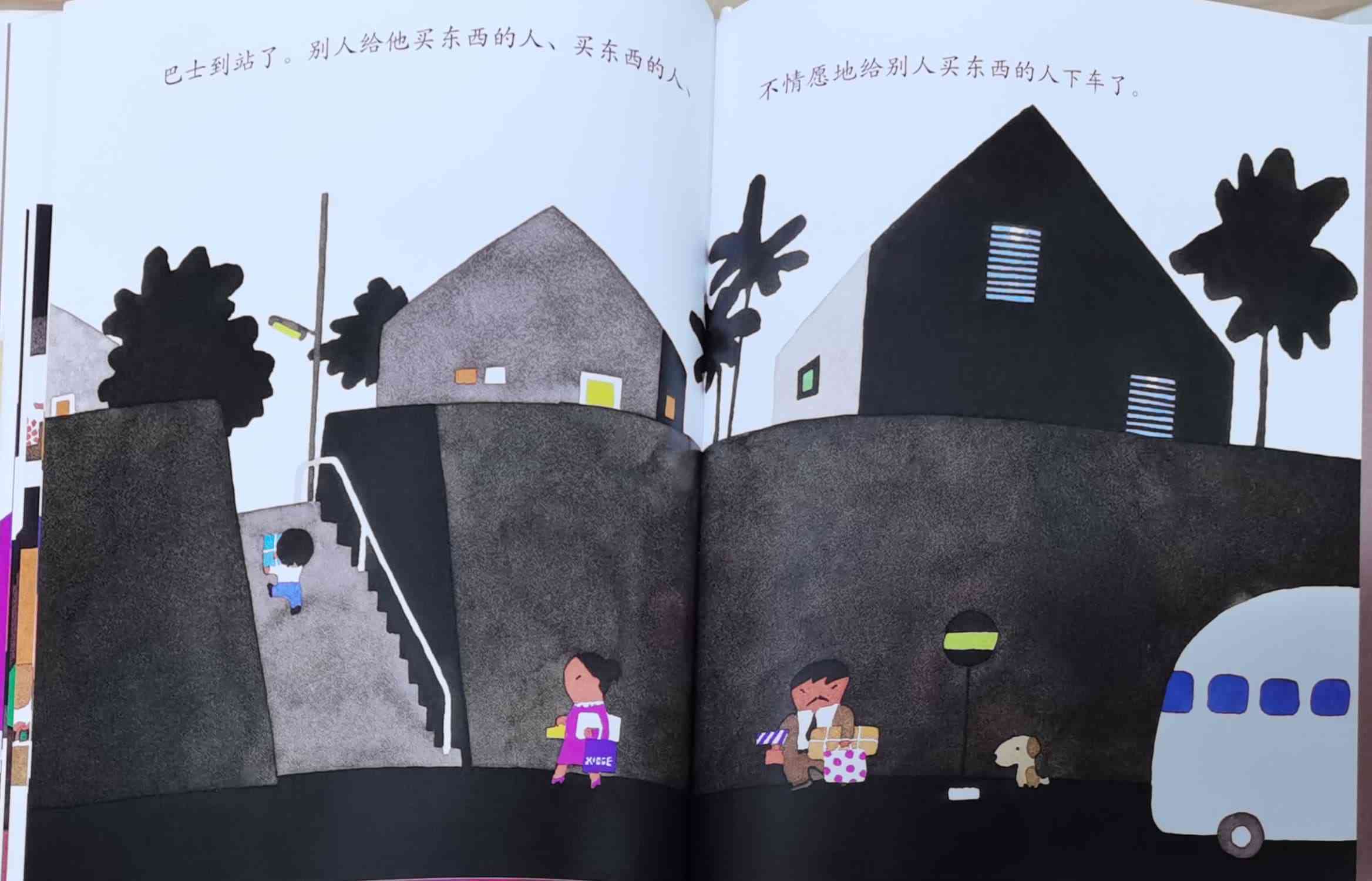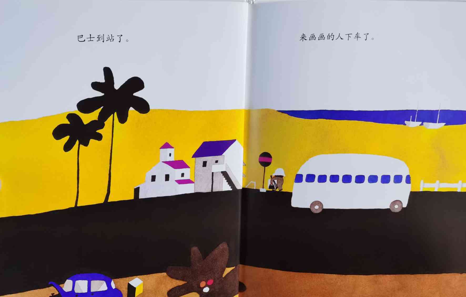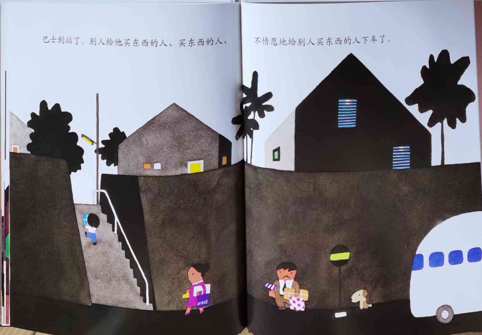 《巴士到站了》以“巴士到站了(バスガきた),某某该下车了(……おりた)”构成回复旋律。人们乘坐巴士到达属于自己的目的地,每个人都在自己的那一站下车去做自己的事情。我们能否猜出每一站是什么地方?而巴士的下一站又会停在哪里呢?一位色彩魔术师——五味太郎,用非常鲜艳美丽的色彩,规划了巴士的路线:从海边、山边、小区、新市镇、大都会、游乐场、运动场、医院、市场、垃圾场、制片场……到停车场。透过色彩,不仅将不同停靠站所代表的生活气氛表露无遗,也透露了巴士服务的各种人的职业,以及服务时间。最重要的,缤纷的色彩也让巴士每天的行程变得非常愉快。小朋友,你来看一下,巴士都到了什么地方呢?下来的人们又都是什么职业的呢?想不想跟着爸爸妈妈一起去乘巴士,然后把《巴士到站了》的故事说给他们听呢? 海报: