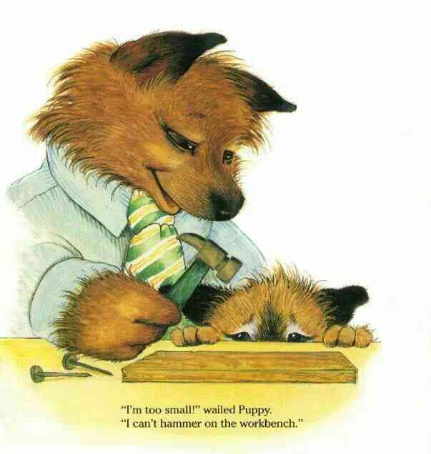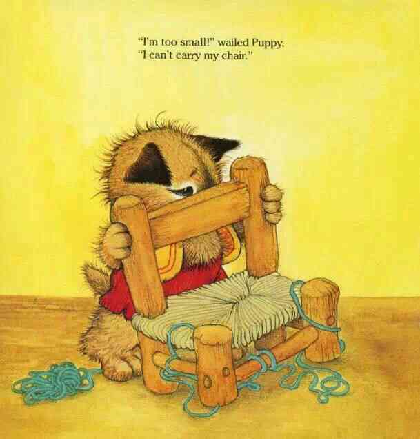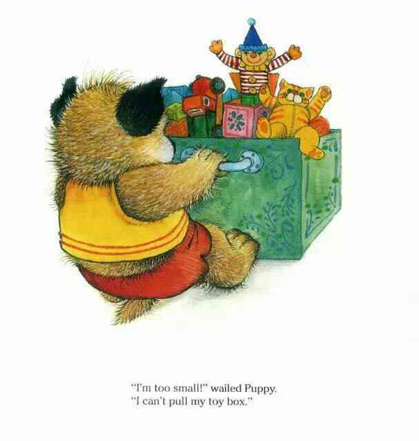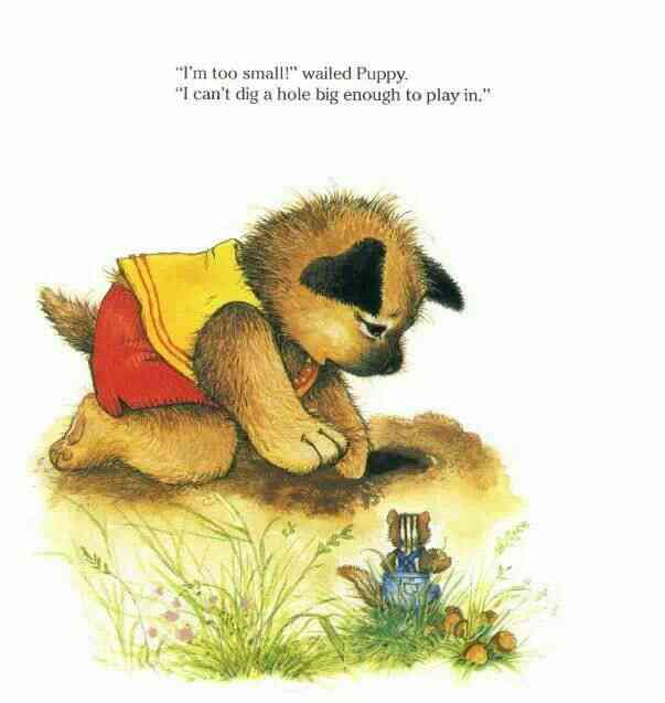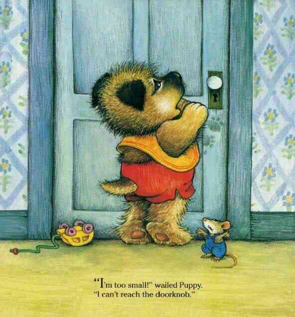 0in 0in 0pt"> I’m too small!” wails Puppy every time he sees a doorknob too high to reach, a tree too tall to climb, or a chair too heavy to carry. But with a little help from his family and friends, Puppy soon realizes that there are many things he can doand that he’s just the right size after all.