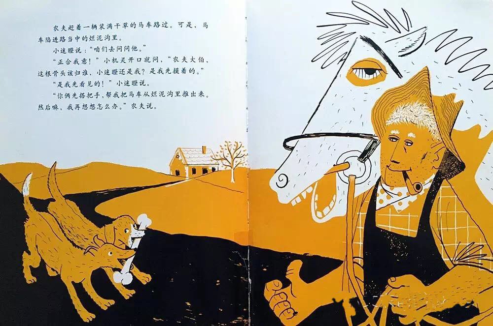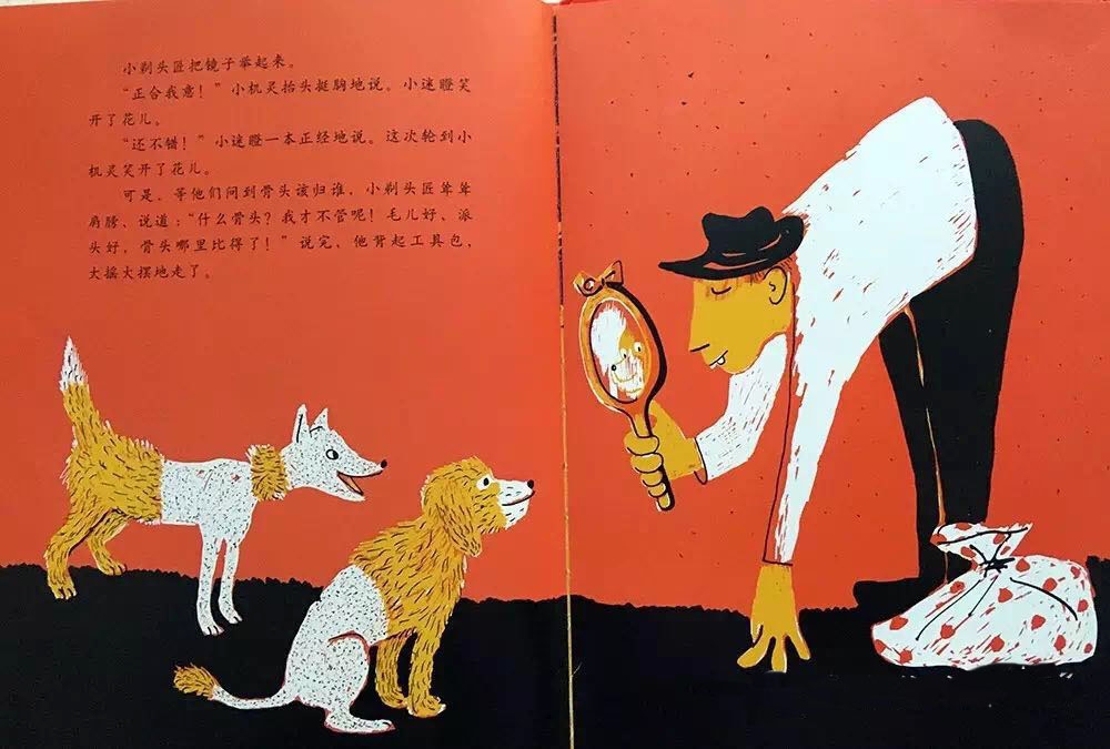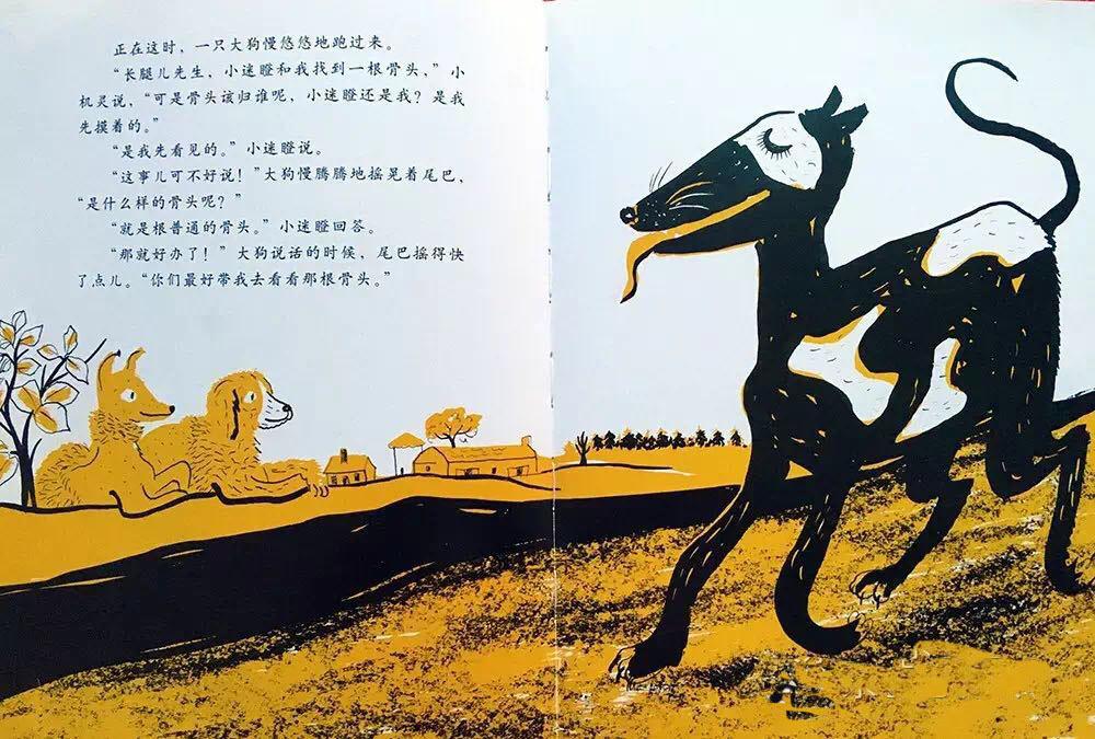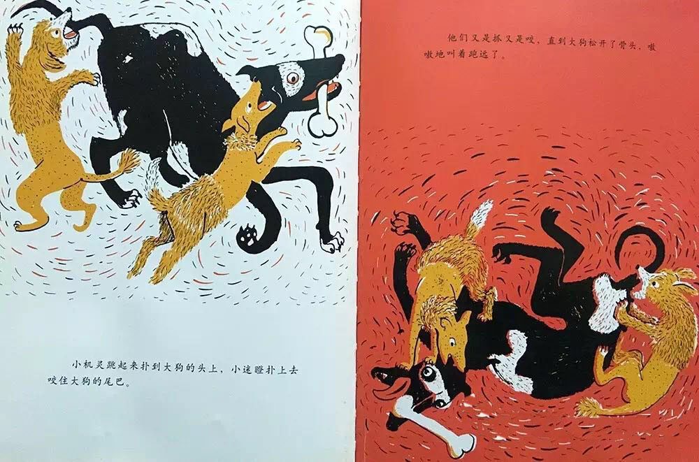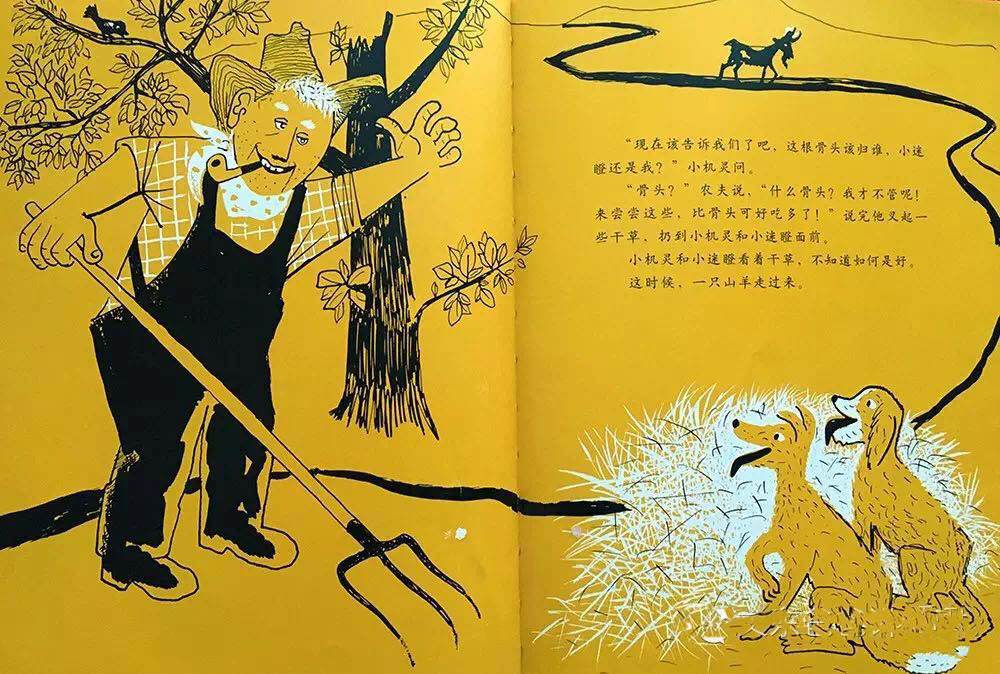 两只小黄狗小机灵和小迷瞪在院子里找东西吃,不停地挖啊挖,终于找到了一根骨头。可是骨头到底该归谁呢?他们问了农夫,农夫只关心马车;问了山羊,山羊只想着吃草;问了小剃头匠,他只为了试试手艺……一路上,他们帮了别人做了很多事,可骨头的事依旧没有解决。直到一只大狗的到来,抢了骨头,他们决定打退敌人,共同拥有这根骨头。问题终于迎刃而解了,原来分享就是最好的方法。一本向读者展现最童真画面,体会分享的可贵与快乐的绘本。