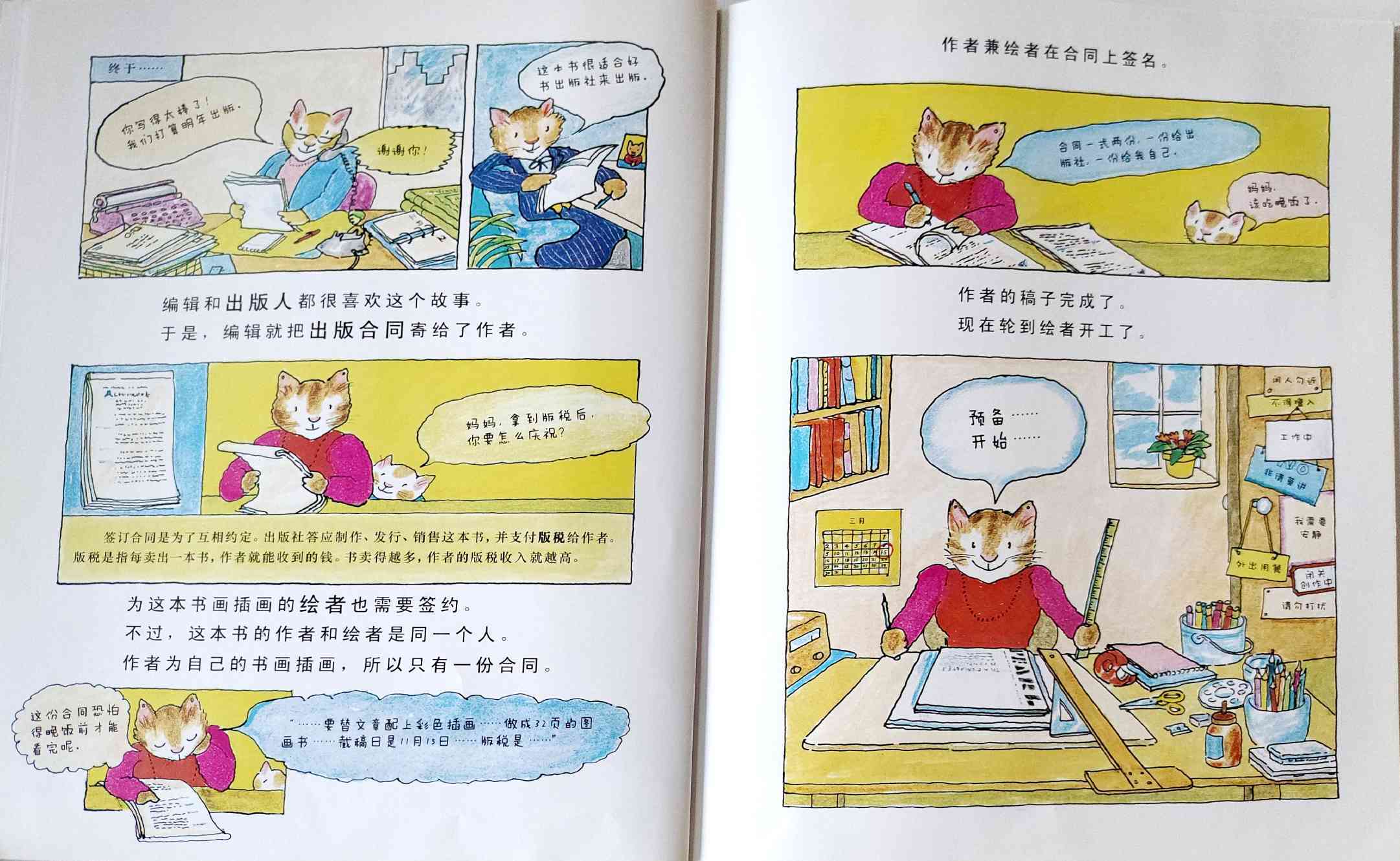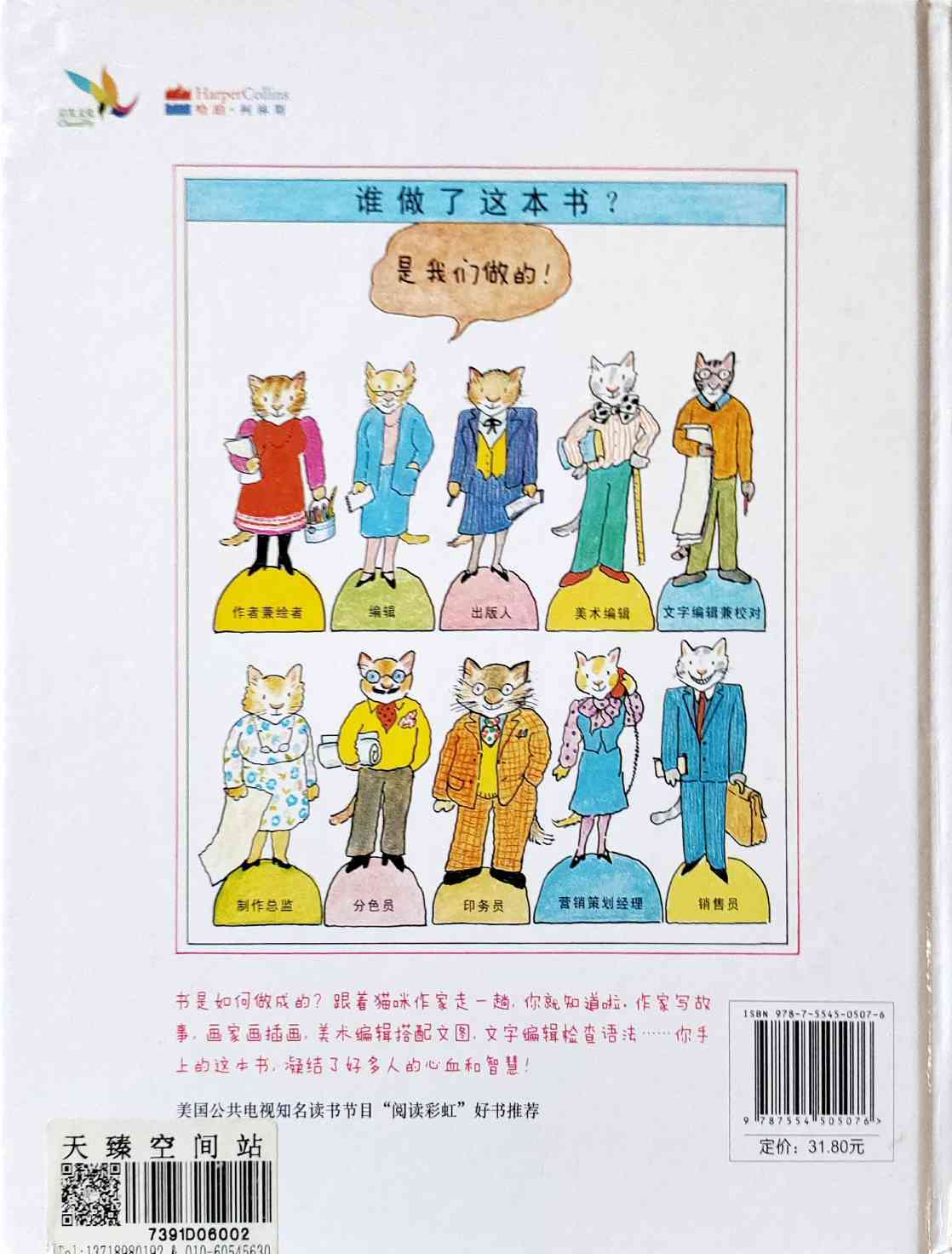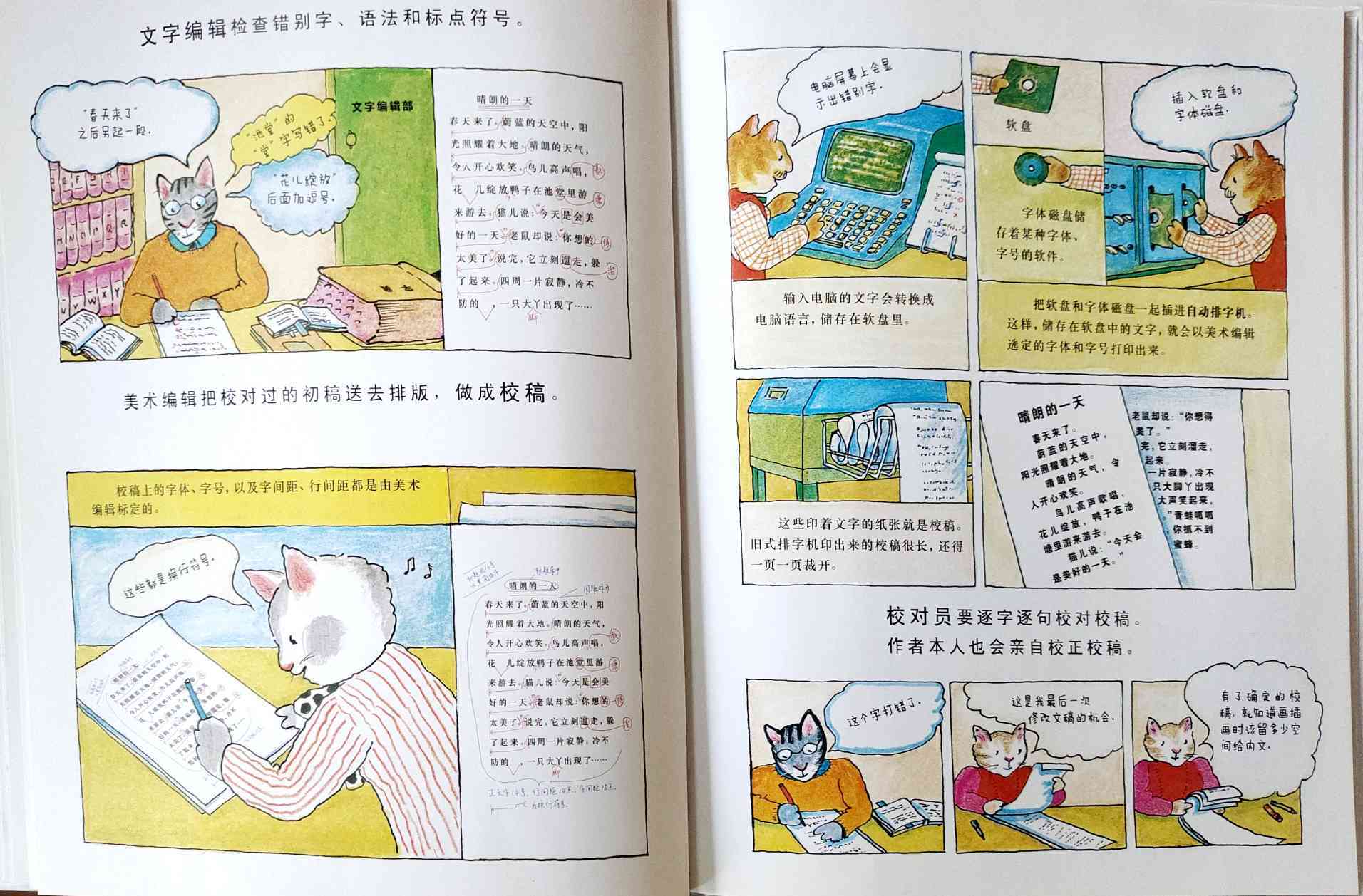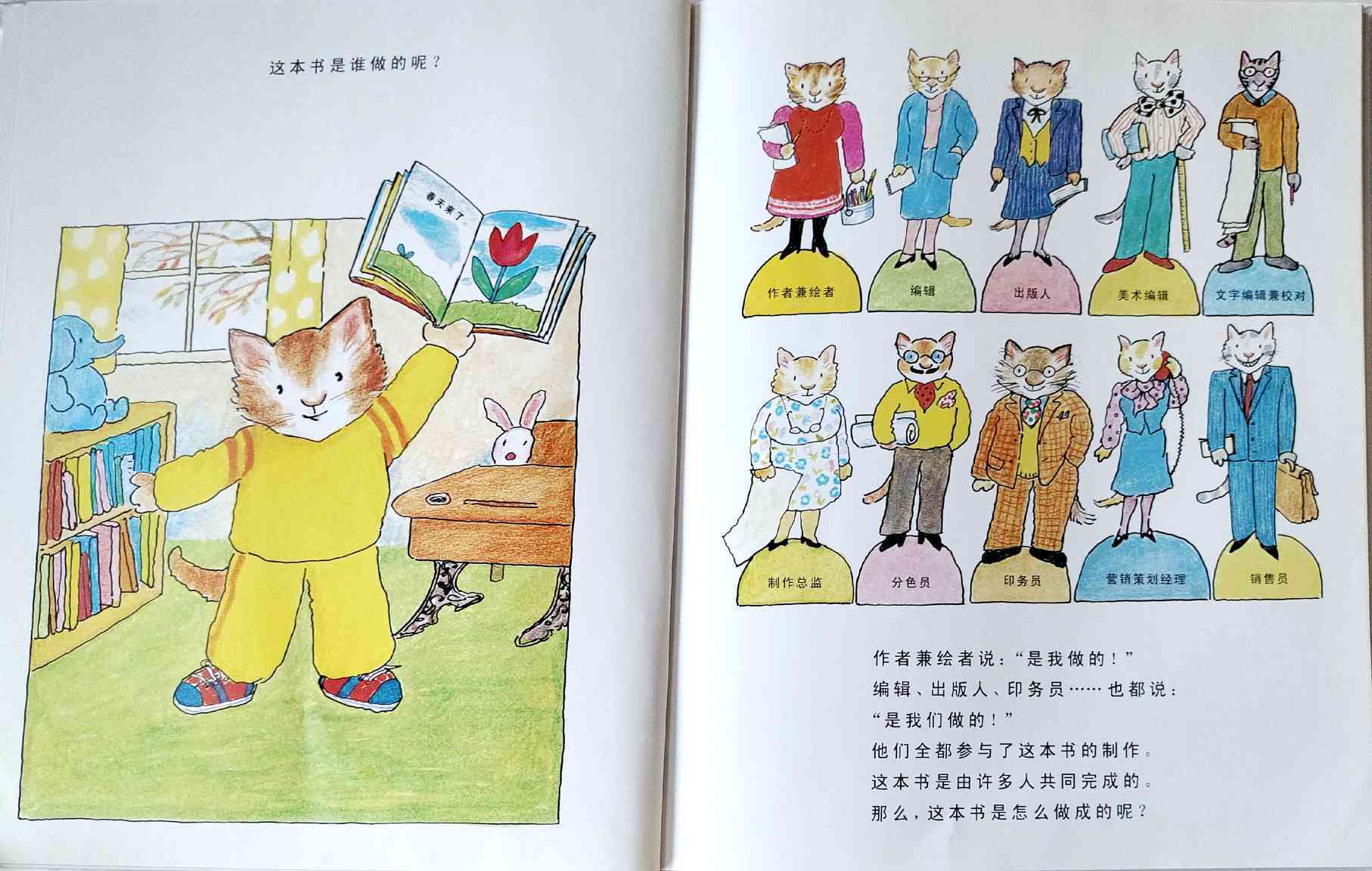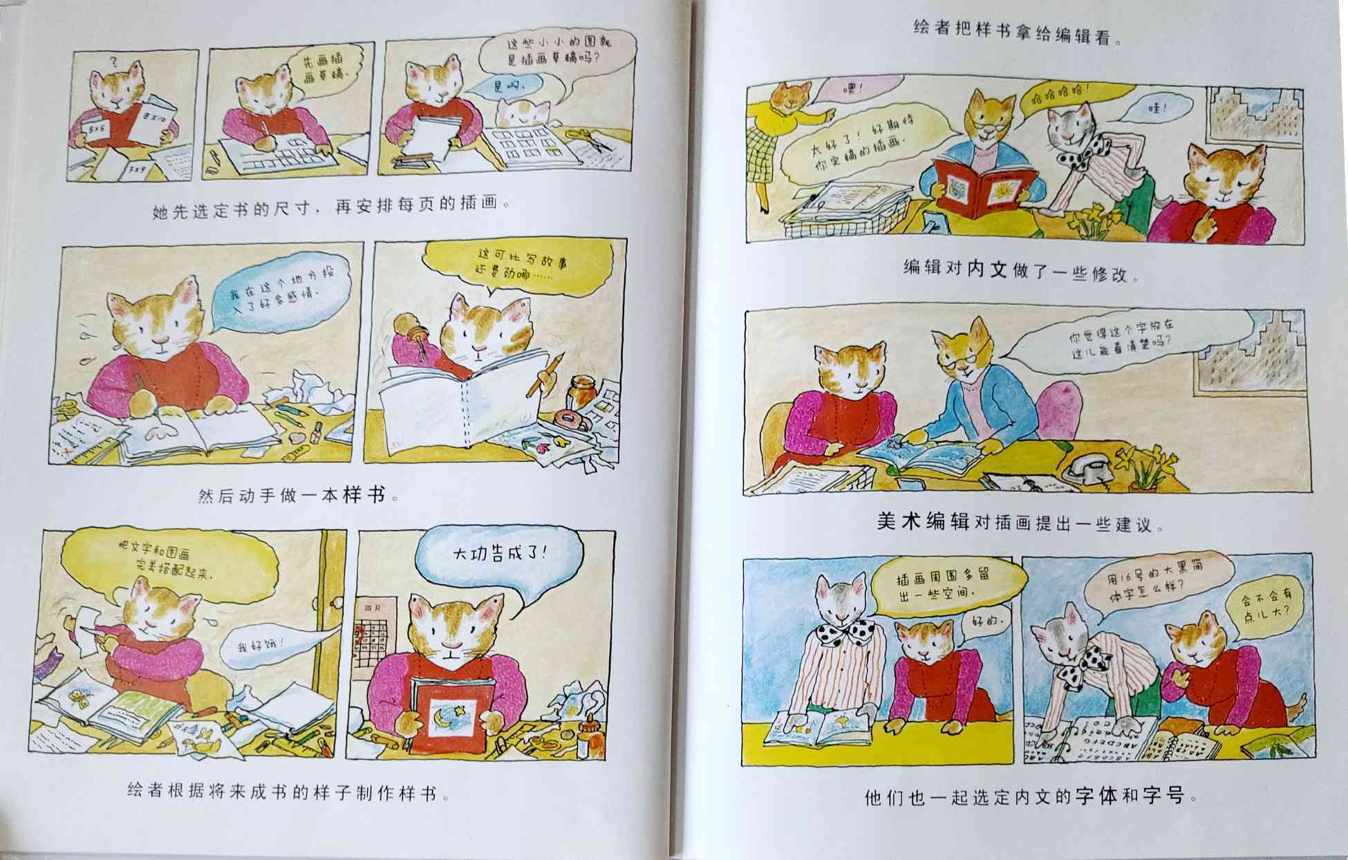 书是如何做成的呢? 著名绘本画家阿丽奇根据亲身经历,为你现身说法。跟着她笔下的猫咪作家,到出版社和印刷厂走一趟,你就知道啦。书是由许多人共同完成的:作家写出故事,画家画好插图,美术编辑完美搭配文图,文字编辑检查语法和标点……原来,最终到达你手上的这本书,凝结了这么多人的心血、汗水和智慧!其中的经历真是既曲折又艰辛! 了解书的制作过程后,相信你一定会更爱惜手中拥有的每本书,也会更用心去阅读书中的每一个字、欣赏书中的每一幅画。 1、一本揭开“做书内幕”的图画书。 2、阿丽奇根据亲身经历现身说法,亲切感人。 3、以书的制作为主题,引导孩子身临其境地感受写作、出版、印制的不易,进而更加珍惜手中绘本,并引发孩子对书籍幕后故事的兴趣。 4、知识丰富。将与绘本有关的大量知识融入到书籍制作的过程中。