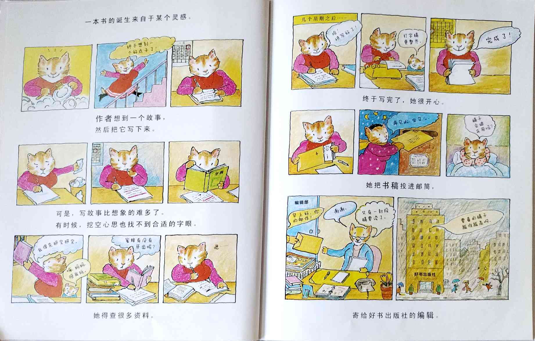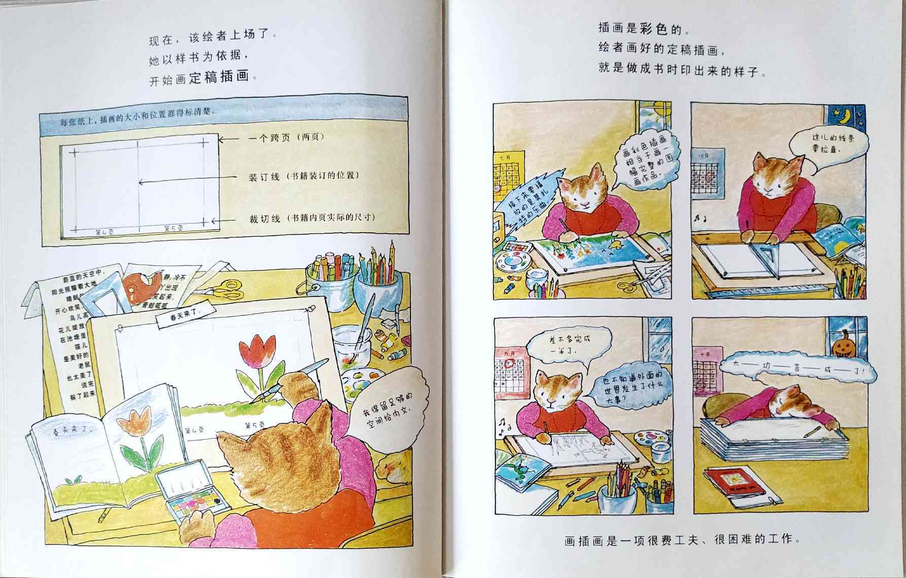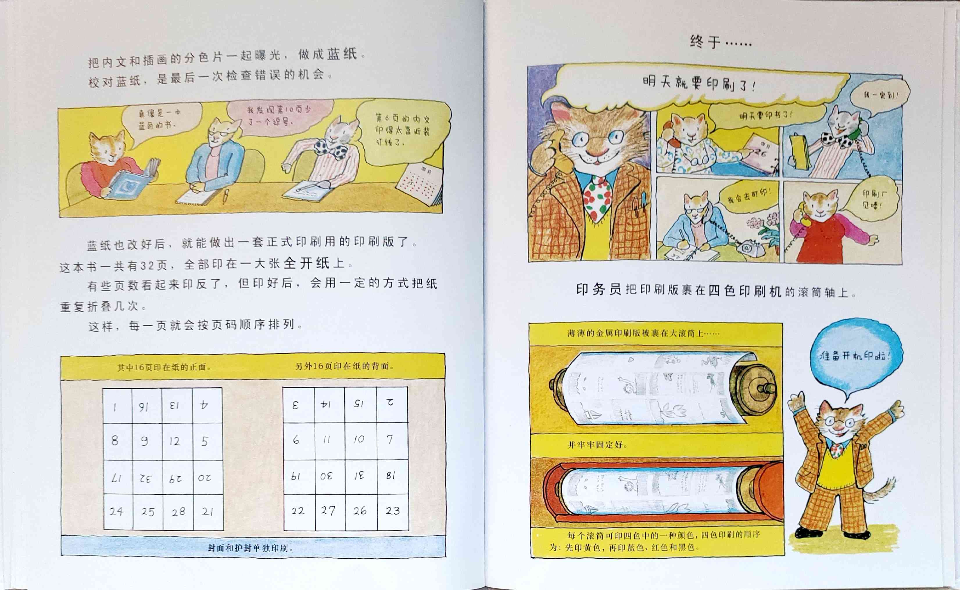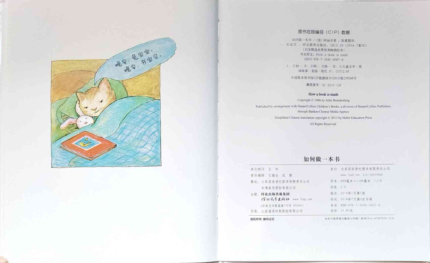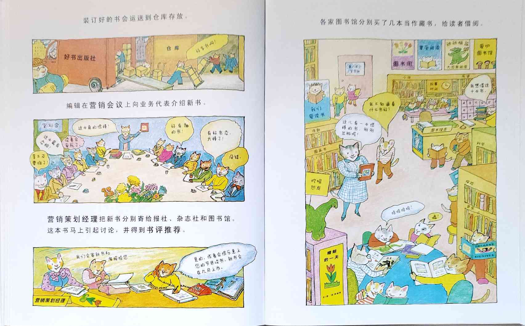 书是如何做成的呢? 著名绘本画家阿丽奇根据亲身经历,为你现身说法。跟着她笔下的猫咪作家,到出版社和印刷厂走一趟,你就知道啦。书是由许多人共同完成的:作家写出故事,画家画好插图,美术编辑完美搭配文图,文字编辑检查语法和标点……原来,最终到达你手上的这本书,凝结了这么多人的心血、汗水和智慧!其中的经历真是既曲折又艰辛! 了解书的制作过程后,相信你一定会更爱惜手中拥有的每本书,也会更用心去阅读书中的每一个字、欣赏书中的每一幅画。 1、一本揭开“做书内幕”的图画书。 2、阿丽奇根据亲身经历现身说法,亲切感人。 3、以书的制作为主题,引导孩子身临其境地感受写作、出版、印制的不易,进而更加珍惜手中绘本,并引发孩子对书籍幕后故事的兴趣。 4、知识丰富。将与绘本有关的大量知识融入到书籍制作的过程中。