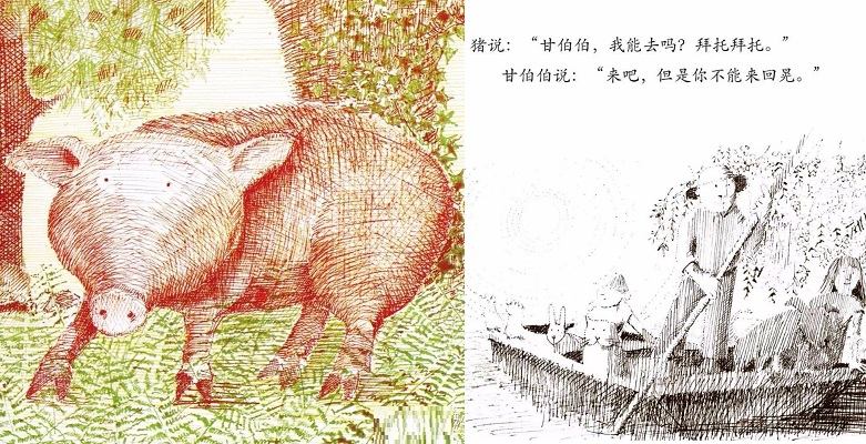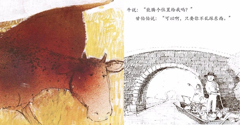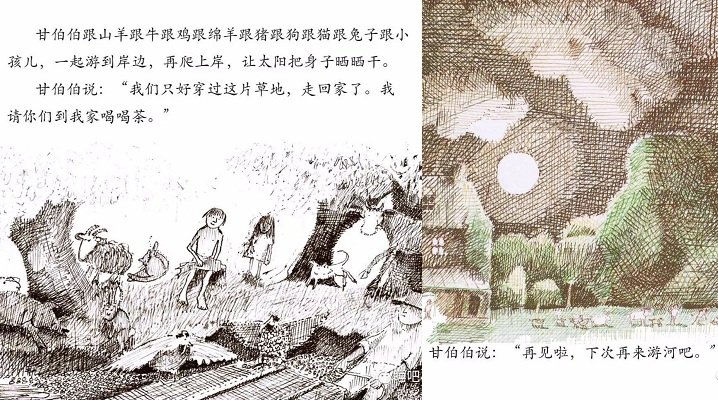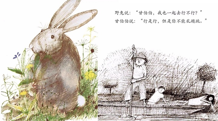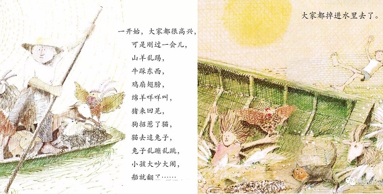 1970年英国凯特·格林纳威奖大奖。1972美国《波士顿环球报》、《号角书》杂志奖图画书大奖,美国图书馆学会年度好书推荐,《纽约时报》最佳插画童书奖,入选纽约公共图书馆“每个人都应该知道的100种图画书”,入选日本全国学校图书馆协议会第22次“好绘本”,入选日本儿童文学者协会编《世界图画书100选》。 哪个孩子不想坐船,哪个孩子不想听听坐船的故事?尤其是住在像英国这样的岛国的孩子。 《和甘伯伯去游河》是约翰·伯宁罕的作品,他构思的是一个非常单纯的故事,单纯的感觉像一个幼儿:甘伯伯有一条木船,他的家就在河边。有一天,甘伯伯撑船去游河。两个小孩子、兔子、猫、狗、猪、绵羊、鸡、牛和山羊,一一要求上船。起初情形还好,后来这些乘客都忘了遵守秩序,忘了坐船的规矩。结果,船翻了,大家都掉进水里。甘伯伯带领大家游泳到岸边,让太阳把他们的衣服和身子晒干。和气的甘伯伯还邀请这批乘客到他家去喝茶,并且提议过几天大家再来坐一次船。 作者的这个故事,采用童话的形式。故事中的角色不完全是人,也有动物,是一个“人和动物不分彼此”的世界,使刚度过“人和动物不分”阶段的幼儿,感到分外亲切。
