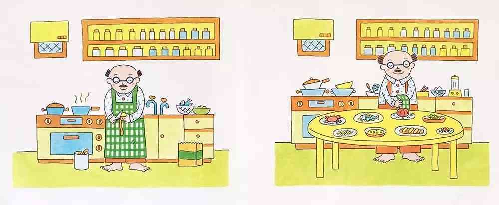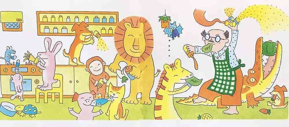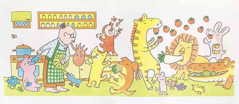 《鲁拉鲁先生请客》内容简介:完美的计划被打乱了,不见得是一件坏事。顺应当时心境的自发行为,常常带来新鲜的体验。鲁拉鲁先生一贯严格按照学过的步骤做菜,他相信这样做出菜才好吃。他那群不懂烹饪艺术的朋友却让鲁拉鲁先生发现,“大家一起热热闹闹地吃着,不管吃什么,怎么吃都非常得香。”他“从来没有这样享受过!”成人眼中一件严肃复杂的事,孩子会从本能出发,享用其单纯有趣的一面。 于是,鲁拉鲁先生顺着自己的心意,也加入抢东西吃的行列,完全融入现场的气氛,“感觉特别痛快”,这是他天性中孩子气的自然流露和释放。貌似古板的外表下,深藏着未泯的童心,把鲁拉鲁先生和他的小动物朋友们连结在一起,带着他偶尔走出固定的轨道,感受单纯的快乐。