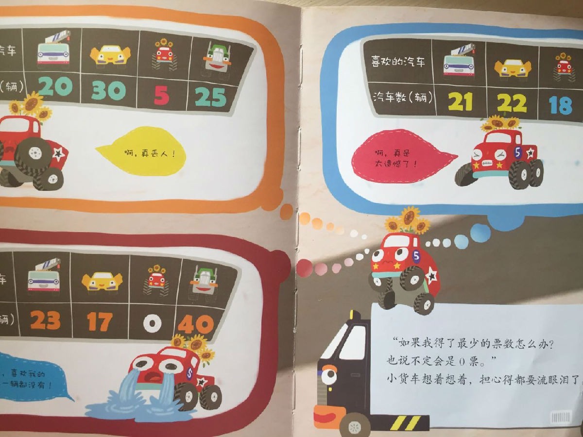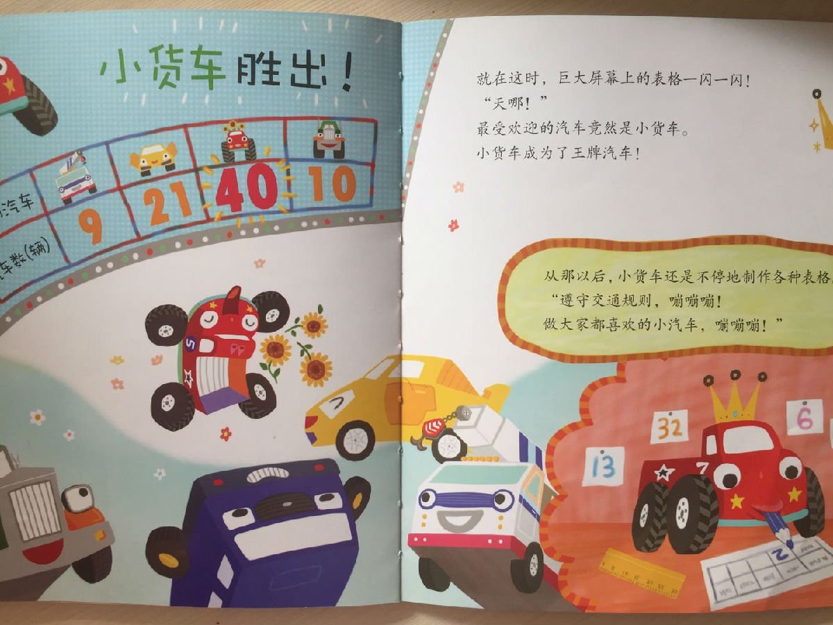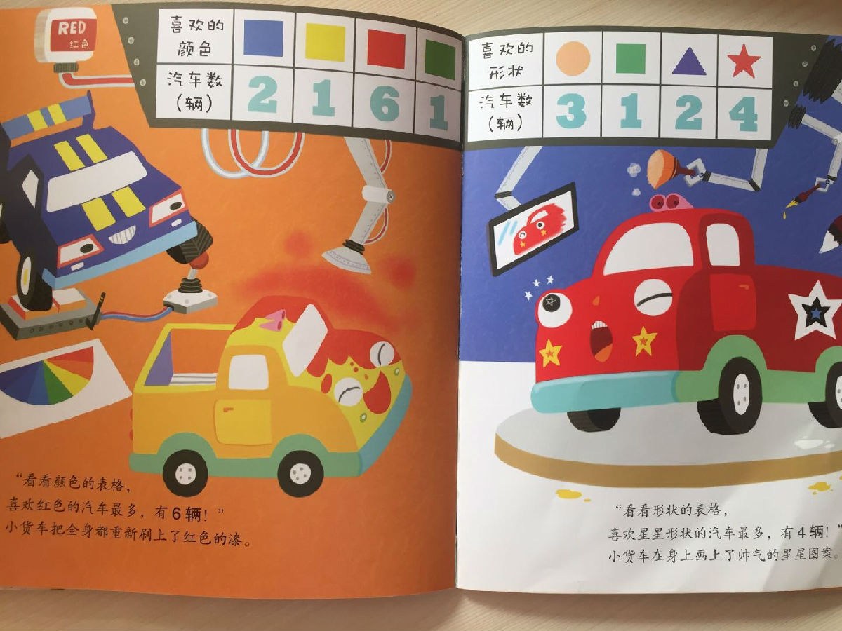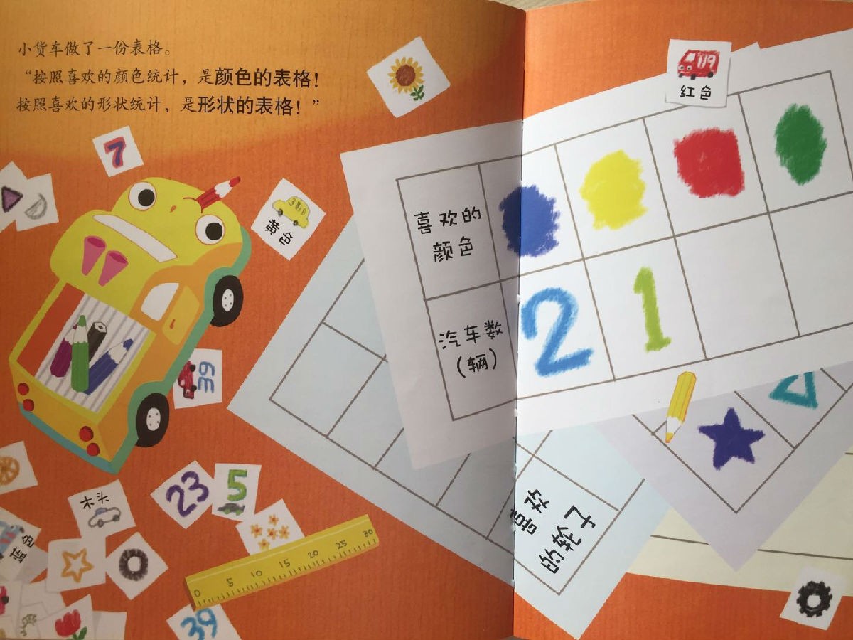 还在为孩子的数学学习发愁吗?赶快打开这套最权威的数学启蒙绘本吧! 人民教育出版社小学数学室资深编辑卢江、北京市第一幼儿园园长吕欣、清华大学附属小学高级数学教师许淑一、北京中关村三小高级数学教师冯玉洁、新阅读研究所研究员育儿爸爸李一慢联手推荐! 1.涉及“数与运算”“图形与几何”“规律与逻辑”“时间与测量”“统计与图表”等数学内容,通过有趣的故事,向孩子渗透最基础最重要的数学知识点,适合学前和小学低年级孩子阅读,系统打造趣味数学教室 2.故事后设置了练习和手工、游戏等,强化数学知识认知 3.书后附数字卡片等学习小玩具,让学习变得简单又有趣 《好玩的数学绘本》第一辑共10册,涉及“数与运算”“图形与几何”“规律与逻辑”“时间与测量”“统计与图表”等基础数学内容,通过有趣的故事,向孩子渗透最基础最重要的数学知识点,适合学前和小学低年级孩子阅读。 每一册都是一个独立的绘本故事,由故事引发出数学知识点,吸引孩子自主参与到数学知识的了解和运用中来,培养孩子对数学学习的兴趣,开发数学思维。 《好玩的数学绘本:王牌汽车》统计表 王牌汽车大会就要举行了!小货车很想成为大家最喜欢的汽车,于是,它做了很多调查统计:大家最喜欢的是什么颜色?大家最喜欢什么类型的轮胎?大家最喜欢的数字是什么?最后,小货车被选为王牌汽车了吗?